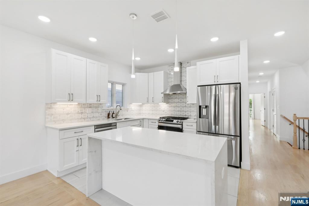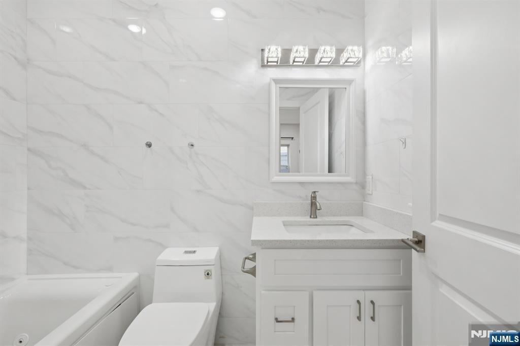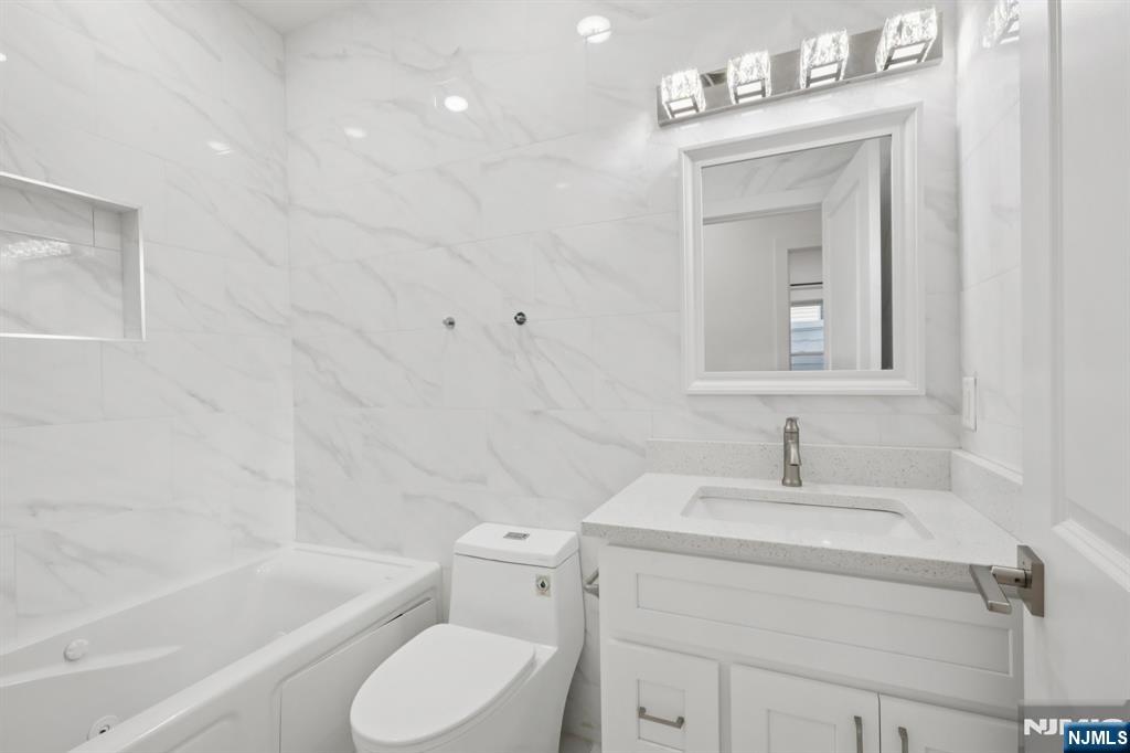 Beautifully designed 1,800 sq ft duplex unit built in 2021, spanning the entire first and second floors of a modern two-family home in desirable Jersey City Heights. The first floor features a spacious, versatile open area perfect as a playroom, home office, guest room, or creative space, complete with a convenient half bathroom and direct access to a private backyardâ€â€ideal for relaxing or entertaining. Upstairs, enjoy a bright, open-concept kitchen, living, and dining area with quartz countertops, stainless steel appliances, custom cabinetry, hardwood floors, and soaring ceilings. Three generously sized bedrooms and two full bathrooms complete the upper level, including a serene primary suite with en-suite bath and ample closet space. Additional highlights include in-unit washer/dryer, central heating and cooling, and one tandem garage parking spot. The building is shared with only one other unit, providing privacy and a quiet environment. Located near parks, schools, shopping, dining, and NYC transit options. Tenant pays gas and electricity.