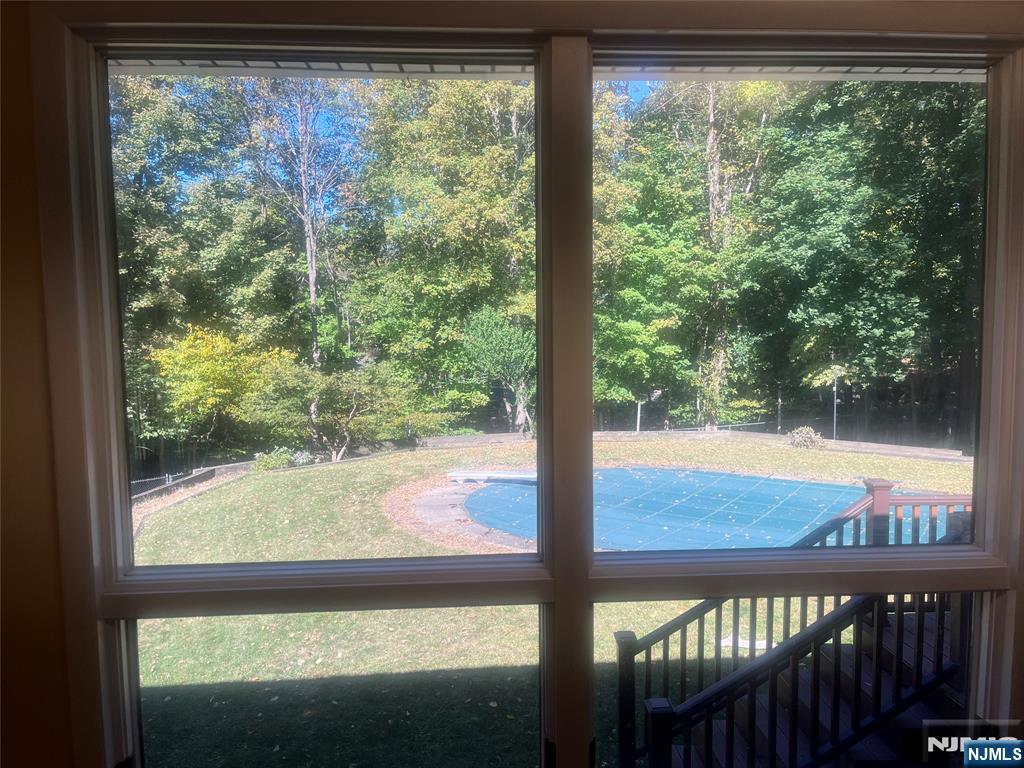 Meticulous updated home in a very desirable quiet neighborhood. Wonderful flow both inside and outside. Kitchen updated stainless steel appliances with wall of windows overlooking a plush private backyard with an inground pool. New bathrooms. Spacious family room with built in wood fireplace and a private room/office on the lower level walkout leading to a serene backyard. Sought after neighborhood; good schools, close to major highways, NY buses and shopping!
