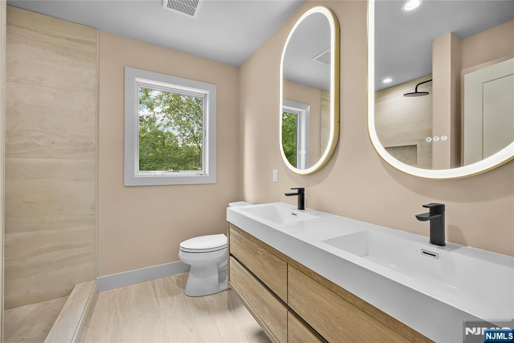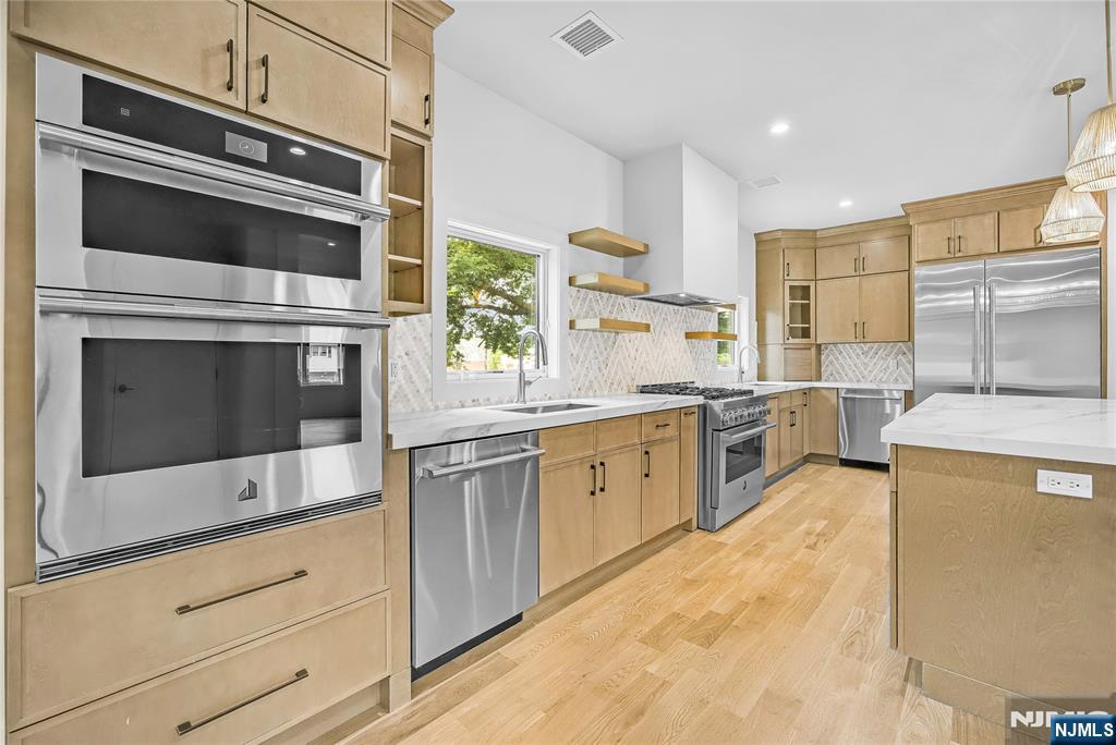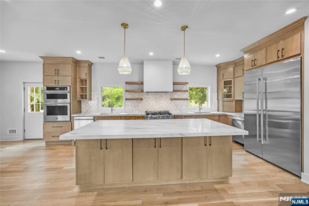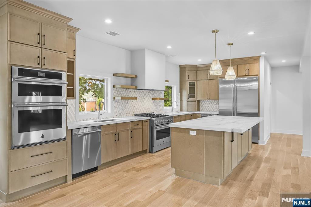 Tucked away on a tranquil dead-end street with a bus stops to NYC, Minutes away from shopping centers , this one-of-a-kind designer home blends privacy, convenience, and refined living. Ready for you to move in and enjoy.Experience the craftsmanship, comfort, and eleganceâ€â€call to tour today. Experience unparalleled elegance in this meticulously crafted 5-bedroom, 3.5-bath artisan-built custom residence, set on a flat, manicured lot in a highly sought after neighborhood.The expansive open floor plan showcases rich hardwood flooring, sleek modern lines, and a warm, airy ambiance flooded with natural light. Expertly designed, the layout captures Warm organic light from dawn to dusk. The gourmet kitchen is a true statement piece. A culinary enthusiast’s and entertainer’s dream kitchen. Featuring premium stainless steel appliances, custom cabinetry, wall ovens, dual sinks, dual dishwashers, a Chefs Extra large refrigerator, and a one-of-a-kind island . With ample countertops offer the perfect setting for cooking, prepping, and entertaining. Upstairs, the luxurious primary suite offers a spa-inspired bath and wide open walk-in closets, while three additional oversized bedrooms provide comfort and flexibility for family or guests.The fully finished basement high ceilings, two spacious living areas, a full bedroom, and a full bathâ€â€ideal for entertaining, unwinding, or working from home in comfort.Total Living Area (including basement): approx. +/-3,473 Sqft