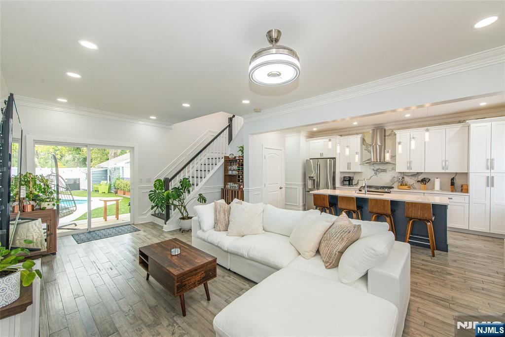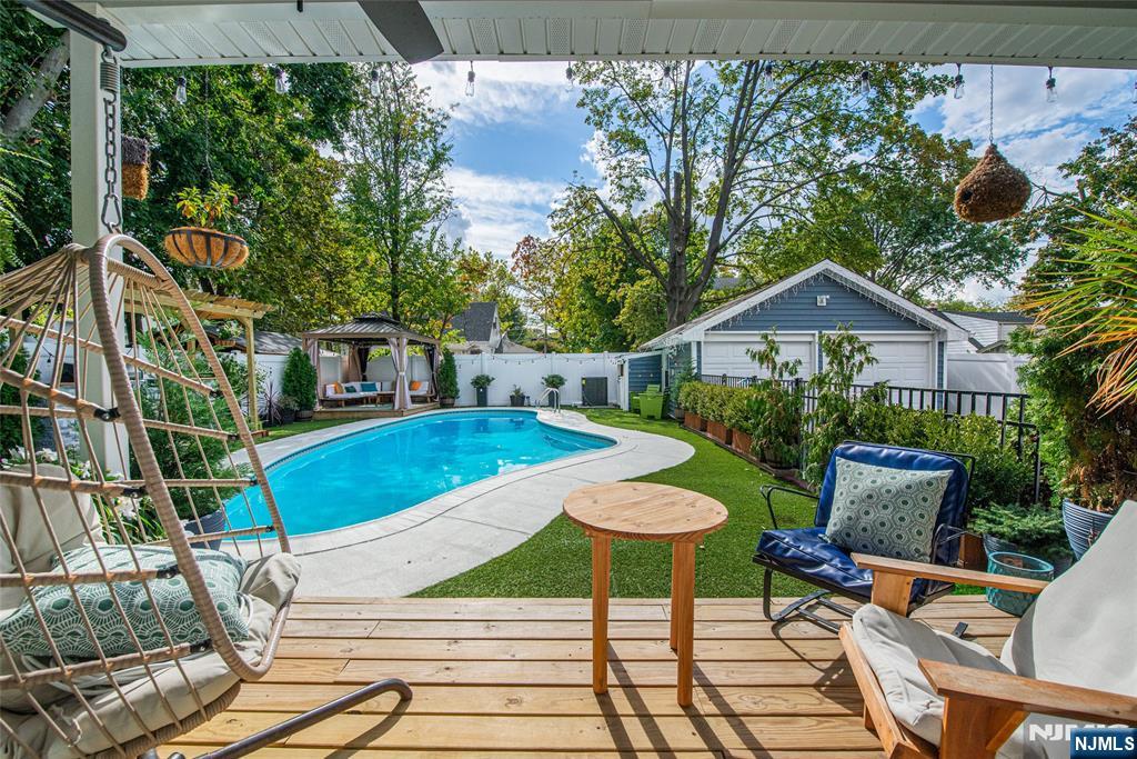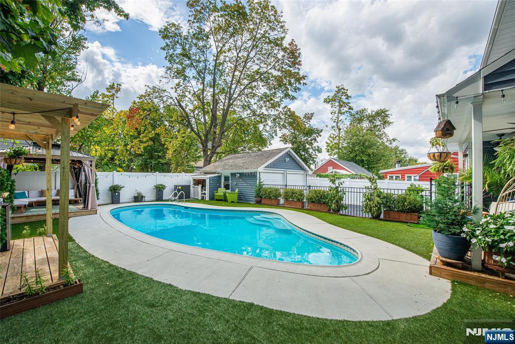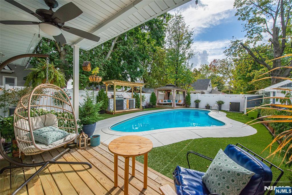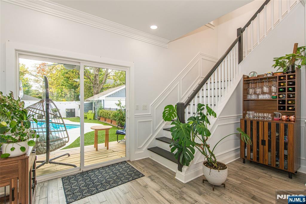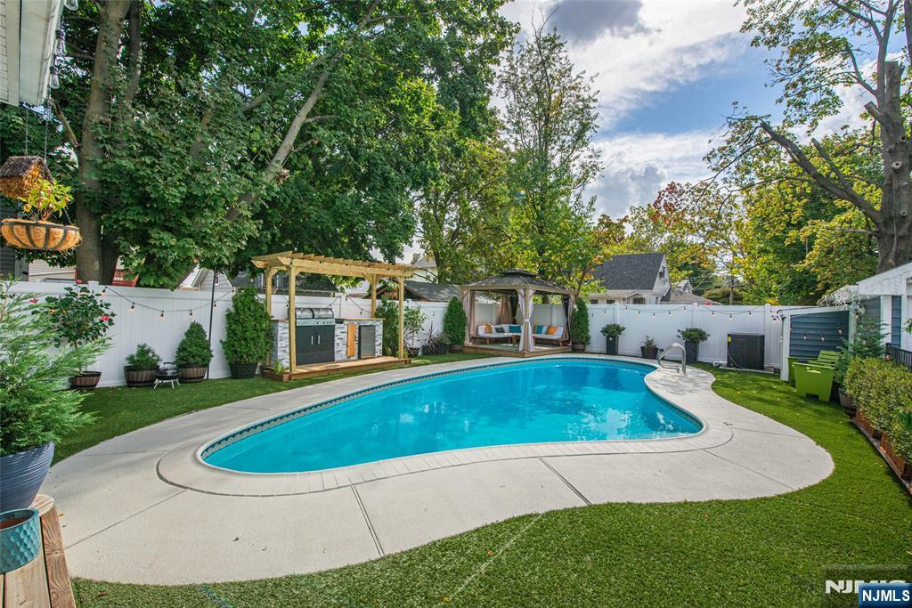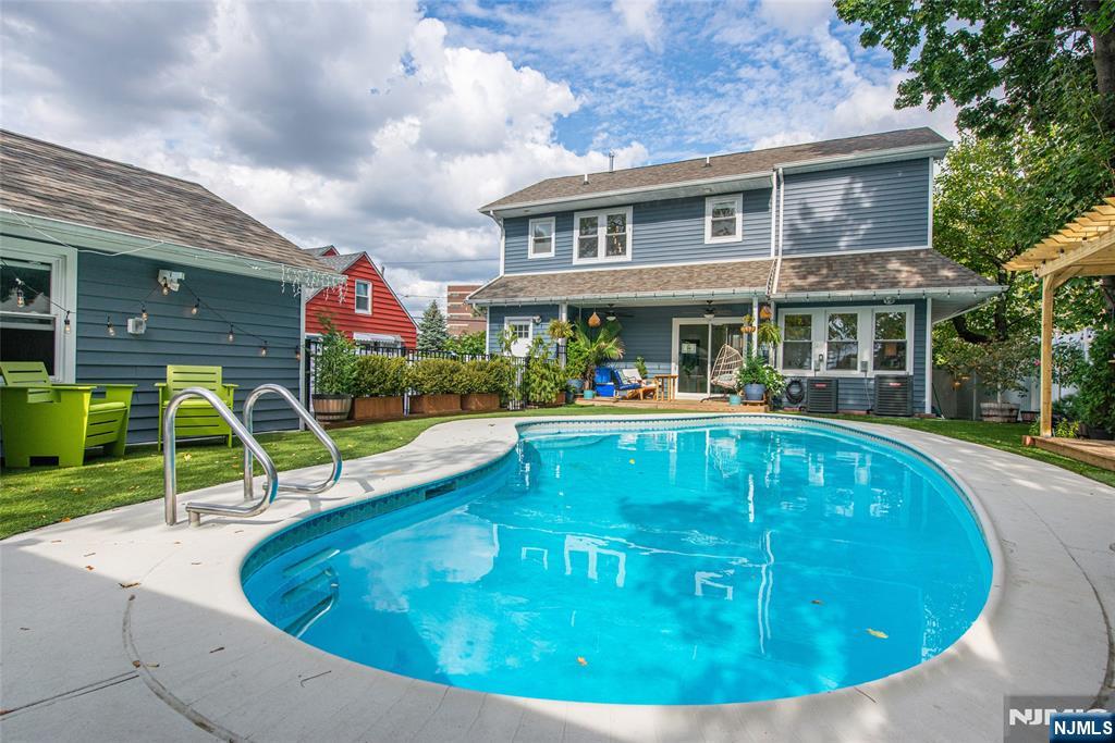 Beautifully expanded & updated 4-BR, 3.1 bath residence offering thoughtfully designed living space, perfectly blending modern flair w everyday functionality. Located in one of Hackensack's most desirable neighborhoods, this home is ready to impress. Enter through a welcoming foyer into a space w abundant natural light featuring soaring ceilings, a spacious mudroom & a generously sized living room. The heart of the home a stunning chef's kitchen is outfitted w quartz countertops, a large center island, ss appliances, a stove w hood & Pella sliding glass door leading to backyard w wood deck & in-ground pool. There's also a versatile room ideal for a den, office, or formal dining, a stylish powder room & a convenient 1st-floor bedroom currently used as an office. The 2nd floor boasts a luxurious primary suite w a full private bath & dual walk-in closets, plus 2 more well-sized BRs & another beautifully appointed full bathroom w double sinks. All the BRs have ceiling fans & recessed lighting. The fully finished basement offers an additional full bath, a large rec room & generous storage space. Enjoy summers by the pool in your private fenced backyard oasis complete w a relaxing cabana & outdoor barbeque. The 2-car detached garage & blacktop driveway provide ample parking. This home truly has it all space, style, & a prime location on a quiet side street, convenient to NYC bus & train, major highways, Hackensack U Medical Center & downtown shops & restaurants. A real gem!