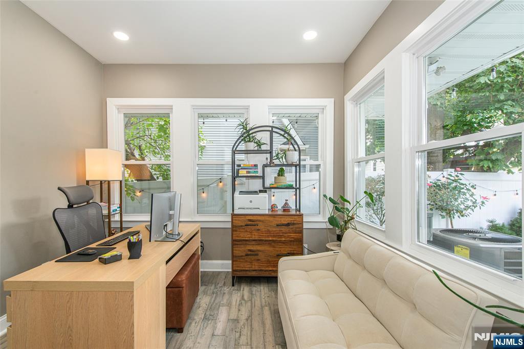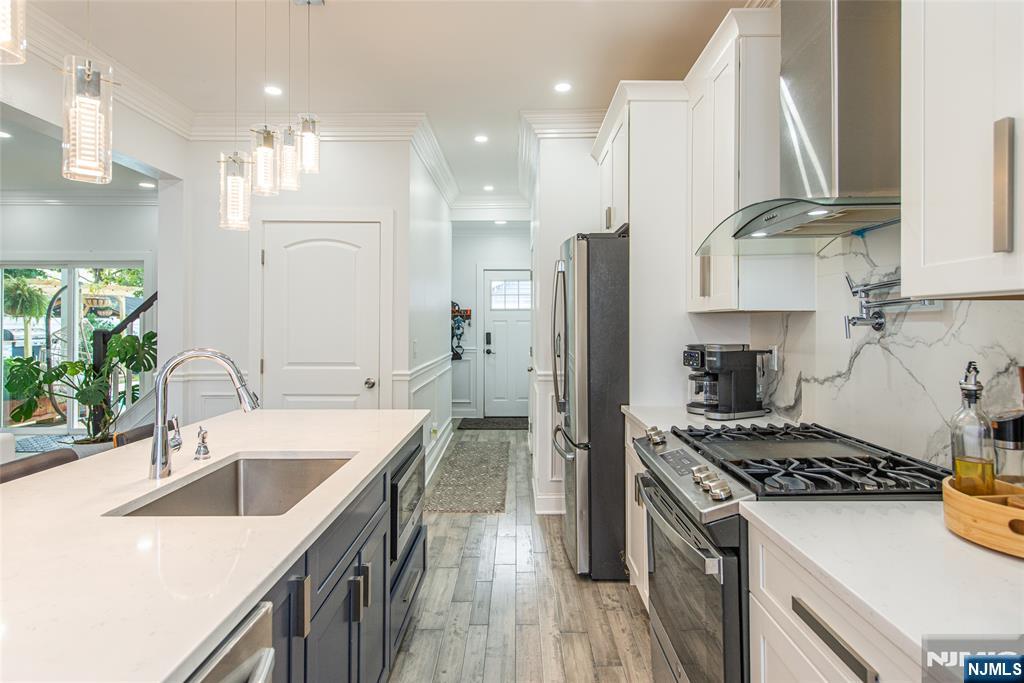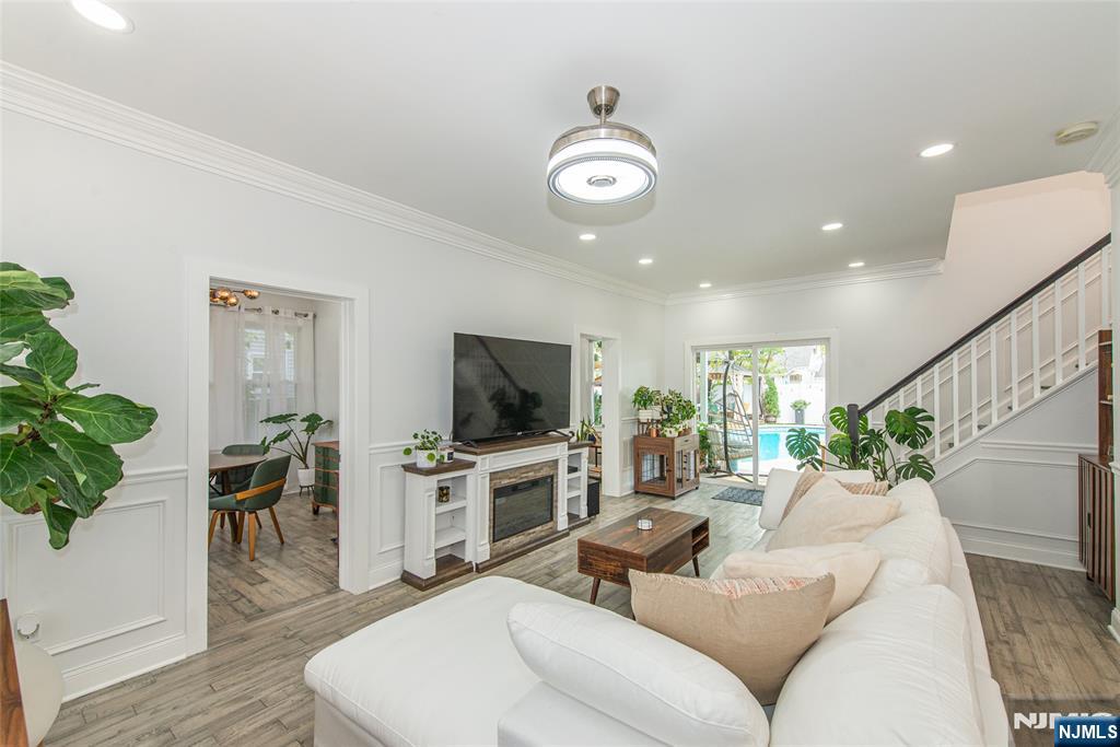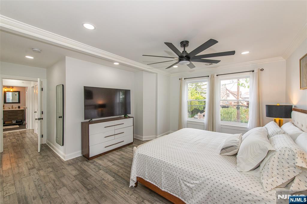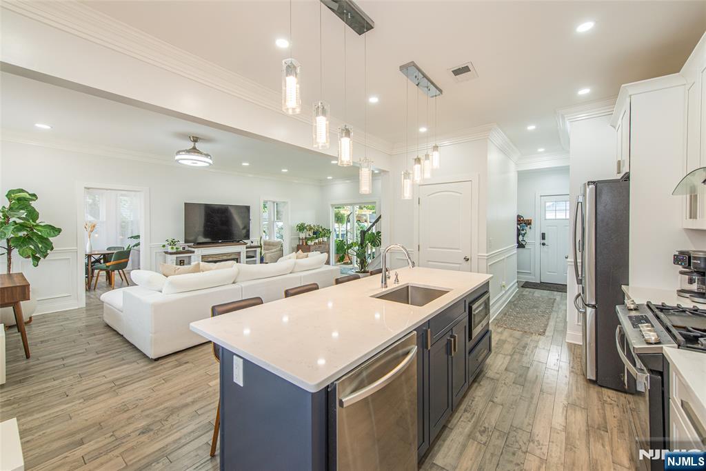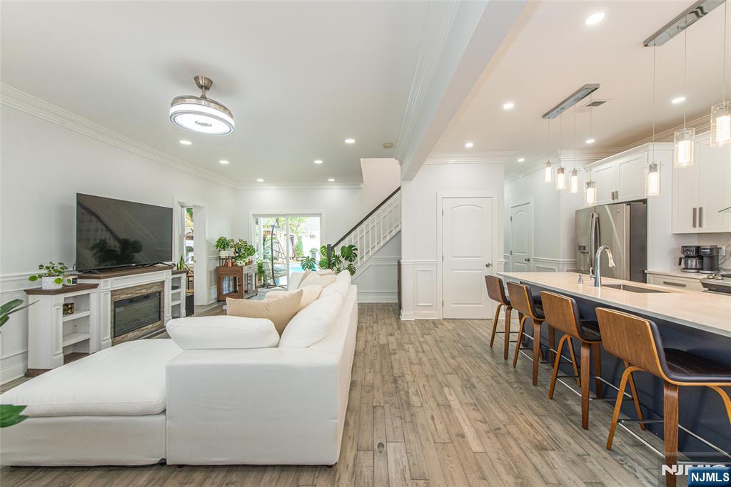 Beautifully expanded & updated 4-BR, 3.1 bath residence offering thoughtfully designed living space, perfectly blending modern flair w everyday functionality. Located in one of Hackensack's most desirable neighborhoods, this home is ready to impress. Enter through a welcoming foyer into a space w abundant natural light featuring soaring ceilings, a spacious mudroom & a generously sized living room. The heart of the home a stunning chef's kitchen is outfitted w quartz countertops, a large center island, ss appliances, a stove w hood & Pella sliding glass door leading to backyard w wood deck & in-ground pool. There's also a versatile room ideal for a den, office, or formal dining, a stylish powder room & a convenient 1st-floor bedroom currently used as an office. The 2nd floor boasts a luxurious primary suite w a full private bath & dual walk-in closets, plus 2 more well-sized BRs & another beautifully appointed full bathroom w double sinks. All the BRs have ceiling fans & recessed lighting. The fully finished basement offers an additional full bath, a large rec room & generous storage space. Enjoy summers by the pool in your private fenced backyard oasis complete w a relaxing cabana & outdoor barbeque. The 2-car detached garage & blacktop driveway provide ample parking. This home truly has it all space, style, & a prime location on a quiet side street, convenient to NYC bus & train, major highways, Hackensack U Medical Center & downtown shops & restaurants. A real gem!