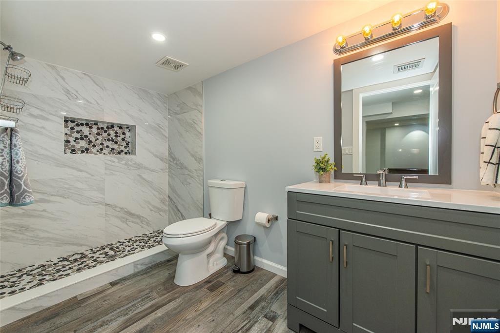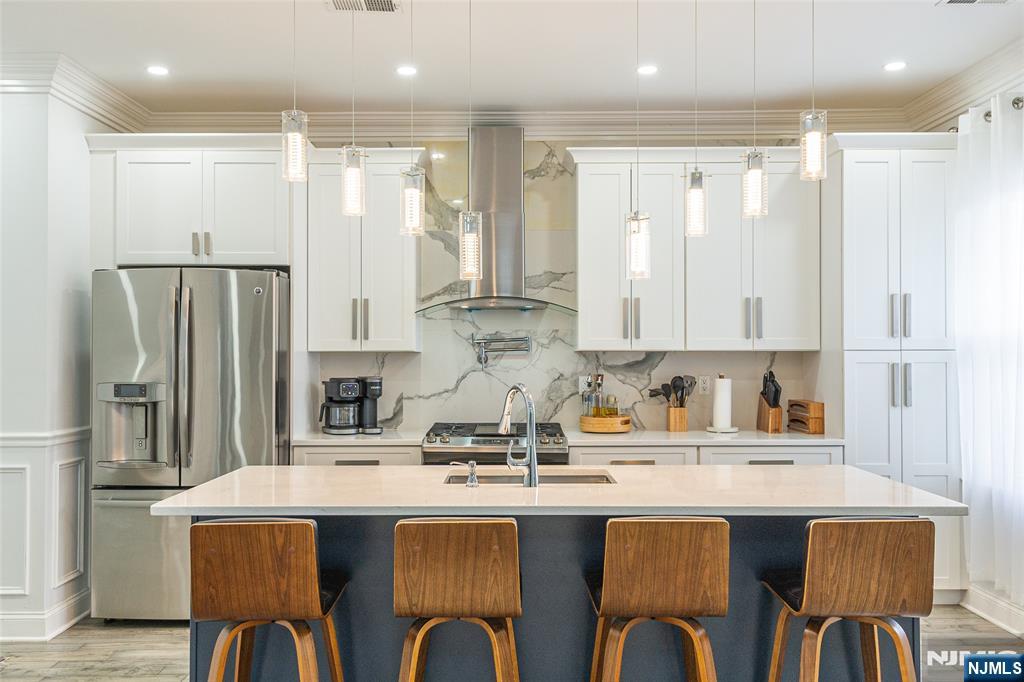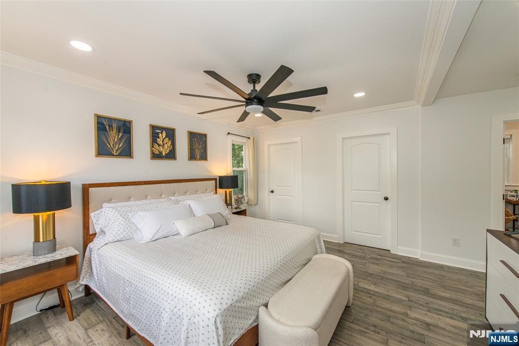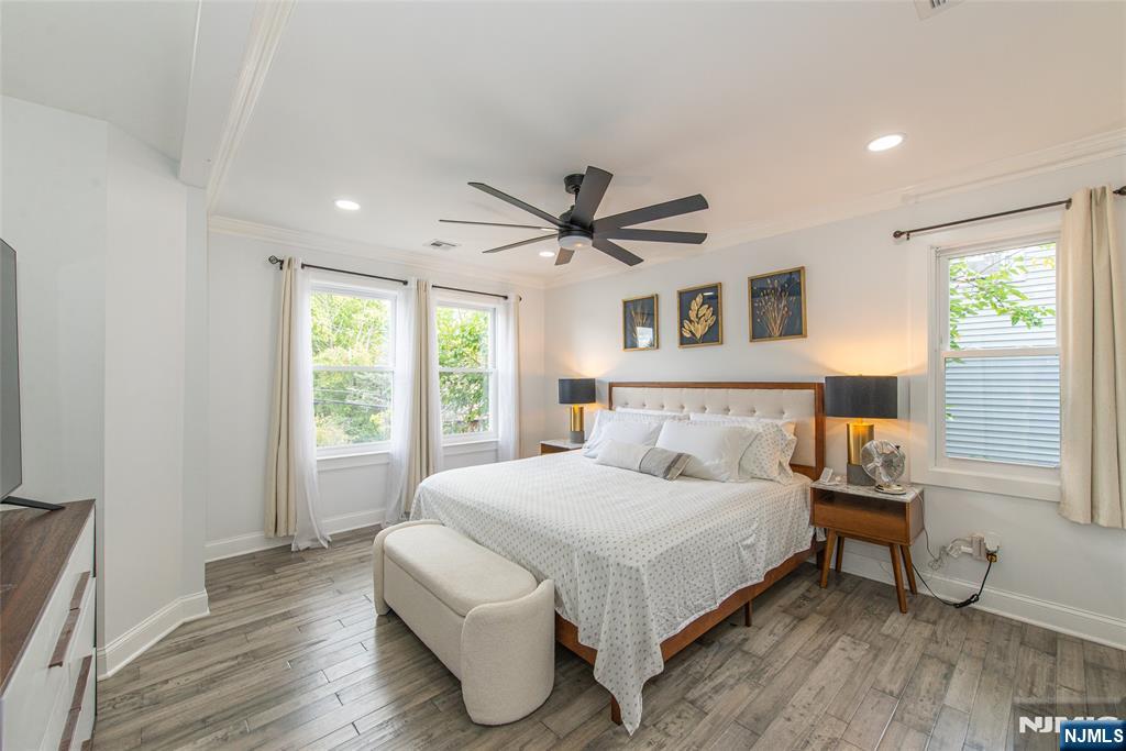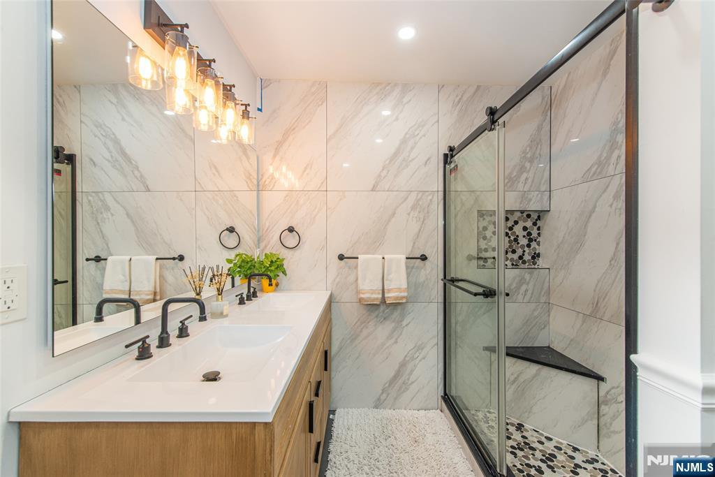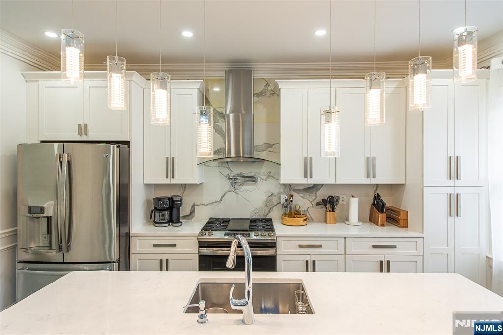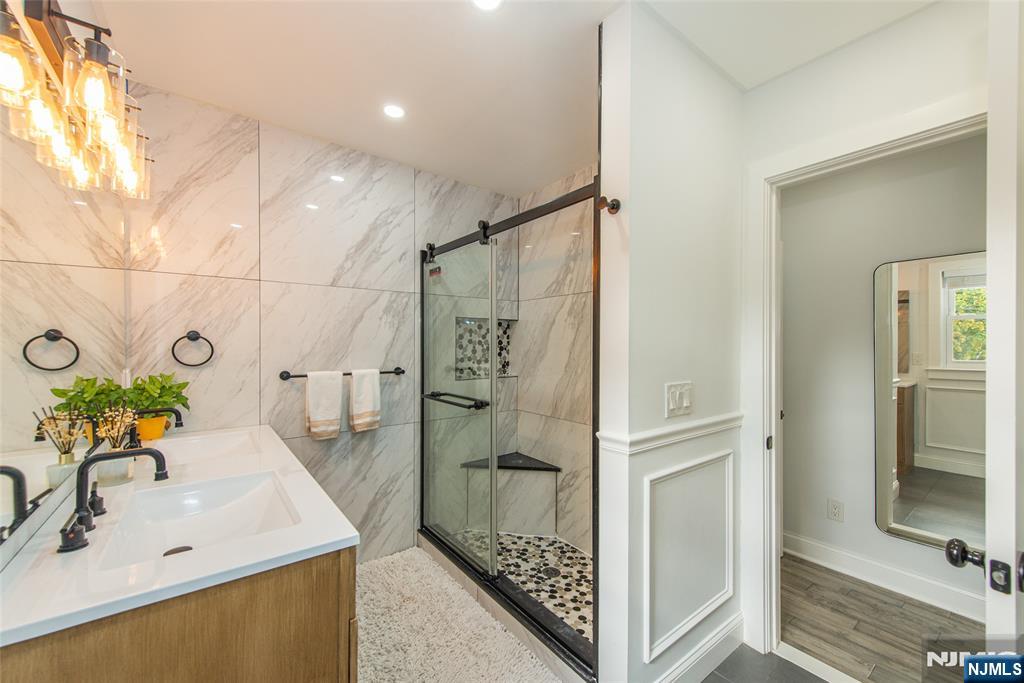 Beautifully expanded & updated 4-BR, 3.1 bath residence offering thoughtfully designed living space, perfectly blending modern flair w everyday functionality. Located in one of Hackensack's most desirable neighborhoods, this home is ready to impress. Enter through a welcoming foyer into a space w abundant natural light featuring soaring ceilings, a spacious mudroom & a generously sized living room. The heart of the home a stunning chef's kitchen is outfitted w quartz countertops, a large center island, ss appliances, a stove w hood & Pella sliding glass door leading to backyard w wood deck & in-ground pool. There's also a versatile room ideal for a den, office, or formal dining, a stylish powder room & a convenient 1st-floor bedroom currently used as an office. The 2nd floor boasts a luxurious primary suite w a full private bath & dual walk-in closets, plus 2 more well-sized BRs & another beautifully appointed full bathroom w double sinks. All the BRs have ceiling fans & recessed lighting. The fully finished basement offers an additional full bath, a large rec room & generous storage space. Enjoy summers by the pool in your private fenced backyard oasis complete w a relaxing cabana & outdoor barbeque. The 2-car detached garage & blacktop driveway provide ample parking. This home truly has it all space, style, & a prime location on a quiet side street, convenient to NYC bus & train, major highways, Hackensack U Medical Center & downtown shops & restaurants. A real gem!