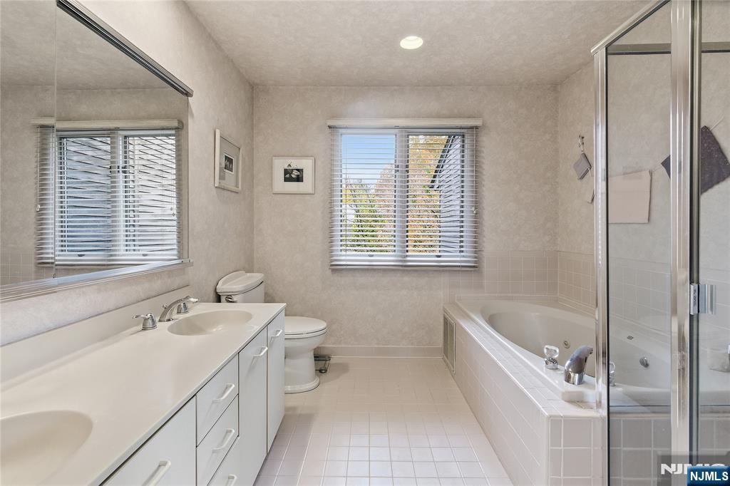 Discover The Fairways conveniently located on a quiet cul-de-sac. This residence is designed for today's living. Large vaulted ceiling living room with dramatic floor to ceiling windows that fill the home with loads of natural light and views of the Overpeck gold course. Extra large cook's kitchen PLUS adjacent appx 10' X10' breakfast area with skylight. Large dining room. HUGE room size wrap around appx 300+ sf deck. Gallery/office overlooks living room with fireplace. King size appx 16 1.2' primary bedroom. Large primary bath with whirlpool tub PLUS adjacent glass enclosed shower. Located minutes from NYC transportation and easy access to NYC and major highways by car. Close to shopping,, dining and local amenities. This home offers superior style, functionality and location.