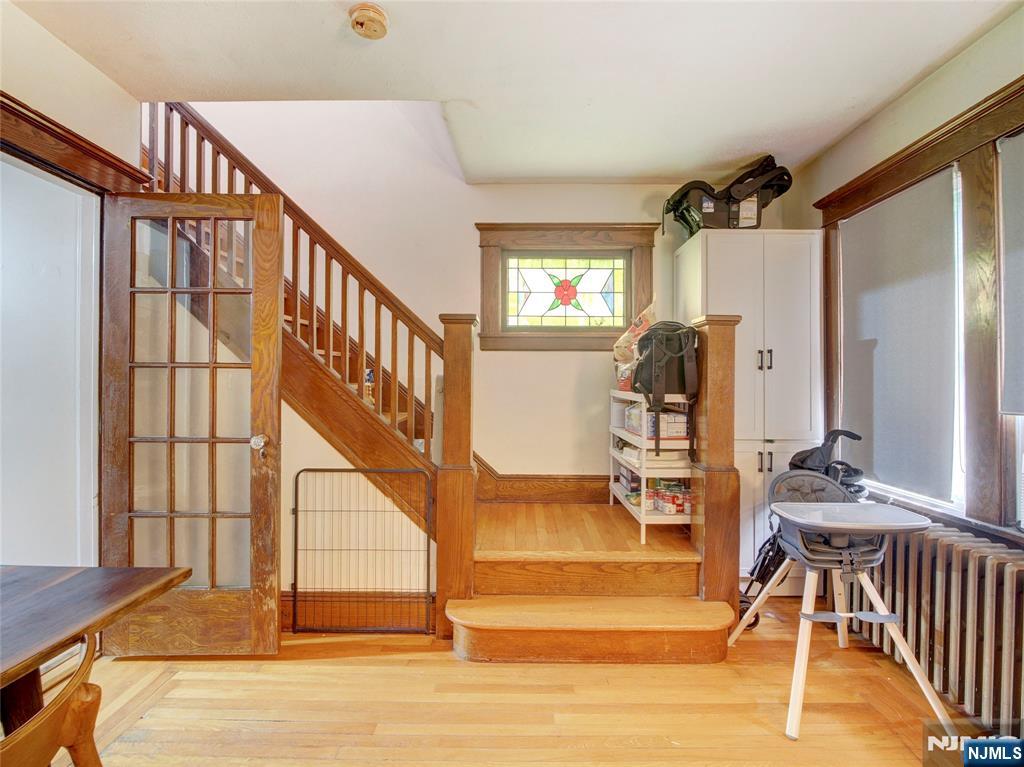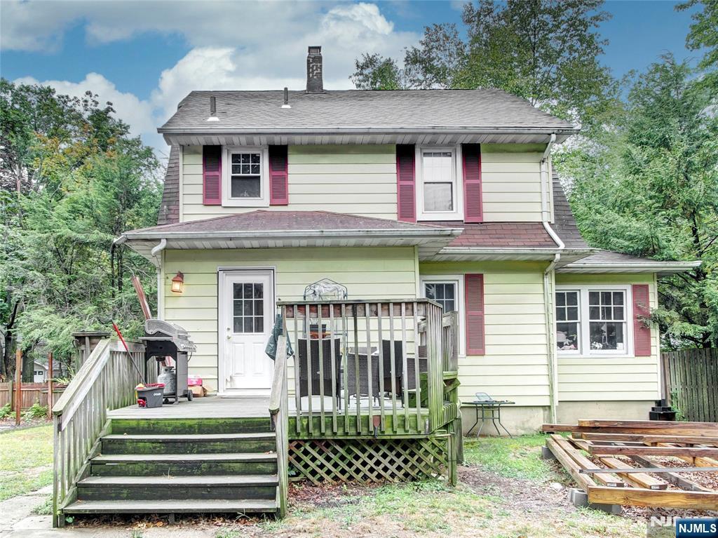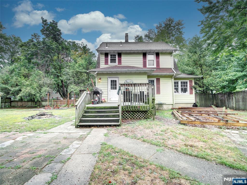 This classic Dutch Colonial is full of potential and ideally located close to shopping, public transportation, schools, and major highways. Set on an oversized 100x100 lot, the property offers a spacious fenced yard and a detached garage, great for outdoor living and storage. Inside, you'll find a formal living room, formal dining room with closet and sunroom, galley-style kitchen with stainless steel appliances, gas cooking, plenty of natural light and a door that leads to the deck and extra large backyard. The second floor includes three bedrooms, while the walk-up attic space includes a flexible bonus room, ideal for a home office or creative space. Hardwood floors and beautiful moldings flow throughout, adding timeless charm and character. The partially finished basement expands your living area with a laundry room, full bathroom, and a bonus room that can serve as a gym, office or playroom. While you can move right into this home, it also presents an excellent opportunity for buyers to bring their vision and updates to make it truly their own.