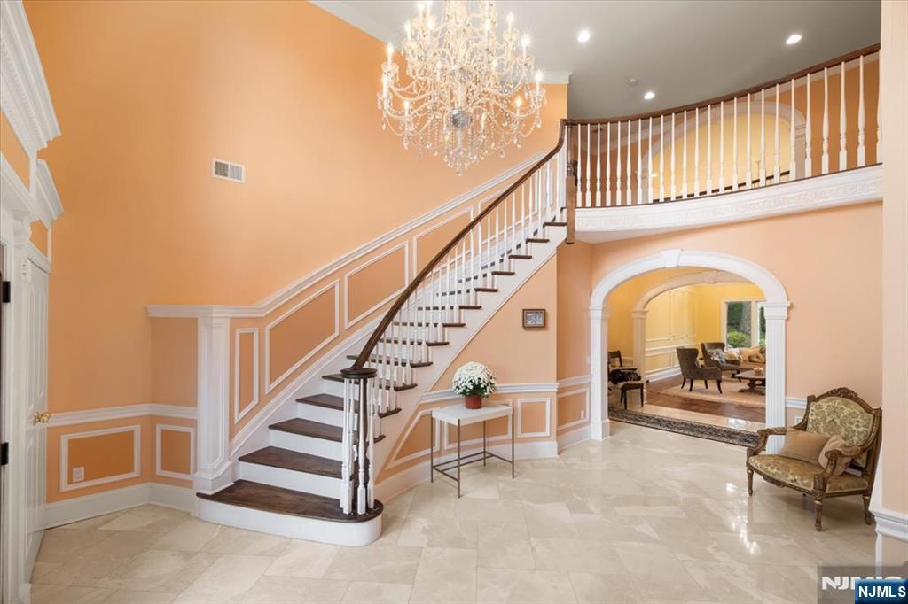 Woodcliff Lake Hilltop Estate: Architectural Grandeur Discover this stunning and spacious 4,756 sq. ft. Colonial retreat with 4-5 Bed, 5 Full Bath, and a 3-Car Garage in a premier Woodcliff Lakes neighborhood. Arrive in style via the Circular Driveway to this private, park-like property set atop a serene hill. The home is meticulously updated with high-end architectural details: lavish crown/picture frame moldings, elegant corbels, and gleaming herringbone hardwood floors. Ultimate Flexibility: Features TWO Primary Suites, each a private sanctuary with its own en-suite bath and Jacuzzi tub—perfect for generational living. Easy 5th bedroom conversion possible. Enjoy the fully-loaded Gourmet Chef's Kitchen with dovetail drawers and extensive pantry space. Multi-zone HVAC ensures comfort. A Juliette balcony overlooks the great room. Your private backyard sanctuary is bordered by mature evergreen trees, providing exceptional seclusion. This is turn-key luxury living at its finest.