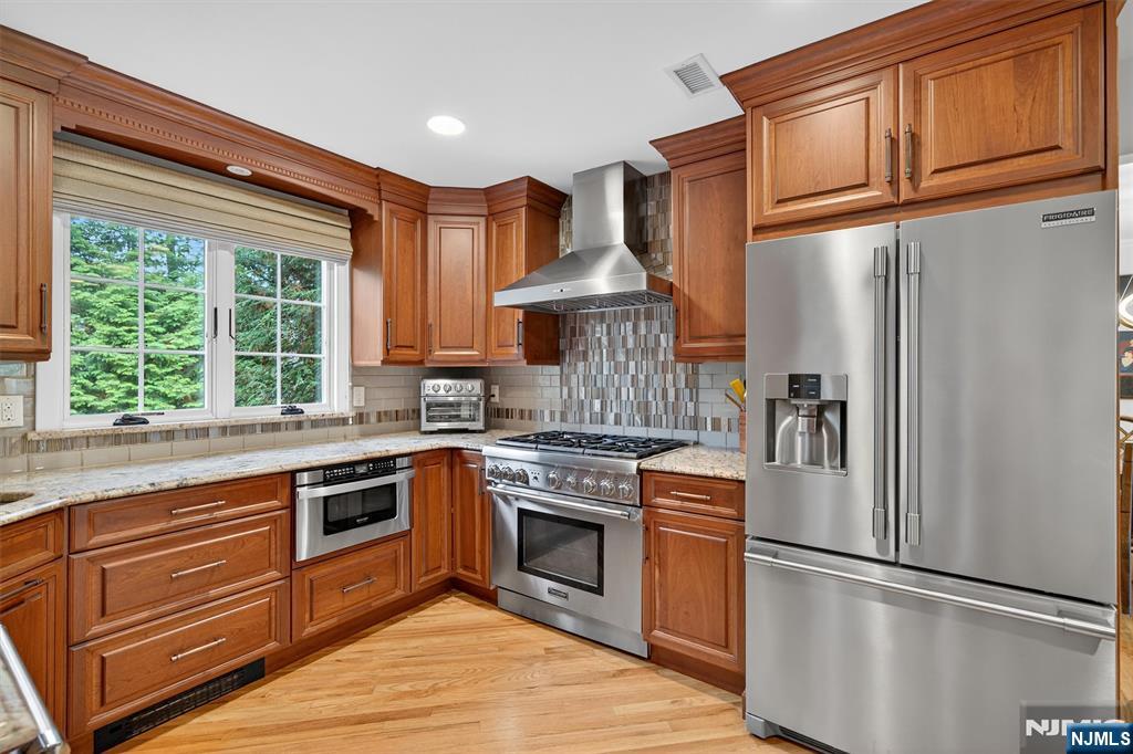 Welcome to this wonderful 4/5 bedroom, 3 1/2 half bathroom colonial nestled on a private cul-de-sac in Northern River Vale.The inviting lemonade porch welcomes you into this beautiful home.Grand living room flows seamlessly into the formal dining room, perfect for entertaining!The chef’s kitchen features a 6 burner Thermador oven, stainless steel appliances,wine frig,granite counter tops and custom cabinets.Sun-drenched family room w/wood burning fireplace & custom bar area.Sliders to the outdoor space w/a large paver patio & private backyard w/gorgeous lush landscaping.A guest room/home office,powder room & laundry room w/laundry chute complete the main level. The upper level boasts a gorgeous HUGE primary bedroom suite with a gas fireplace,2 custom walk-in closets & lux primary bathroom w/a tub, double sinks, make-up area & a large stall shower. 3 additional generously sized bedrooms, one of the bedrooms is ensuite with a walk-in closet, plus another full bathroom complete the second level. The finished lower level is the perfect play/rec room, it features a built-in desk area for a home office, gym space, huge storage room, plus lots of closets. So many upgrades throughout this home, whole house generator, gleaming hardwood floors, new central ac, alarm system, belgium block driveway, sprinklers and the whole house freshly painted. Just minutes from parks, shopping, dining & NYC transportation. Busing to the middle and high school! This home shows true pride of ownership