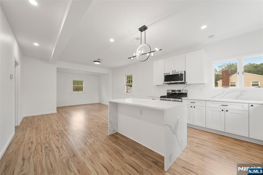 Welcome to 174 Pleasant Ave in Bergenfield! Discover modern living in this fully and exceptionally renovated 4 bedroom, 3.5 bath gem nestled in a highly sought-after neighborhood of Bergenfield, right on the Tenafly border near the Knickerbocker Country Club Golf Course! Designed for comfort & convenience, this sun-drenched home features open-concept first floor with a spacious living/dining area and a chef's kitchen boasting quartz countertops, center island and stainless steel appliances! The main level also offers a welcoming foyer, powder room, coat closet, and a serene master suite with a private bath and direct access to the back deck. Upstairs, you will find two generously sized, light-filled bedrooms, a full bath, and access to attic storage. Fully finished basement offers a finished private setup with a bedroom featuring walk-in closet, a full bath, a kitchenette, laundry room and separate entrance, making it ideal for guests or extended family. Additional highlights include a 6-car driveway, a charming front deck and full CCTV security system(receiver, storage, and subscription-free cloud access). This move-in ready home delivers exceptional value package of style, functionality and peace of mind! Don't wait to see this rare gem!