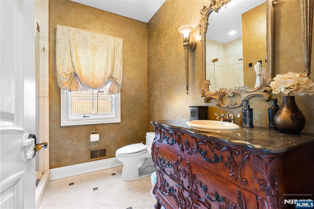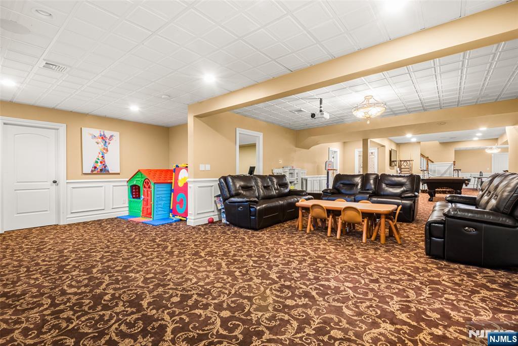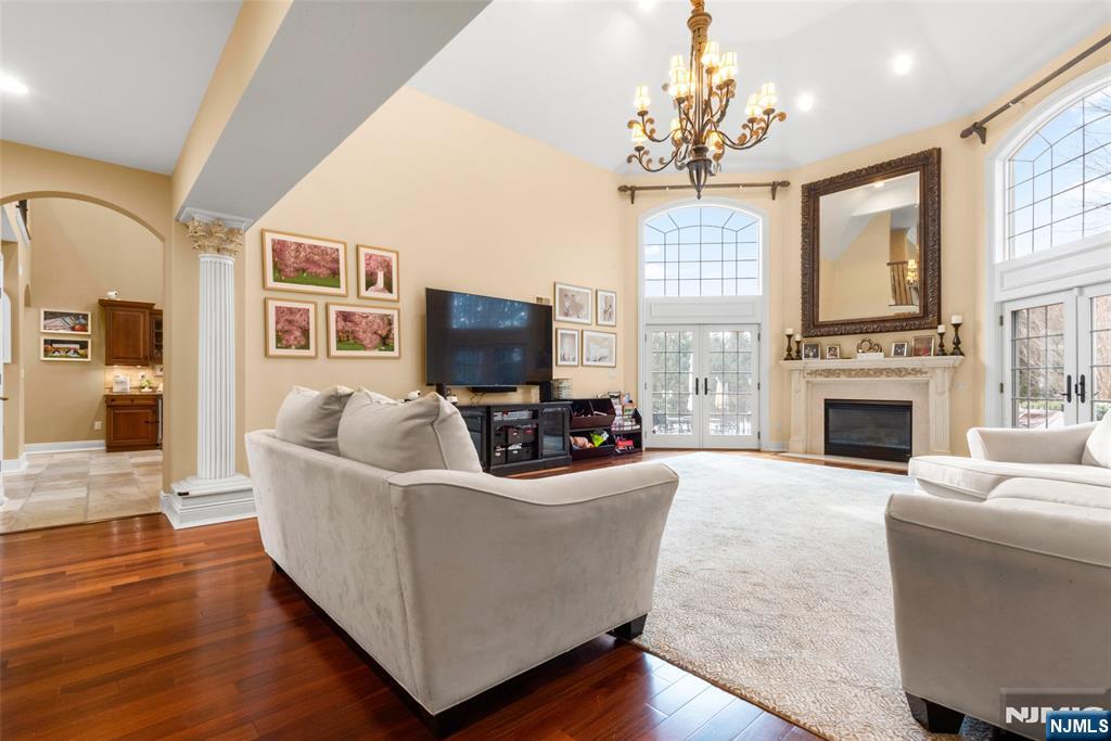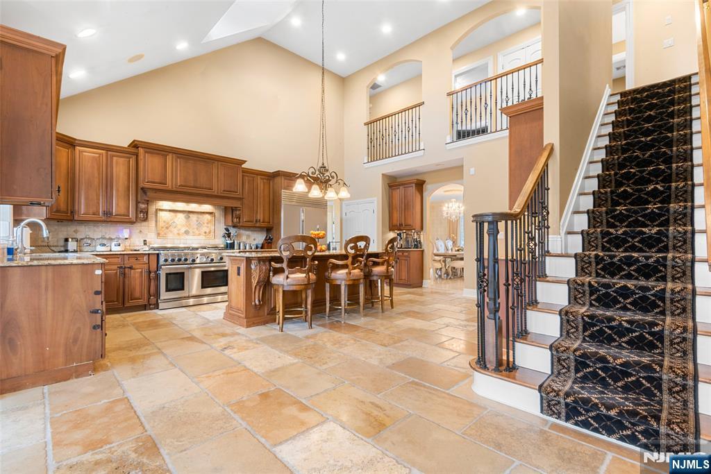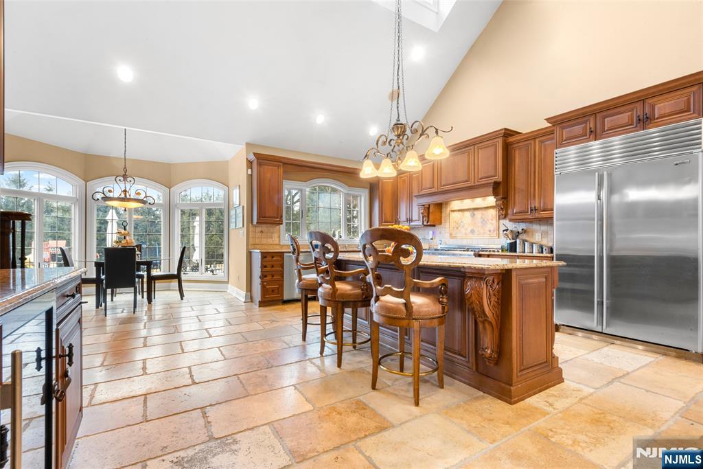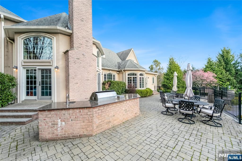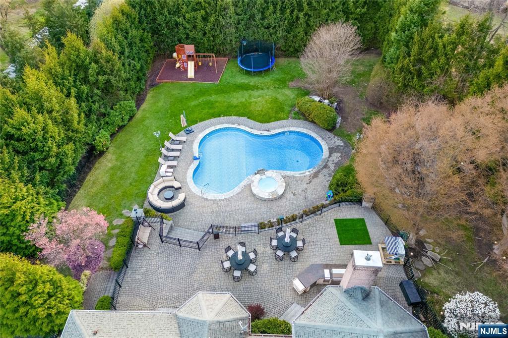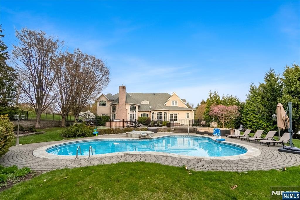 Situated on one of North Haledon's most desired cul-de-sacs is this incredible brick estate, featuring 7,500 feet of beautifully finished living space on a perfectly manicured 2/3 acre. Enter through the grand two-story foyer and enjoy elegant formal living and dining rooms, a dramatic great room with soaring ceilings and fireplace, massive eat-in chef's kitchen with additional living room, and main floor bedroom with full bathroom. Upstairs, a luxurious primary suite on its own wing, with 3 more bedrooms including another bedroom suite. The sprawling basement includes a recently added bar, a gym, home office, full bathroom and more. Outside, entertain in your resort-style backyard featuring a heated pool, spa, outdoor kitchen, koi pond, and playground, encased by lush landscaping and matured privacy trees. Additional highlights include custom millwork, oversized 3 car garage, water feature, and smart home upgrades. Located near parks, top rated schools, easy commute to NYC.
