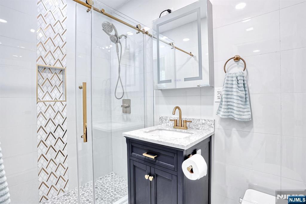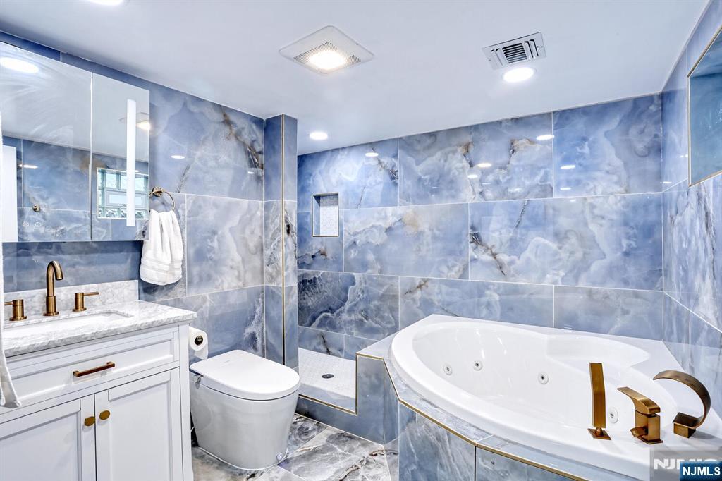 The best location in Fair Lawn: 2 blocks from Memorial Middle School, pool, park & dog park. Houses of worship, buses to NYC & in NJ, are right out. Stunning sun lit fully renovated over 3,000sqft house. New roof, floors, privacy fence, gorgeous paver driveway for 5 cars, multi-level central AC & heating, 200amp electric panel. Gorgeous gourmet kitchen with high-end Forno & Cafe appliances, quartz counters, double sink, huge island with wine cooler & microwave. Marble electric fireplace. Professional 48” stove - 10 burners, 2 ovens, & 48" exhaust fan. Automatic blackout remote controlled blinds. Large windows. High ceilings. Recessed lighting w dimmers. 5 king size bedrooms with walk-in closets. 5 stunning bathrooms w smart toilets, bidets, LED med cabinets & vanities with marble counters. Large enclosed front porch/Florida room has mudroom area & coffee nooks for a large family. Glamorous 2 bedroom 2 bathroom suite located on the 1st floor. 3 bedrooms & 2 bathrooms located on the 2nd floor. 5th 4pc windowed bathroom with shower & jacuzzi located in the finished basement with separate entrance, huge living space & 2 windowed bonus rooms/offices. Laundry room with high-end washer & dryer. Picturesque yard with emerald grass. 5 min drive or15 min walk to FLHS. Marina is 5 min drive. The proximity of the river brings clean air and easy breathing. The house located on a hill, so flood insurance isn’t required. The basement was never flooded. New built-in sump pump. Owner has