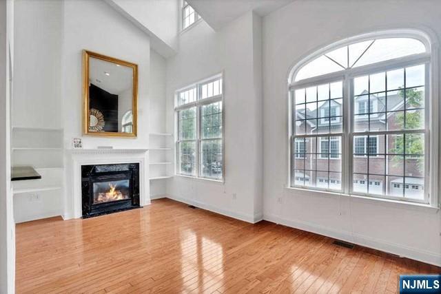 Spectacular South facing Chatham style townhome! This 1762 Sq ft freshly painted townhouse boasts of Two bedrooms, two full baths and a half bath ,a spacious loft area that is ideal for a home office/ home gym or even a third bedroom.The living room has high ceilings with double pane windows which flood the home with sunlight.The home comes with a Gas Fireplace marble surround and custom shelving.The kitchen has granite countertops & stainless steel appliances.The spacious loft overlooks the living room .The Laundry room is conveniently located on the same level as the bedrooms. The Master bedroom has high vaulted ceilings a spacious Master bathroom and massive walk-in closet. The townhome comes with two Parking spaces. The Community features two pools with Jacuzzis, a tot lot,the impressive waterfront promenade and free Ferry bus that runs the NY Waterways ferry terminal and light rail. The community is conveniently located close to Shopping , Stores & Restaurants.