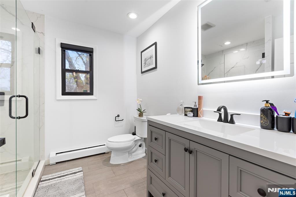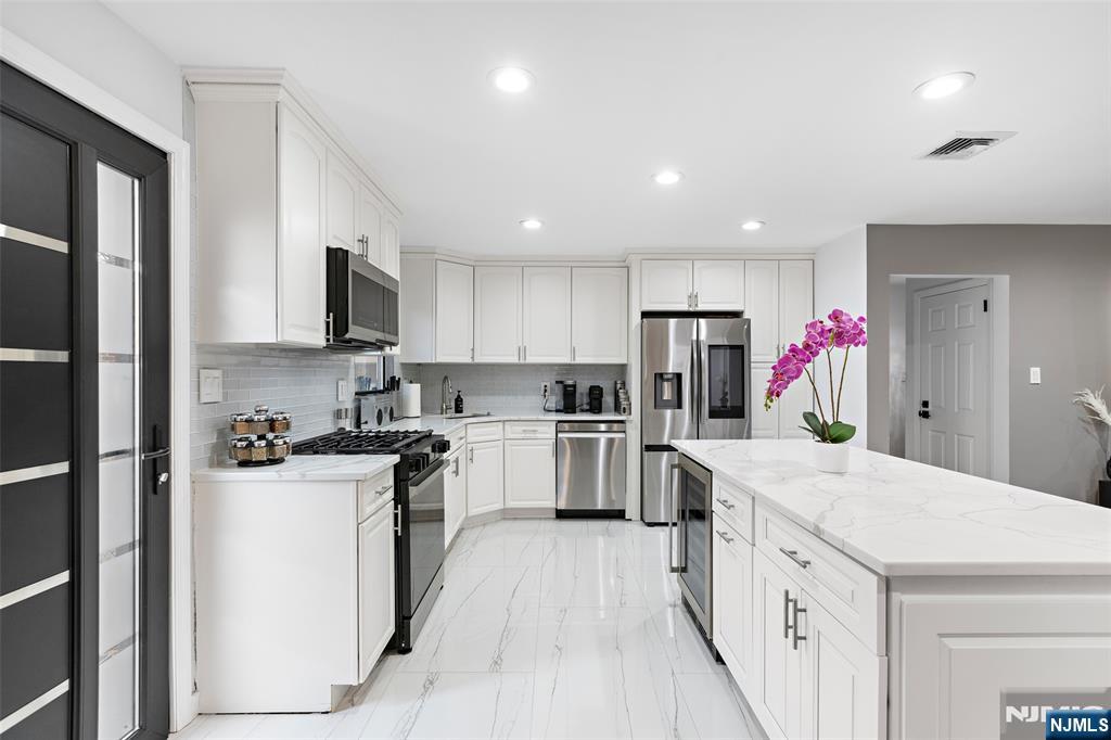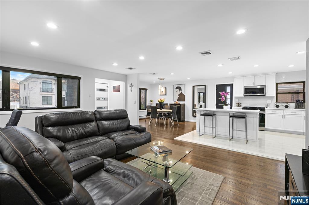 Fully Renovated Raised Ranch in Fort Lee! Beautifully updated 4BR/2BA home featuring an open-concept living and dining area, modern kitchen with quartz countertops, and stainless steel appliances. Both bathrooms fully renovated with sleek tile and finishes. This beautiful home also features refinished hardwood floors, fresh paint, new windows, central air, a fully finished basement with additional living space, and paver patio. Prime location near schools, parks, shopping, houses of worship, and NYC transportation including the GW Bridge.