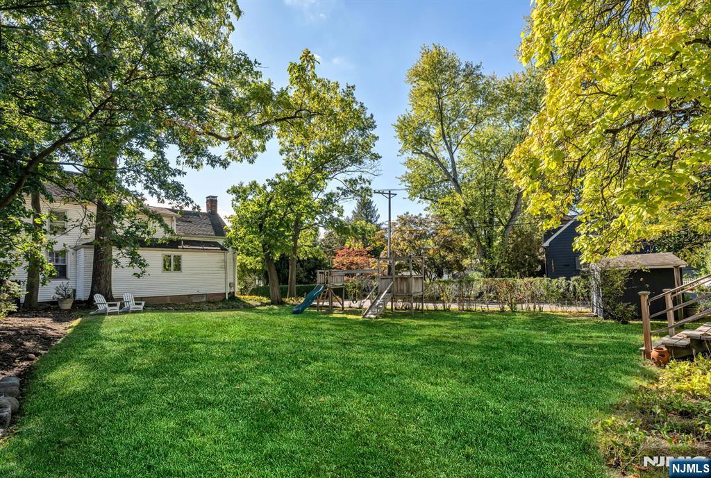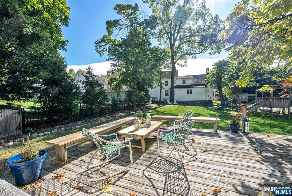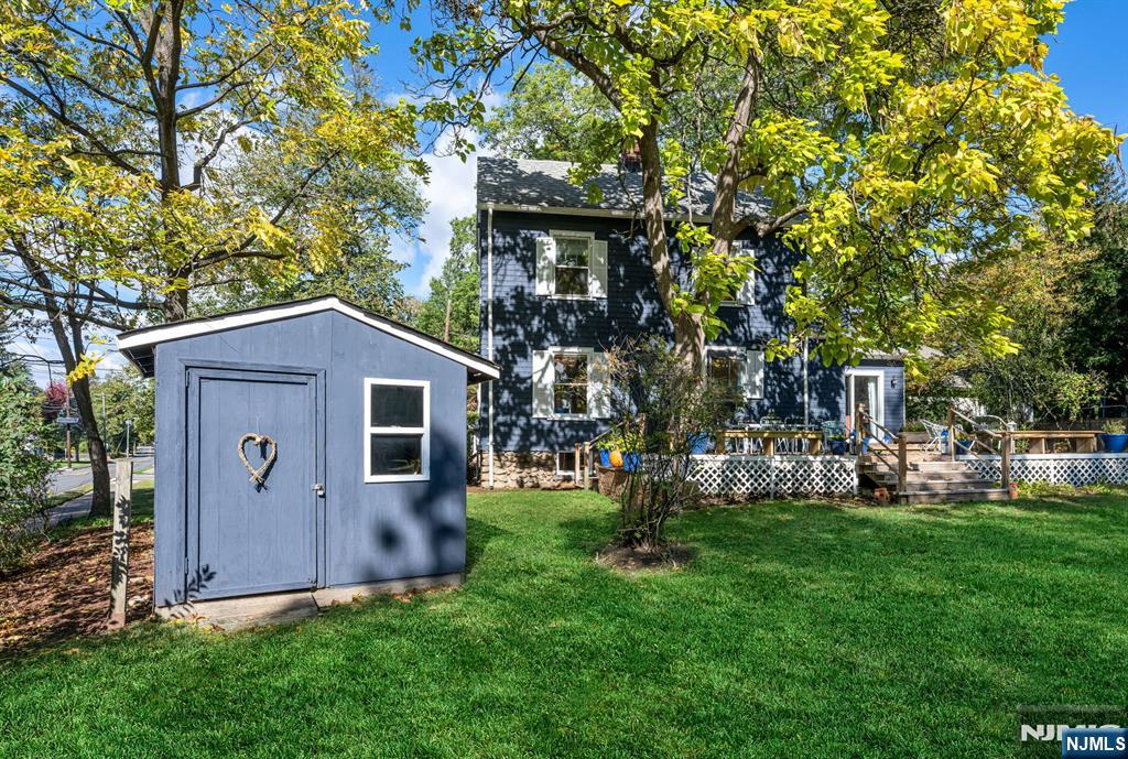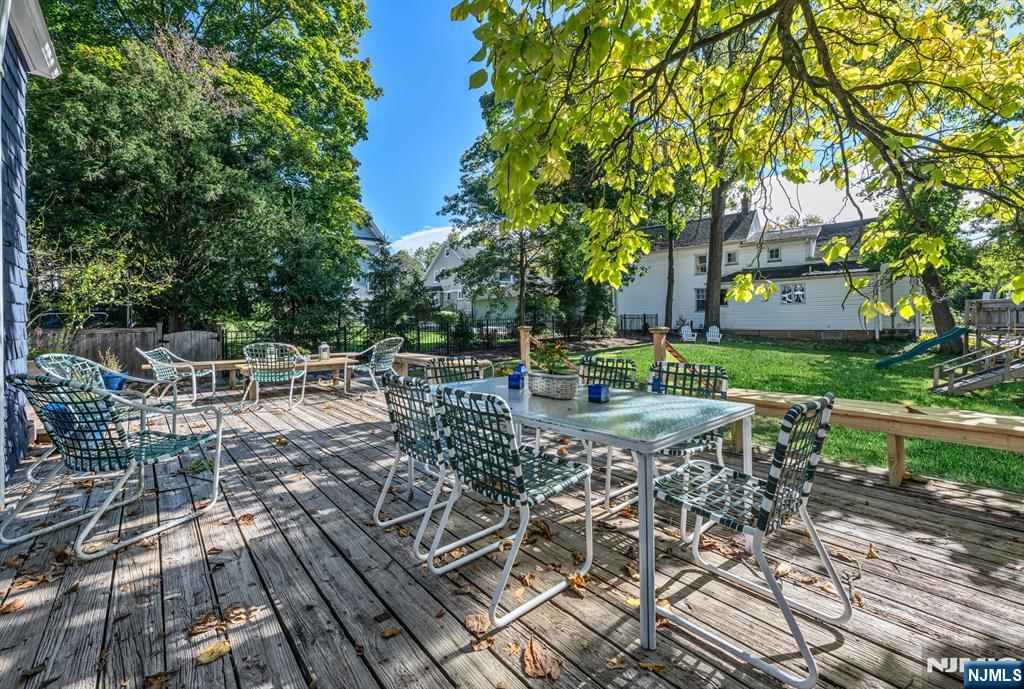 Welcome to this charming side hall colonial, perfectly situated on a picturesque, tree lined Ridgewood street. Just around the corner from Orchard Elementary School, GWMS, the vibrant downtown and the NYC train, this home offers both convenience and classic appeal. The house flows perfectly, from the DR with high ceilings, to the cozy FLR to the adjoining eat in kitchen. Have a cocktail at the built-in bar and bring your guests to the large inviting Family Room w/wood burning fireplace and French doors out to the oversized deck and backyard. A beautiful updated PR completes the first floor. Second floor has 3 generous light filled bedrooms w/lots of windows and a full bath. Attic stairs to third floor storage. Lower level is partially finished with laundry, office, playroom, utilities and storage. The yard is incredible w/ a spacious wooden deck. This bright, light filled home is ideally located--don't miss this fabulous opportunity!