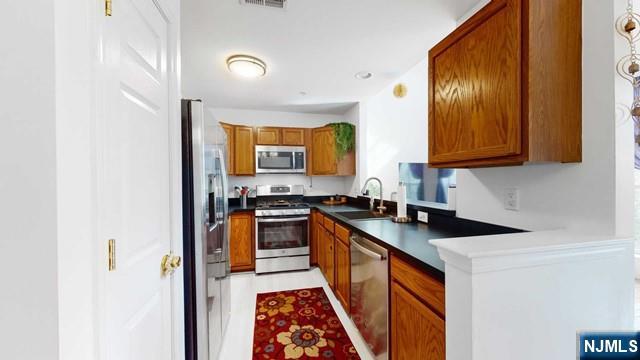 This gorgeous sunlit Berkley model townhome (largest in the complex) with open concept kitchen w SS appliances flows into the LR with high ceilings, tons of large windows and lots of natural light. There is also a DR & powder room on this floor. Proceed upstairs to a large loft which can be set up as a 3rd bedroom, gym, office, and so much more! Down the hallway is the laundry room, 2nd full bathroom, linen closet, 2nd bedroom and a huge main bedroom with a massive bathroom w dual sink, jacuzzi tub, shower stall and a large walk in closet and a balcony. Excellent location within the community - located in Riverwalk II (newer section). Steps to NYC bus, walk to train, Target, restaurants and more!! This home will not last!!