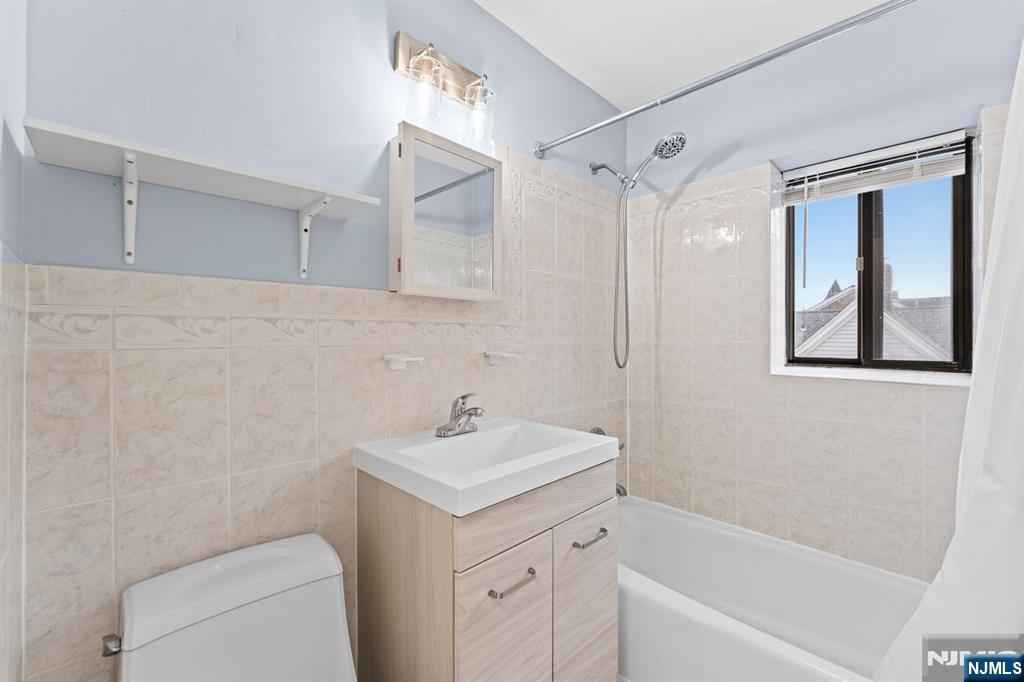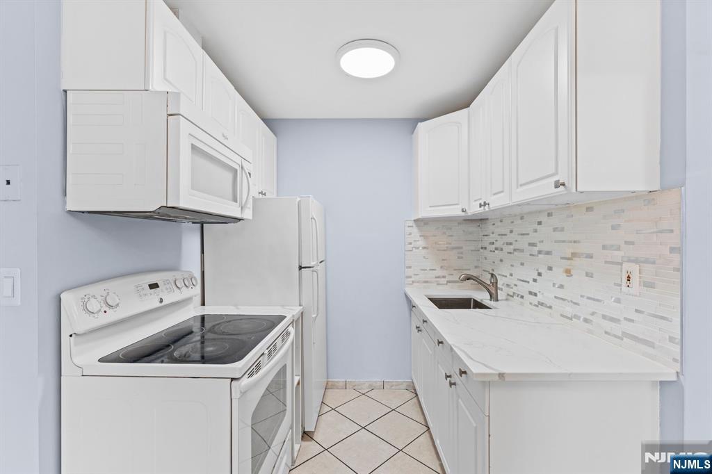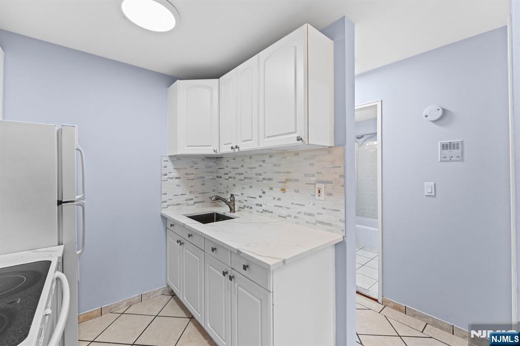 Fresh, bright, and move in ready at 245 Anderson St in Hackensack. This updated one bedroom, one bath condo welcomes you with a wide, open living and dining area finished in easy care tile and soft, modern paint. The efficient galley kitchen shines with white cabinetry, stone counters, a sleek mosaic backsplash, and newer lighting. The bedroom offers great scale and a double closet, while the renovated bath features a clean vanity, soaking tub with shower, and a window for natural light. Comfort and convenience come standard here: off street parking, laundry on site, and low maintenance finishes throughout. Step outside and you are moments to shopping, dining, and everyday services, plus the NJ Transit Anderson Street station for a simple commute to Hoboken and New York City. Whether you are a first time buyer, or a down sizer, this tastefully updated condo makes life simple in the heart of Hackensack.