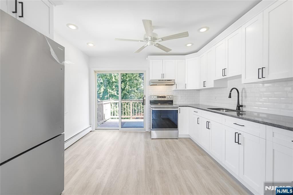 Stunning fully renovated 1st-floor unit in a desirable Little Ferry location! This 2-bedroom, 1-bath open-concept home features a modern updated kitchen with stainless steel appliances and direct access to a private deck. The spacious layout offers an open living and dining area, 2 Bedrooms, with full bathroom, and central heat and AC. Tenants will enjoy access to a shared backyard, and 1 driveway parking. Conveniently located near schools, parks, shopping, and within walking distance to public transportation with easy access to Manhattan and all major highways. Credit check and proof of income required. Available immediately!