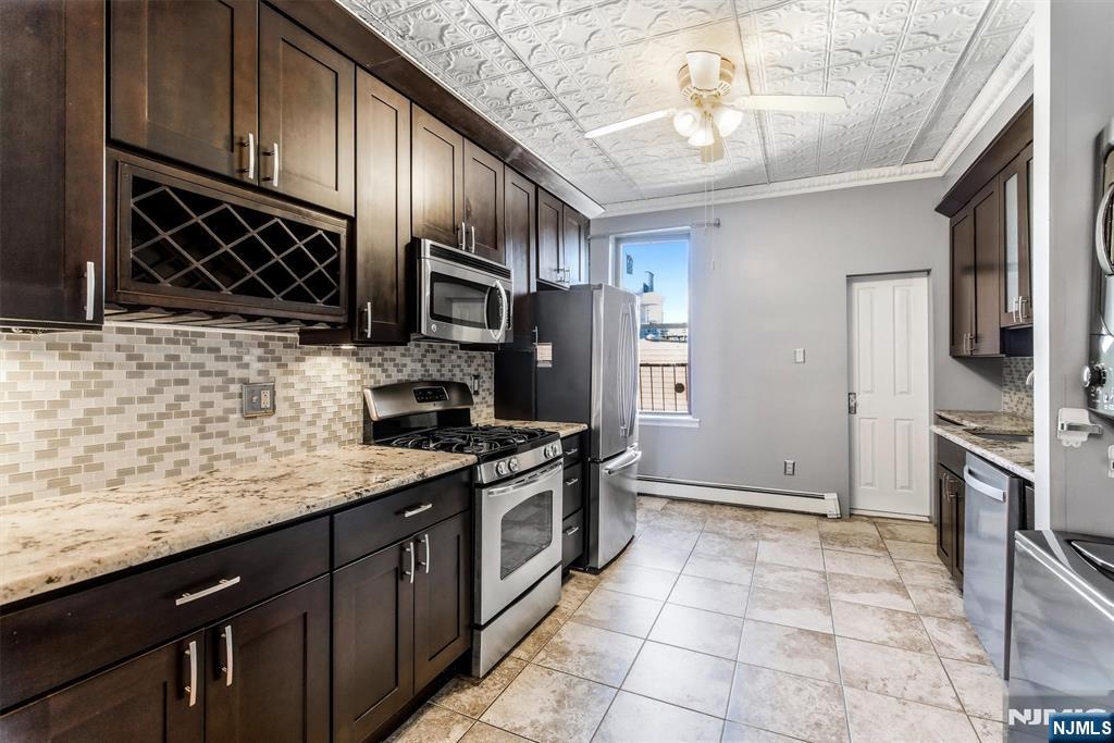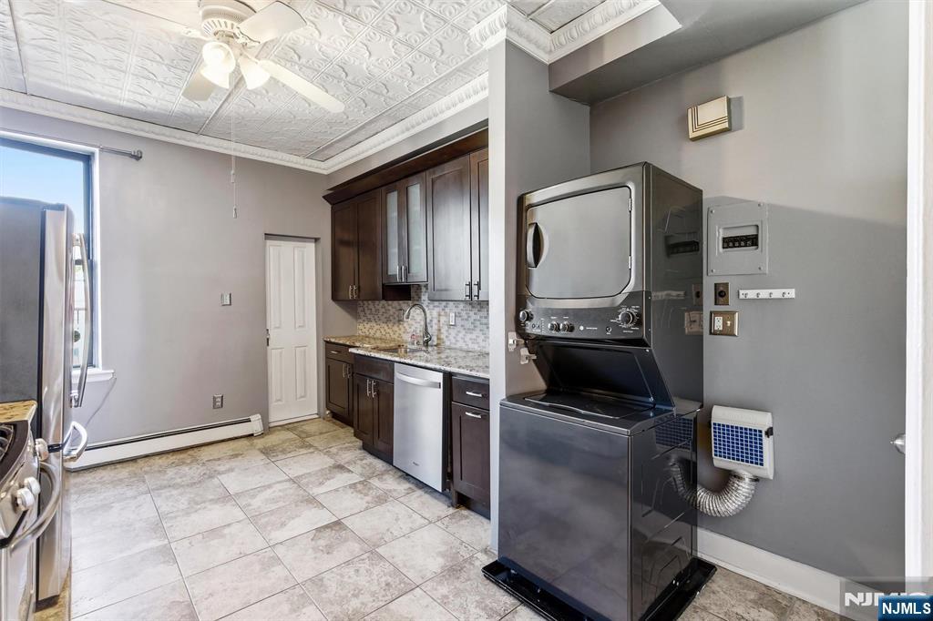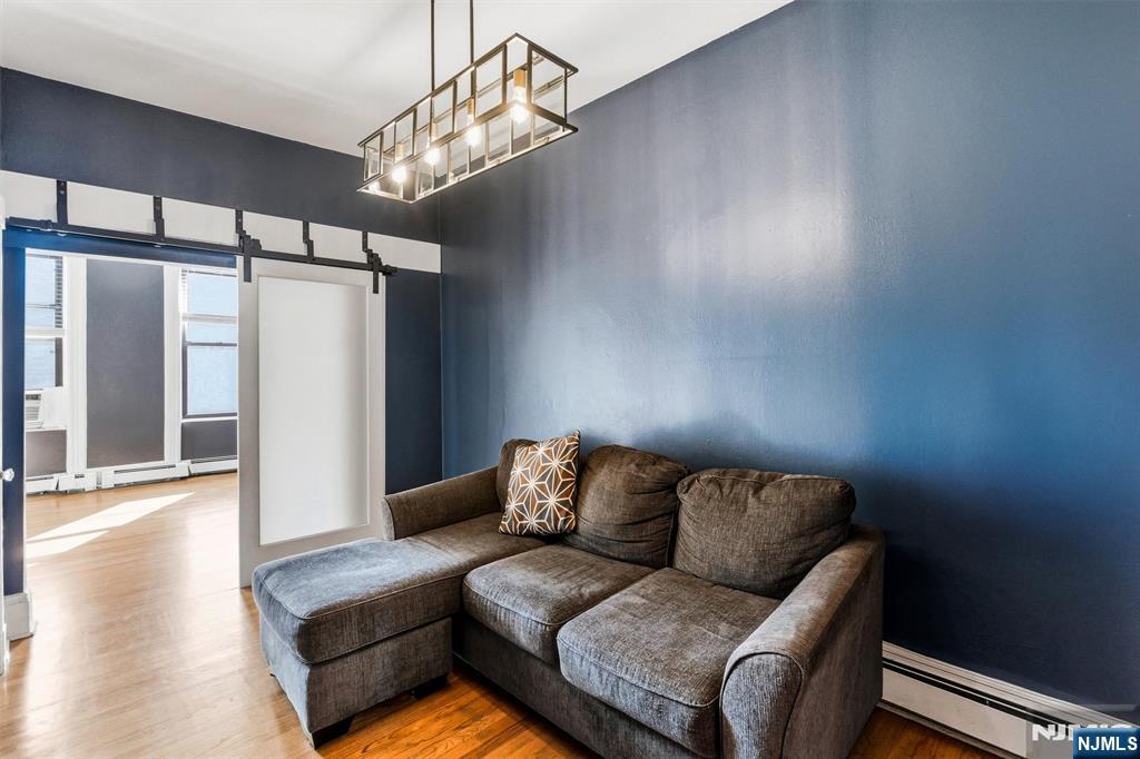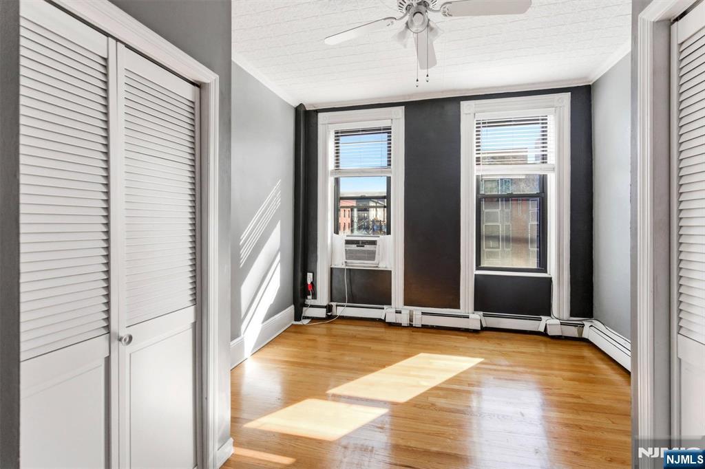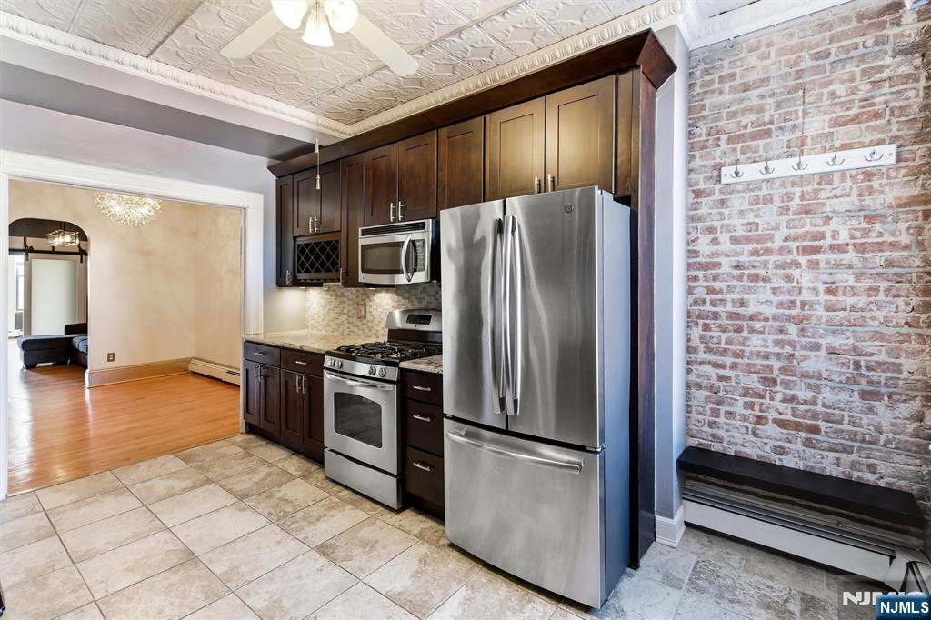 Step into timeless elegance with this beautifully renovated historic brownstone, perfectly situated in the heart of Hoboken. Centrally located and just moments from major transportation hubs, this residence combines classic charm with modern convenience. Inside, you'll find soaring ceilings, exposed brick accents, and original hardwood floors that highlight the home's character. The spacious kitchen features custom cabinetry offering abundant storage, granite countertops, room for a breakfast bar, and stainless steel appliances including a gas range, microwave, French door refrigerator, and dishwasher. The bathroom has been tastefully updated with custom subway tile, glass tile accents, and elegant molding details. Additional features include baseboard heating controlled by Nest, an in-unit washer and dryer, and three generously sized closets. Blending "old-world craftsmanship with contemporary design, this home showcases antique crown molding, tin ceilings, and modern barn doors and lighting fixtures. The HOA fee conveniently includes water, waste management, and common area maintenance. A rare Hoboken gem schedule your private viewing today!