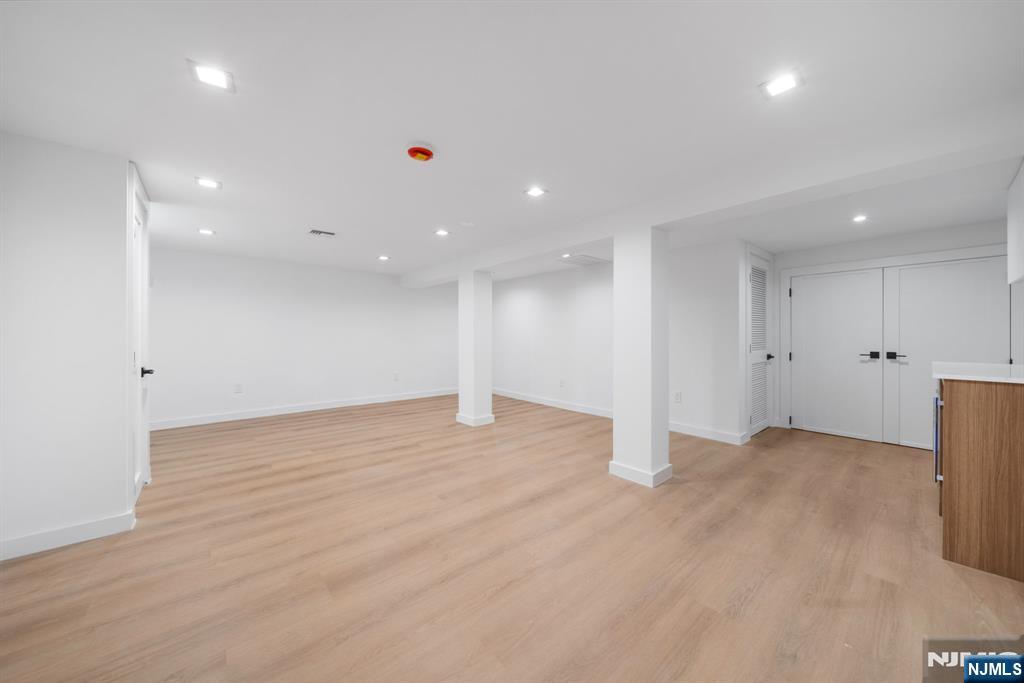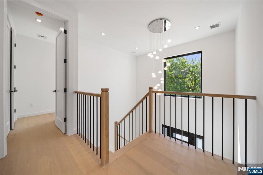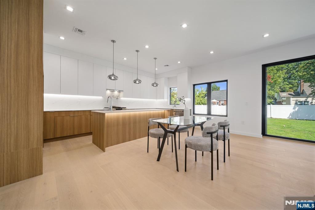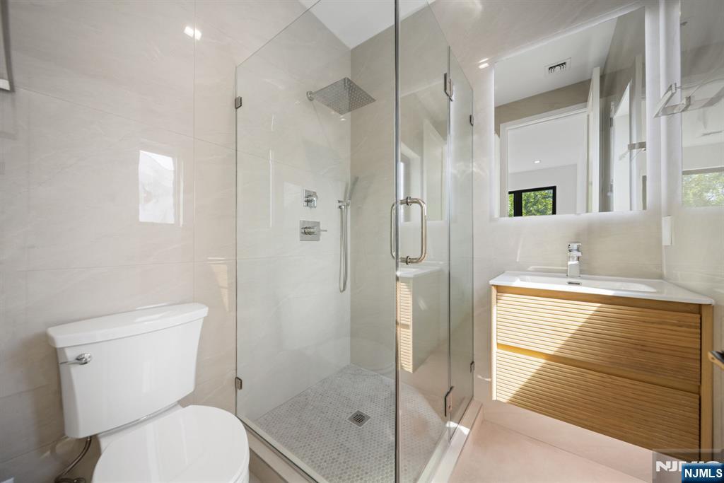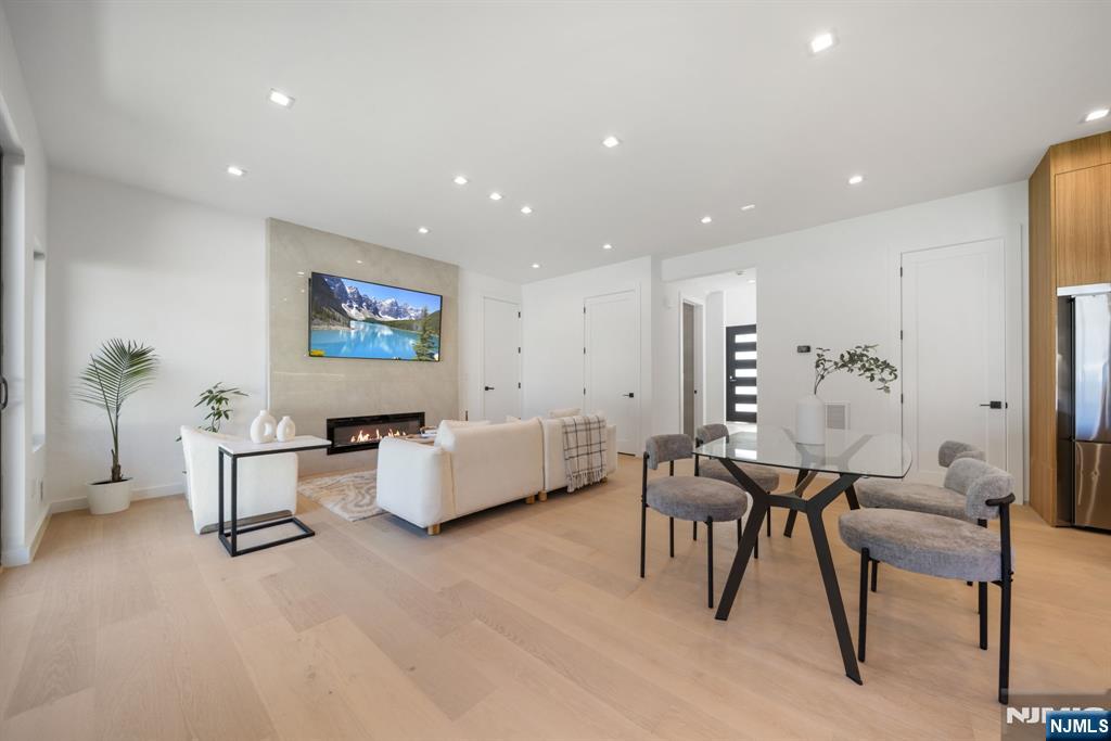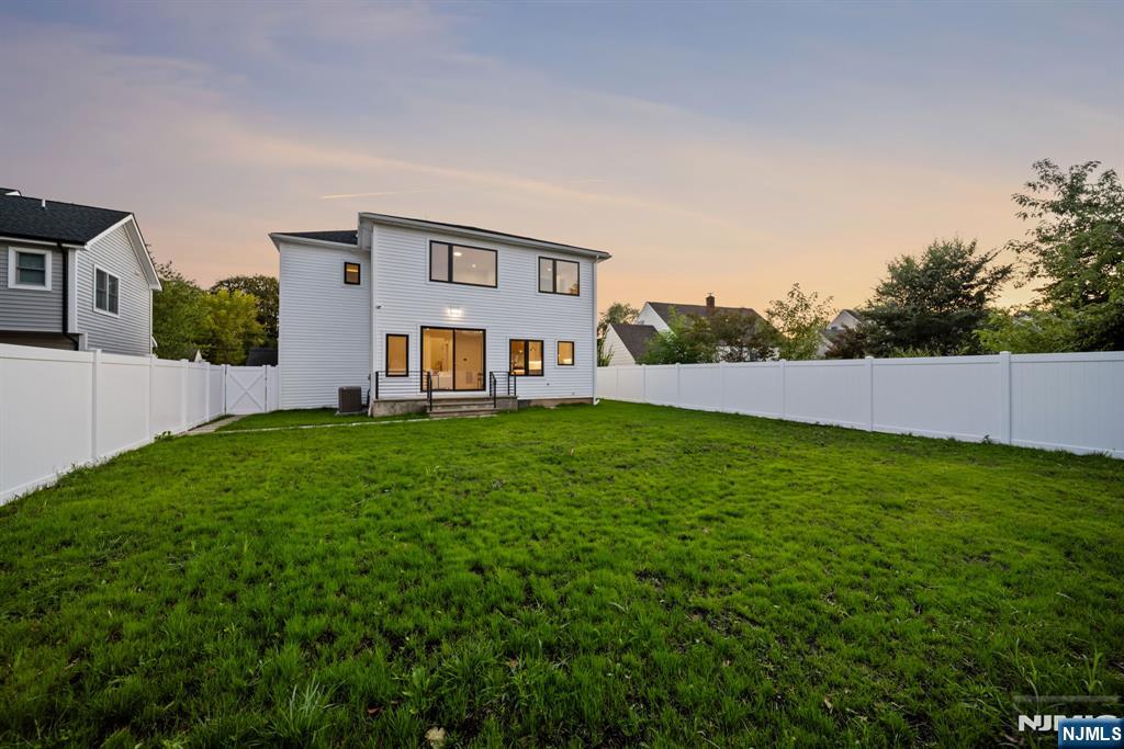 Experience the perfect blend of modern elegance and thoughtful design in this brand-new construction, built on an existing foundation. This home offers 5 beds, 5.5 baths, and a 1-car garage, highlighted by 7.5" white oak floors, a 2-story entry foyer with 9' ceilings, and modern rod iron staircase. The first floor features an open dining and living area with electric fireplace and custom TV wall, a bedroom with en suite bath, powder room, and customized closets. The chef’s kitchen is a true centerpiece with quartz countertops and backsplash, island with microwave drawer, and premium Fisher & Paykel + GE Cafe appliances. Upstairs, enjoy 4 beds and 3 baths, including a luxurious primary suite with spa-inspired bath featuring a free-standing tub and custom walk-in closet. A convenient laundry room with washer, dryer, and sink completes the second level. The finished basement offers a spacious family room and full bath with frameless glass shower. Bathrooms throughout include porcelain tile, frameless glass doors, and Kohler fixtures. Exterior highlights include a paver driveway with Belgian block edging, stepping stone walkway, fenced yard, multi-zone sprinkler system, and high-end entry door with accent lighting. Added comforts include a 75-gallon AO Smith water heater, 2-zone heating/cooling with smart thermostats, and surveillance cameras with TV monitor. Located in the heart of Fair Lawn, this home is the definition of modern luxury living!