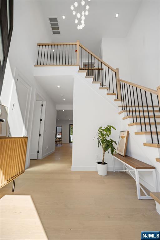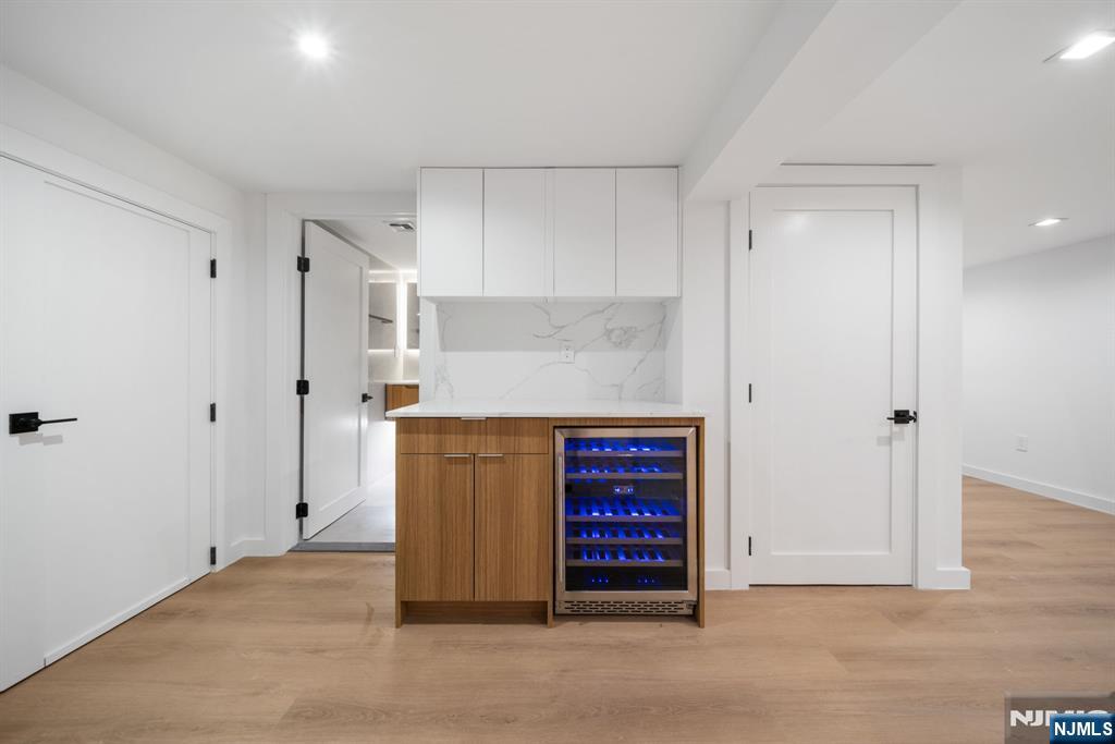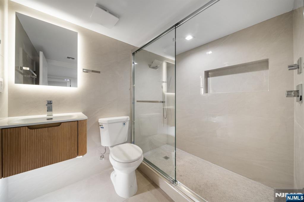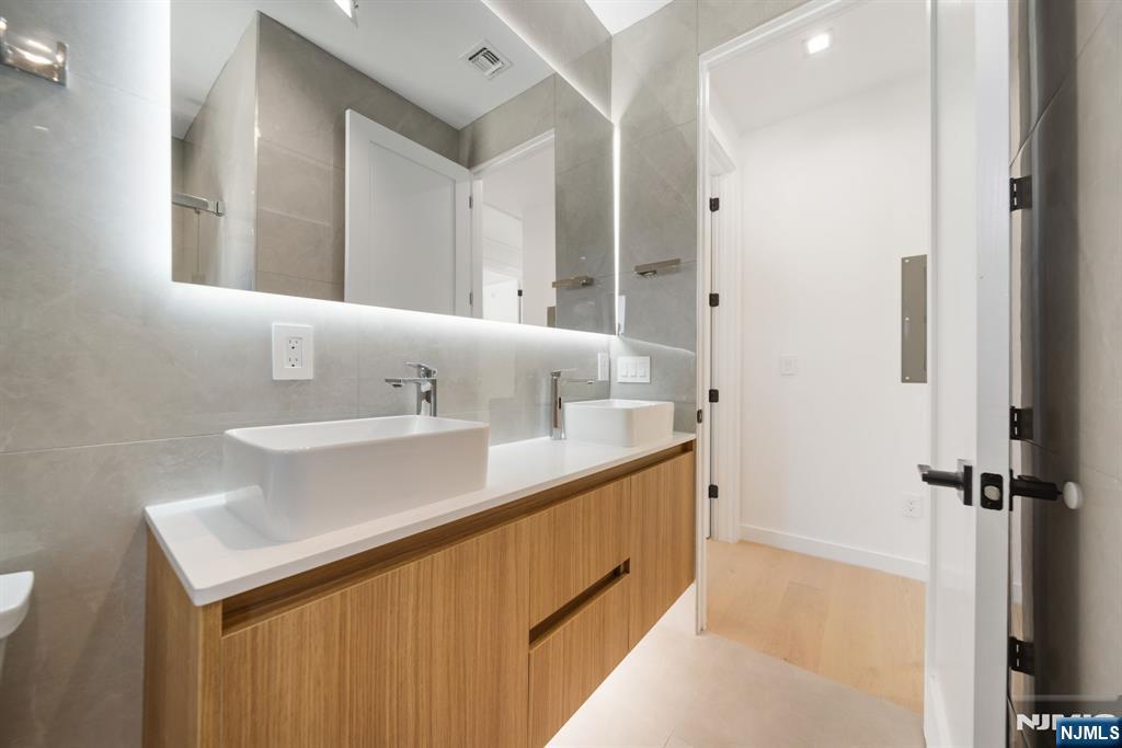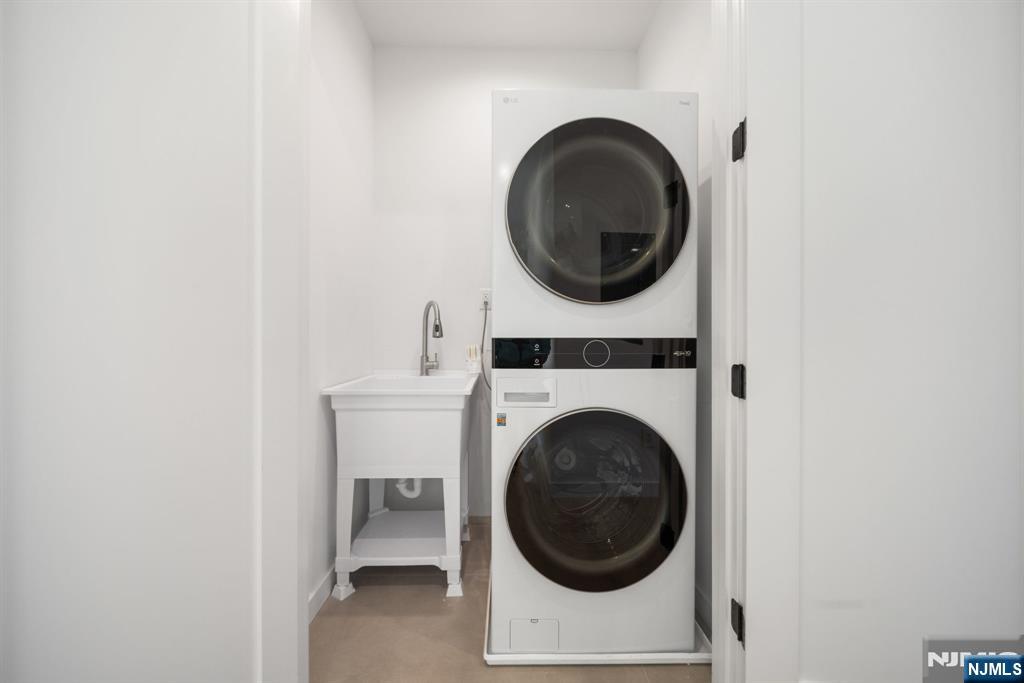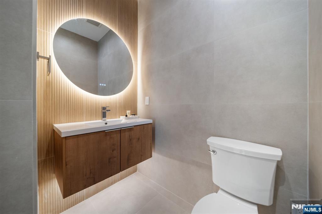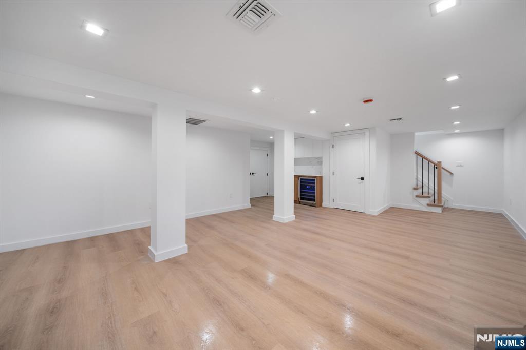 Experience the perfect blend of modern elegance and thoughtful design in this brand-new construction, built on an existing foundation. This home offers 5 beds, 5.5 baths, and a 1-car garage, highlighted by 7.5" white oak floors, a 2-story entry foyer with 9' ceilings, and modern rod iron staircase. The first floor features an open dining and living area with electric fireplace and custom TV wall, a bedroom with en suite bath, powder room, and customized closets. The chef’s kitchen is a true centerpiece with quartz countertops and backsplash, island with microwave drawer, and premium Fisher & Paykel + GE Cafe appliances. Upstairs, enjoy 4 beds and 3 baths, including a luxurious primary suite with spa-inspired bath featuring a free-standing tub and custom walk-in closet. A convenient laundry room with washer, dryer, and sink completes the second level. The finished basement offers a spacious family room and full bath with frameless glass shower. Bathrooms throughout include porcelain tile, frameless glass doors, and Kohler fixtures. Exterior highlights include a paver driveway with Belgian block edging, stepping stone walkway, fenced yard, multi-zone sprinkler system, and high-end entry door with accent lighting. Added comforts include a 75-gallon AO Smith water heater, 2-zone heating/cooling with smart thermostats, and surveillance cameras with TV monitor. Located in the heart of Fair Lawn, this home is the definition of modern luxury living!