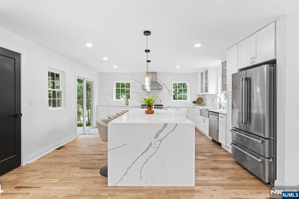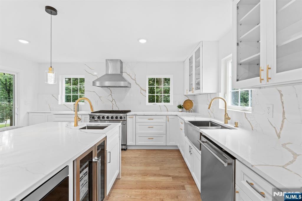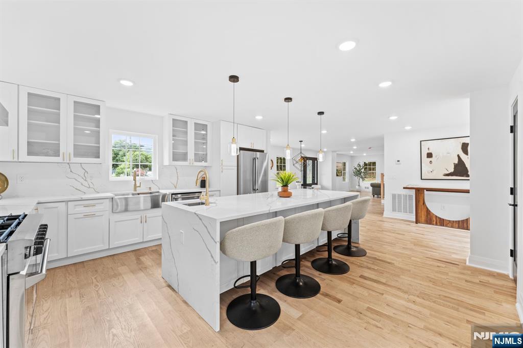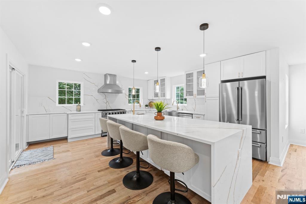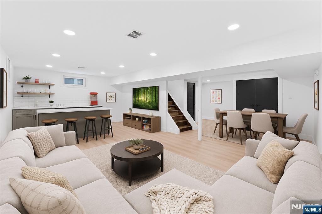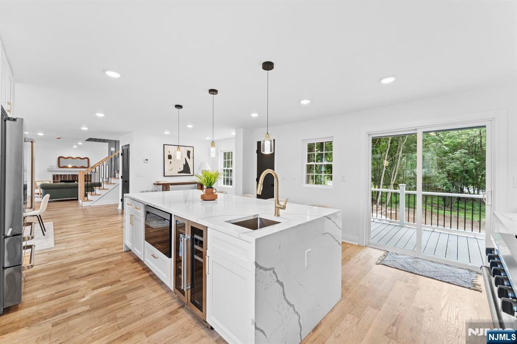 Experience refined living in this exceptional newer construction, perfectly positioned in one of New Jersey’s most desirable communities. Set on nearly a full acre, this residence delivers an ideal combination of peaceful suburban living and convenient access to the city. Across three impeccably finished levels, you’ll find five generous bedrooms and four-and-a-half bathrooms, including a luxurious primary suite complete with a spa-inspired bath. The main floor welcomes you with an open-concept design ideal for modern living, highlighted by a chef’s kitchen with crisp white quartz countertops, an expansive living room, elegant dining area, and a chic powder room. Upstairs, the primary suite is accompanied by two additional bedrooms and a full bath, while the top floor offers two more bedrooms and another bath  perfect for guests, a home office, or flexible living. The fully finished lower level is designed for entertainment, featuring a sleek dry bar and ample space to host gatherings or unwind in style.