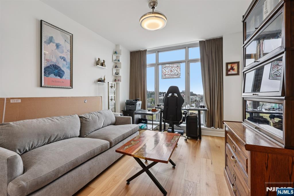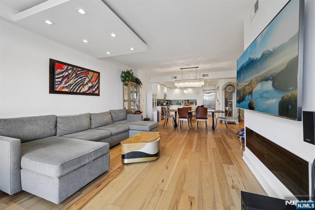 Team Braconi presents Waterfront living on the Hudson Gold Coast at its finest. Arrive through a glass-canopied porte-cochere to a full-service building with attention to detail. Inside, an open great living room showcases floor-to-ceiling windows, wide-plank hardwoods, recessed tray lighting, and seamless flow to a private balcony with skyline vistas. The sleek chef’s kitchen pairs crisp white cabinetry with quartz counters, an entertainer’s island with seating, stainless appliances, and a built-in wine fridge. The flexible third bedroom functions perfectly as a home office or guest room. The river-view primary suite spans the windowed facade like a panoramic photo and offers a calming retreat. A marble-clad bath features a soaking tub, dual vanity, and separate glass shower. Additional perks include abundant storage, modern fixtures, and a true indoor-outdoor feel. Moments to NYC transit, waterfront parks, dining, and shopping—this residence delivers the convenience of condo living with the polish of a boutique hotel as you indulge in over 40,000 sq. ft. of world-class amenities, including a spa, fitness center, indoor and outdoor pools, cinema room, golf simulator, playroom, executive lounge, plus two guest suites. 24/7 doorman and concierge, valet parking, and a private shuttle to NY Waterway ferry service. At The Watermark, luxury meets effortless living—where impeccable design and five-star amenities redefine waterfront elegance.