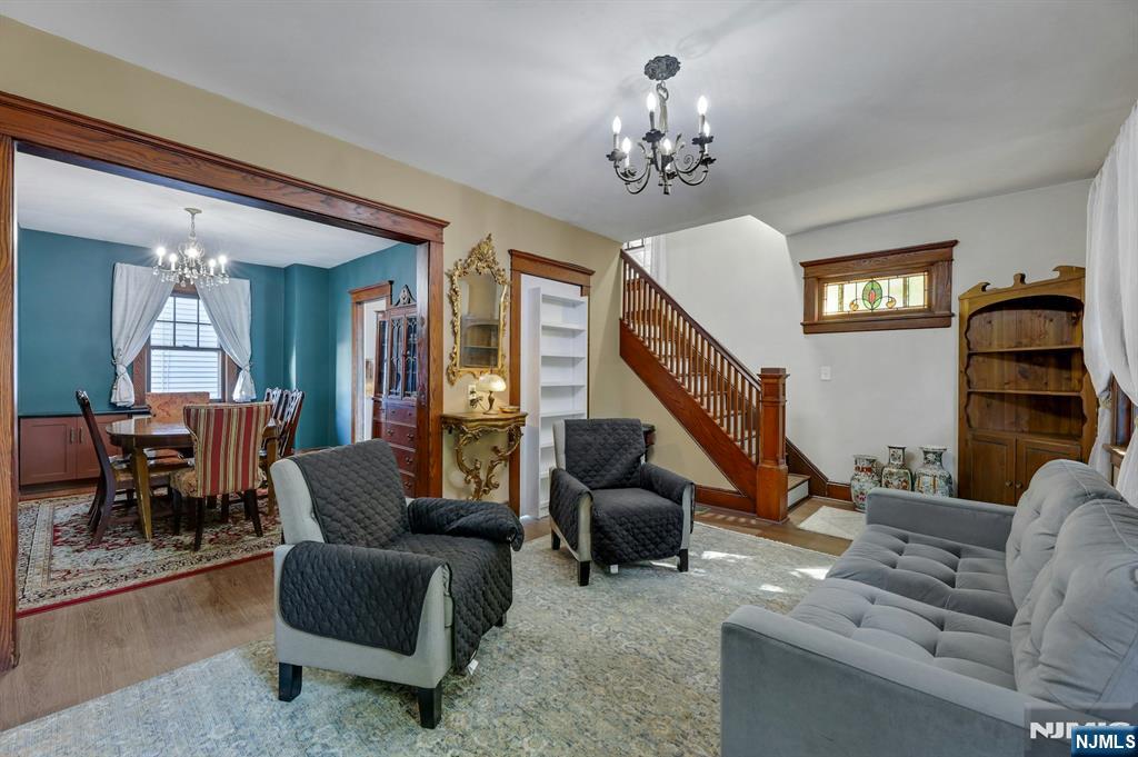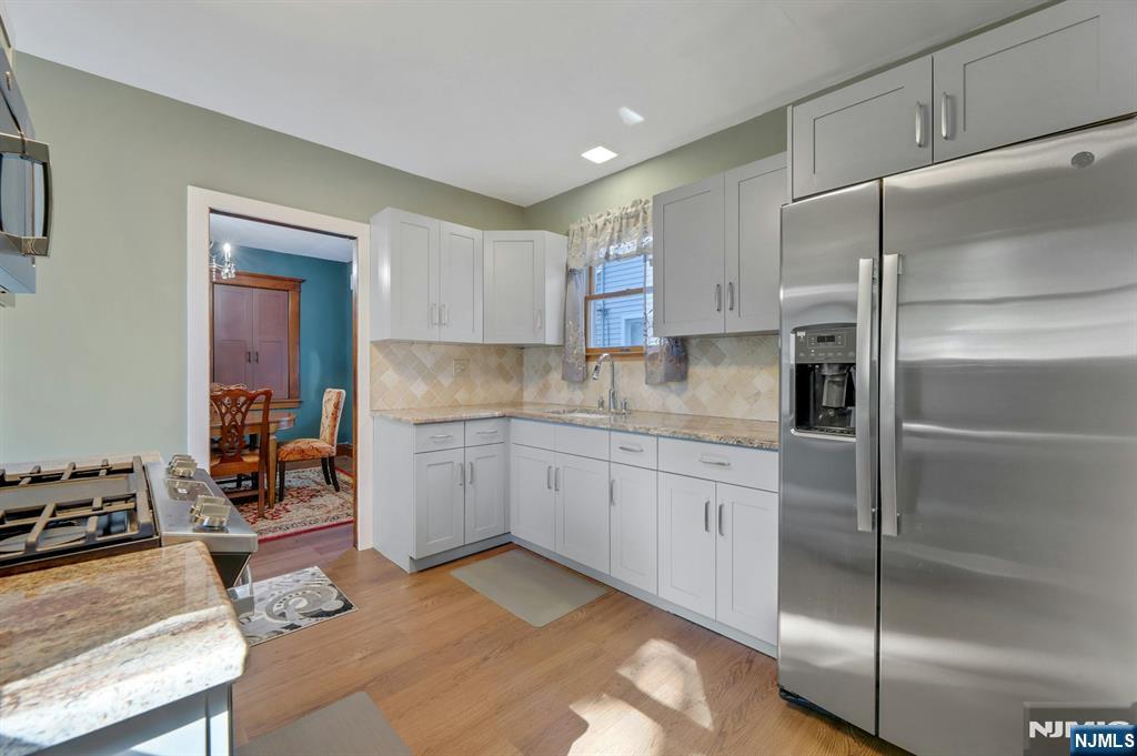 Welcome home to this beautiful Colonial in the desirable Boro of Dumont featuring enclosed porch, living room w/custom stained-glass window at the staircase landing, dining room w/built-in wine storage & updated eat-in kitchen w/granite counters, stainless steel appliances & unfinished pantry/mudroom area w/access to the backyard (potential powder room). Vinyl plank flooring throughout. Upstairs offers 2 bedrooms & full bath. Finished basement w/laundry, utility, sitting area & bonus room. Backyard w/paver patio, deep yard & 1-car garage w/subpanel, lighting & generator hookup. Features include paver driveway, 200-amp electric, new HVAC, gas heat, vinyl siding & roof approx. 6 yrs. Expansion potential for additional bedroom & bath! Conveniently located near Downtown Dumont, NYC bus, parks & schools.