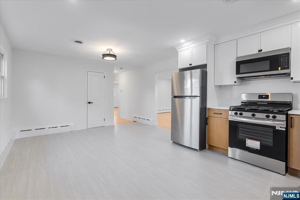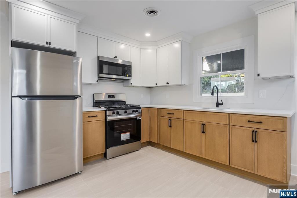 Welcome Home! This All Brick Two Family Home on Oversized Lot in Desirable Section of Lodi has SO much to offer. This Completely Renovated 1st Floor / 2 Bedroom Unit features Living Room with Refinished hardwood floors, recessed lighting, new large windows w/ tons of natural light, & new front door. Kitchen & Dining Room have new Tile Flooring, recessed lighting and have a completely open concept. Kitchen also has brand new w/ custom white oak/white cabinets, quartz countertop & backsplash, new stainless steel appliances, new window & exterior door to side entrance. Large full bathroom offers tub/shower w/ glass enclosure, new tile flooring, vanity, toilet, mirror, lighting. Both Bedrooms are HUGE & have Oversized Closets, refinished hardwood floors, & recessed lighting. Unit has Central Air, its own Washer & Dryer on ground level. Two Off Street Parking Spots (in Driveway), Grass Area, Storage shed, New Roof, New Windows, New Gutters, & New Landscaping. GAS & ELECTRIC are INCLUDED in the Rent!! Immaculate Home/Unit!! DO NOT MISS!!!!