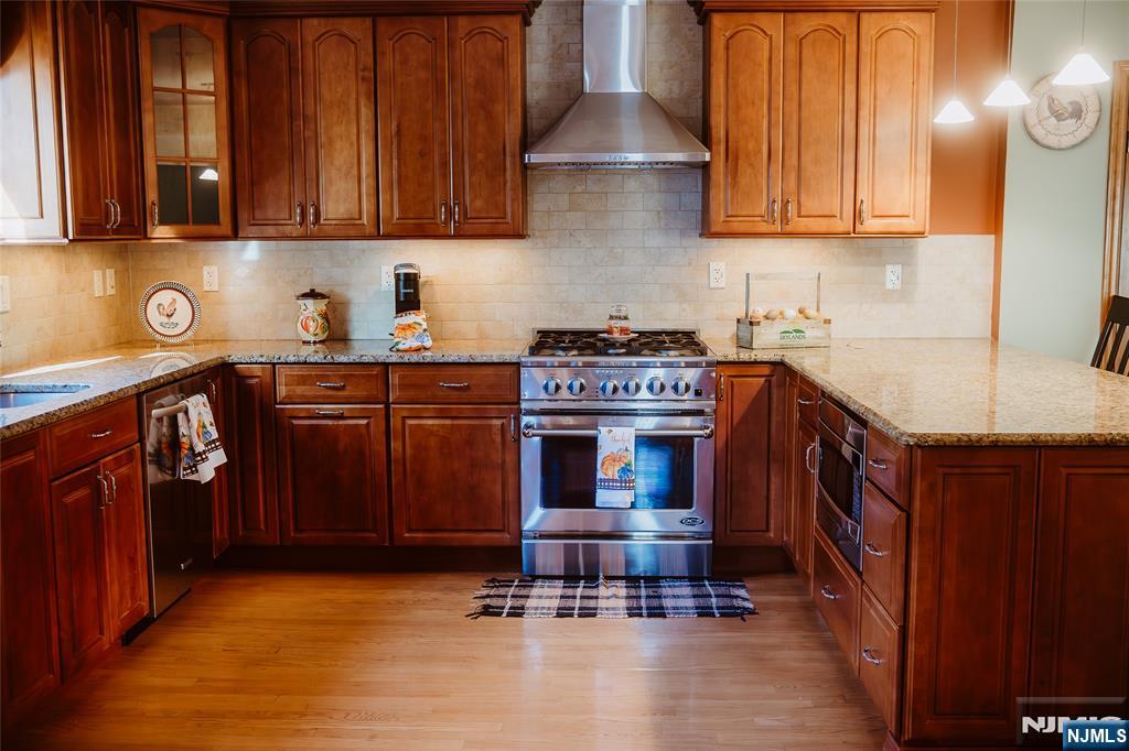 Beautiful, well maintained renovated Colonial on oversized lot (56 X 110) which shows pride of ownership. Features: Entrance Door w/ stained glass. 1st Flr: Opened Floor Plan, Ent Hall Closet, Powder Rm w/ Tile, MEIK w/ Granite Top Peninsula, SS Appliances (DSC Stove, Oven with Hood), Granite Counter Tops, Tiled Backsplash, plenty of cherry wood Cabinets. French Doors to Covered Patio, beautiful, spacious, professionally landscaped, fenced. backyard,. Dining Rm area off Kit, LR Area w/ large Bay Window w/ window seat. Hardwood floors as installed, natural wood trim as installed, recessed lighting (hi-hats) as installed on 1st. 2nd Flr: MBR/Ensuite w/ Master Bath, tiled, granite tops, double sinks. His/Her walk-in closets. 2 additional BRs, Full Bath w/ tile. 3rd Flr: Attic with access via steps from 2nd BR, Attic flooring as installed, storage, A/C. Basement is full, unfinished, W/D, sump pump & french drains, exit via Bilco door to backyard. Gas/Central Air/Forced Air. Wired for Security. Exterior: vinyl/some stone front, roof replaced approx 2009, in-ground sprinkler system, parking for 4+ cars in paved driveway. Must See! Open House 10/26/2025 2-4 PM