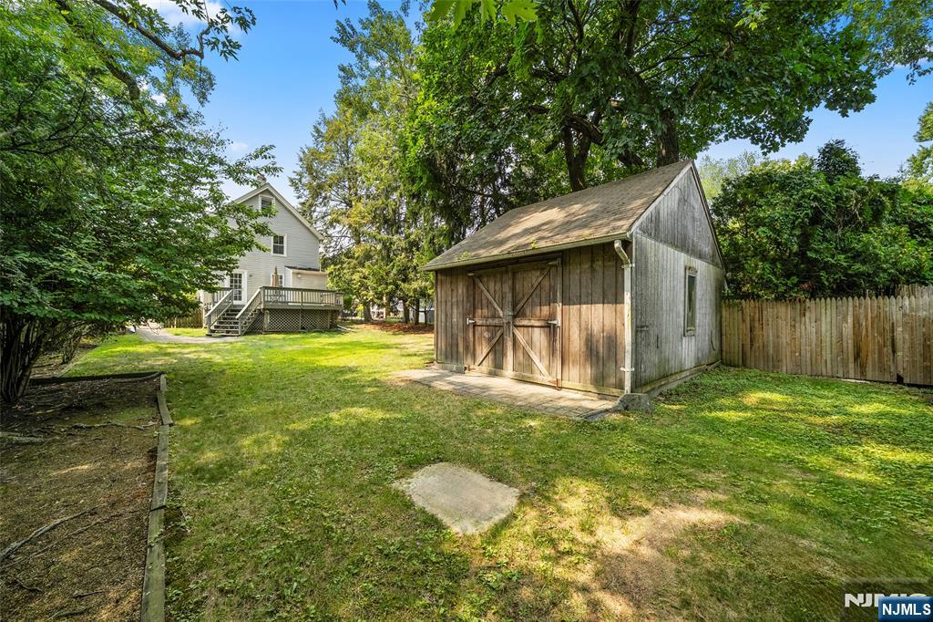 Located on a quiet residential street, formerly known as Old Closter Dock Road  not on a main road. This charming colonial home with a classic lemonade porch overlooks a peaceful street and sits on a deep 50 x 150 lot. Inside, you’ll find a welcoming living room and dining room, a full bathroom, and a modern eat-in kitchen that opens to a large deck through glass doors  perfect for entertaining or relaxing in the generous, quiet backyard. Enjoy convenient features like a BBQ hooked up to a gas line and a large shed for storing all your yard tools and more.The second floor offers 3 bedrooms and another full bathroom, plus a private third-floor loft and a renovated finished basement. Conveniently close to vibrant downtown shops and dining, with easy access to NYC via a nearby bus stop. All within a welcoming community known for its excellent schools.
