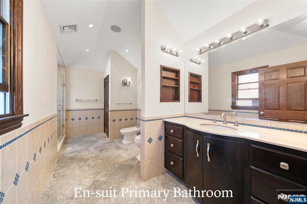 Spacious 2004-Built Colonial in the Heart of Englewood! Welcome to this beautifully maintained 4-bedroom, 2.5-bath Colonial, offering over 3,500 sq.ft. of total living space (approx. 2,768 sq.ft. above ground) on desirable Phelps Avenue. The main level features a sun-filled open layout with an inviting living room and a French-doored office, gleaming hardwood floors, and a large chef’s kitchen with center island, granite countertops, and stainless steel appliances, along with a formal dining area. The bright family room with a wood-burning stove and skylights flows seamlessly to the private backyard ,perfect for entertaining. Upstairs, the primary suite boasts vaulted ceilings, skylights, a walk-in closet, and an ensuite full bath. The second spacious bedroom features a stone fireplace, custom built-ins, and arched windows that fill the room with natural light. Two additional well-sized bedrooms, a full bathroom, and a conveniently located second-floor laundry complete the level. The finished basement offers a large recreation or home theater area with a fireplace. Enjoy outdoor living in the fenced backyard with a deck and mature trees. Located within walking distance to parks, house of worship and NYC transportation, this home perfectly combines space, character, and functionality in one of Englewood’s most sought-after neighborhoods.