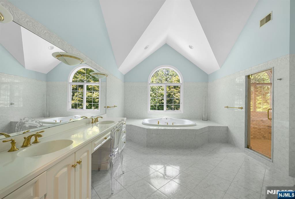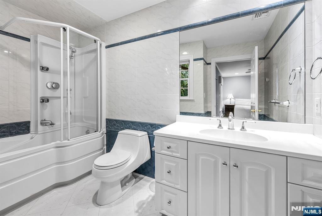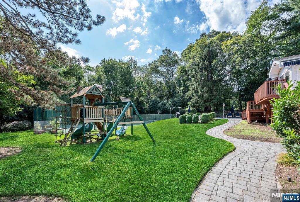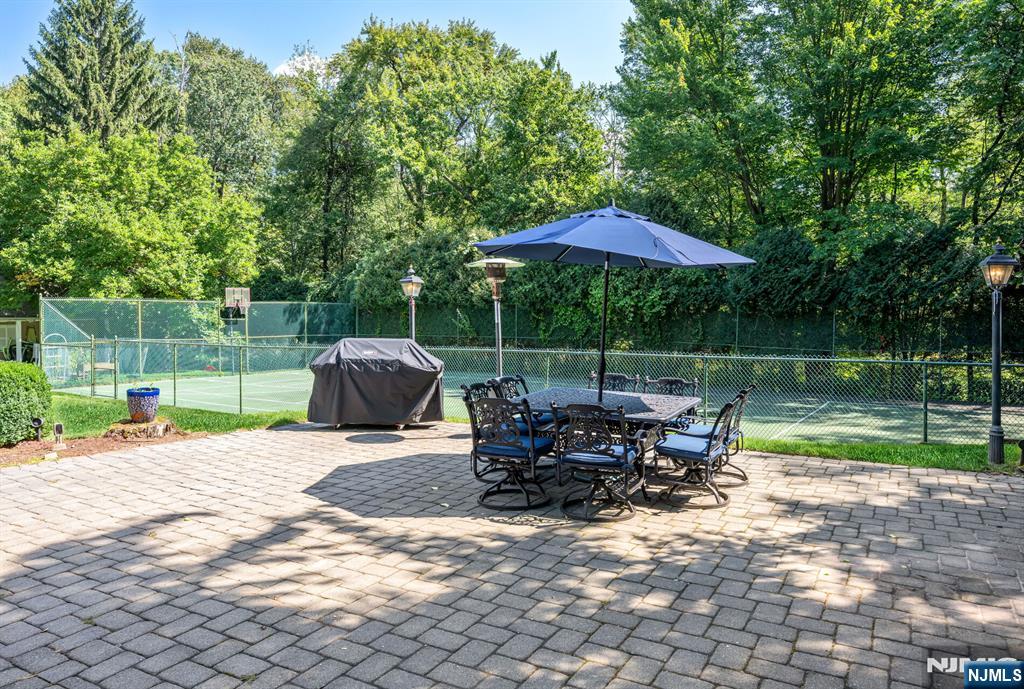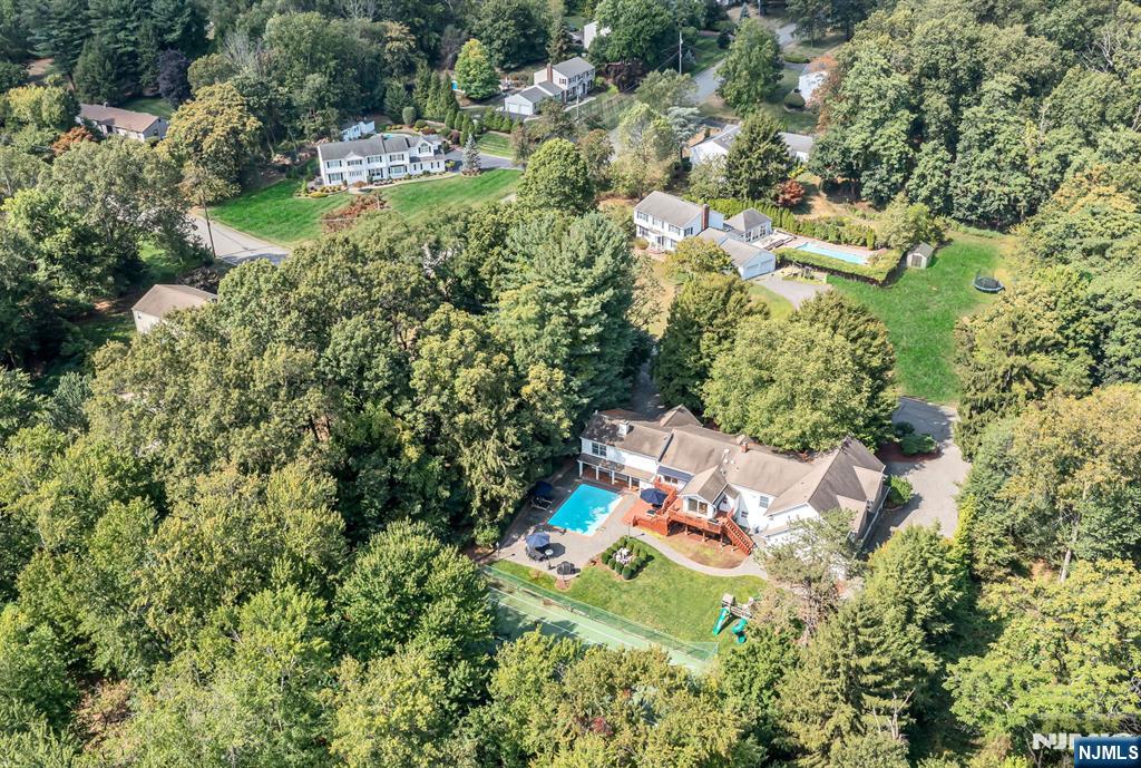 Welcome to this elegant 5-bedroom, 4-full & 3-half bathroom home, perfectly situated on a private 1.04-acre lot on a cul-de-sac.. With 5,347 square feet of living space, this residence seamlessly combines luxury with comfort. The heart of the home is a beautifully renovated kitchen, with incredible views of the pool and tennis court. The formal dining room offers a sophisticated setting for entertaining. Relax in the media/den area, which features a stylish wet bar perfect for hosting guests. The primary suite offers a luxurious retreat, complete with two spacious walk-in closets and an updated shower. Three of the additional bedrooms are en-suites, providing convenience and privacy, while another room can be used as a bedroom or a home office. Outside, enjoy a private pool and tennis court, offering a private oasis with ample opportunities for leisure and recreation. The serene setting is enhanced by the amenities and the attached four-car heated garage. Experience comfortable and elegant living in this distinguished Mahwah home, right on the boarder of Allendale.