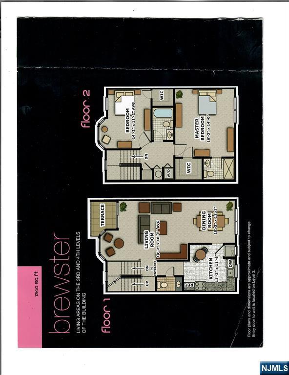 Newly updated 2-level condo. Brewster unit (1,340 sf) with 1 covered parking space. Entire apartment freshly painted. Newly installed hardwood floors throughout both levels. Central air. 9' ceiling on lower level. Available to occupy by 11/1/25. Maximum occupancy: 4. Living Rm: 14'2x18'6, Dining Rm: 10'3x11'1, Eat-in Kitchen: 11'2x11'6, Bedrooms: 14'2x11'2 & 16'2x14'. Refrigerator, gas range, dishwasher, washer & dryer included. Unit is near the river and has partial river views. No loud music & no smoking in or near the apartment. A small fully trained pet under 40 pounds may be considered for $50 a month as additional pet rent. Tenant pays all utilities including water & sewer. Good credit required. Flood insurance covered by HOA fees. Security Deposit:1.5 months. $250 move-in fee, $200 moving deposit & renter's insurance required by condo association. Balconies in entire community cannot be opened or used. Access to gym/clubhouse/pool & shuttle to path requires annual membership enrollment every November with fees. Walk to Path Station in 12-15 minutes. Close to Newark Light Rail, NJIT, Rutgers, NJPAC, Prudential Center & Red Bull Stadium. Convenient to Turnpike, Parkway, Rt. 280 & Rt. 21.