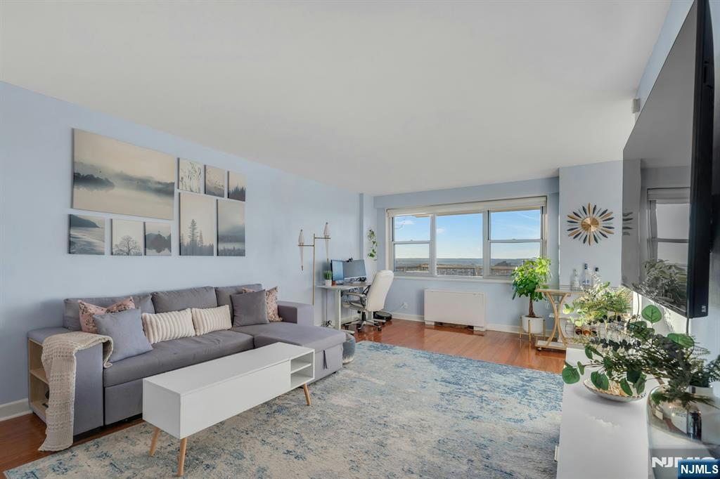 Live above it all in this 21st-floor corner residence with panoramic, limitless views stretching from the American Dream Mall to the surrounding mountainsâ€â€while enjoying minimal street noise. Priced to sell, this deluxe two-bedroom home with a private terrace in the highly sought-after The Versailles combines sophisticated updates with an unbeatable location. The home features a well-proportioned layout and modern upgrades throughout, including new wood flooring and an upgraded kitchen with a brand-new tile backsplash, tile flooring, and high-end stainless steel appliances. The kitchen includes a Samsung Smart Refrigerator with interior camera, built-in screen, integrated speaker, and AI features, along with a new Samsung Dishwasher and energy-efficient GE Microwave. The primary bedroom offers partial Manhattan and Hudson River views, creating a serene retreat with cityscape charm. Residents enjoy full-service luxury amenities, including an outdoor pool, BBQ area, fully equipped gym, laundry facilities, and 24/7 security. The prime location provides easy access to NYC via buses, ferries, and the light rail, and is near Whole Foods, Trader Joe’s, Mitsuwa Marketplace, parks, restaurants, and shopping. Monthly maintenance covers real estate taxes, gas, electric, hot and cold water, A/C, and all amenities. Parking rates are $100–$130/month, depending on garage location. Subject to board approval.