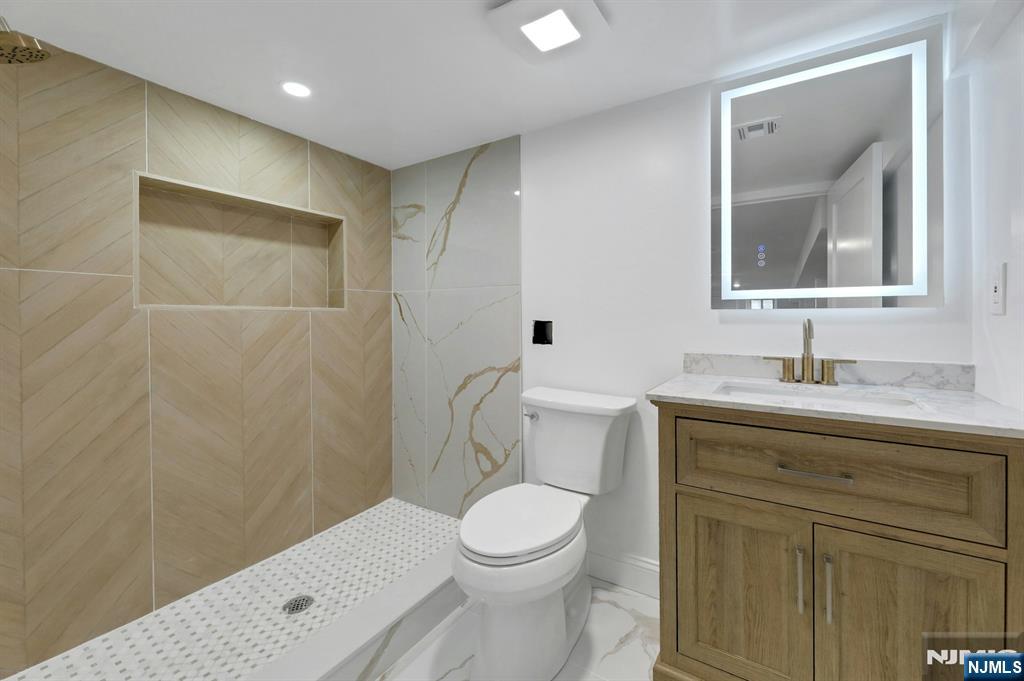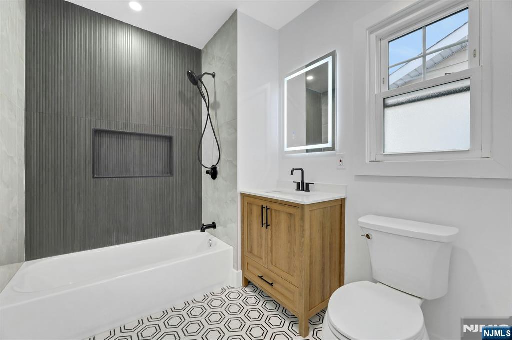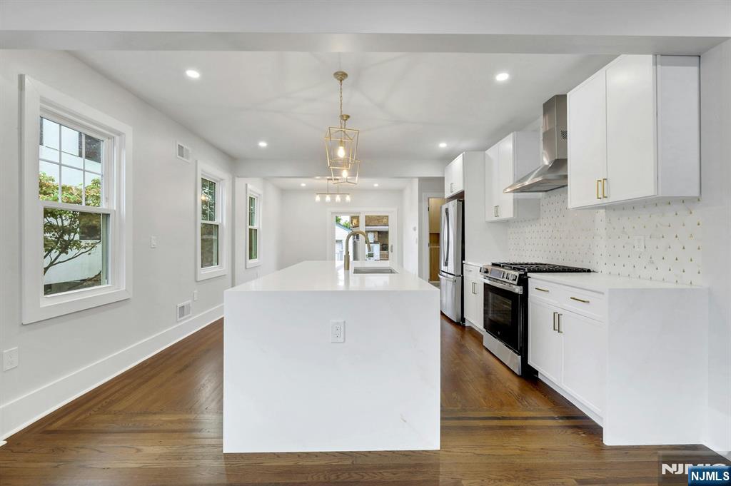 This stunning south facing home is renovated from top to bottom in a prime location, in the heart of Ridgefield situated near major transportation and shopping. The spacious layout features living room, kitchen, dining area and full bath on the first floor. The gourmet kitchen is a chef’s dream, boasting premium stainless-steel appliances, Quartz countertops, and waterfall center island. Hardwood floors throughout. Step right outside the dining room to a private yard with a brand-new paved patio. The second floor has 3 bedrooms, full bath and laundry room. Choose to enter from the side door for privacy and fun in the fully finished basement and full bath. Perfect space for an extended family provides ample room for relaxation and recreation. And an added bonus to this house is a finished attic. Don’t miss this opportunity to be the first to own this totally renovated home with 4 beautifully finished levels.