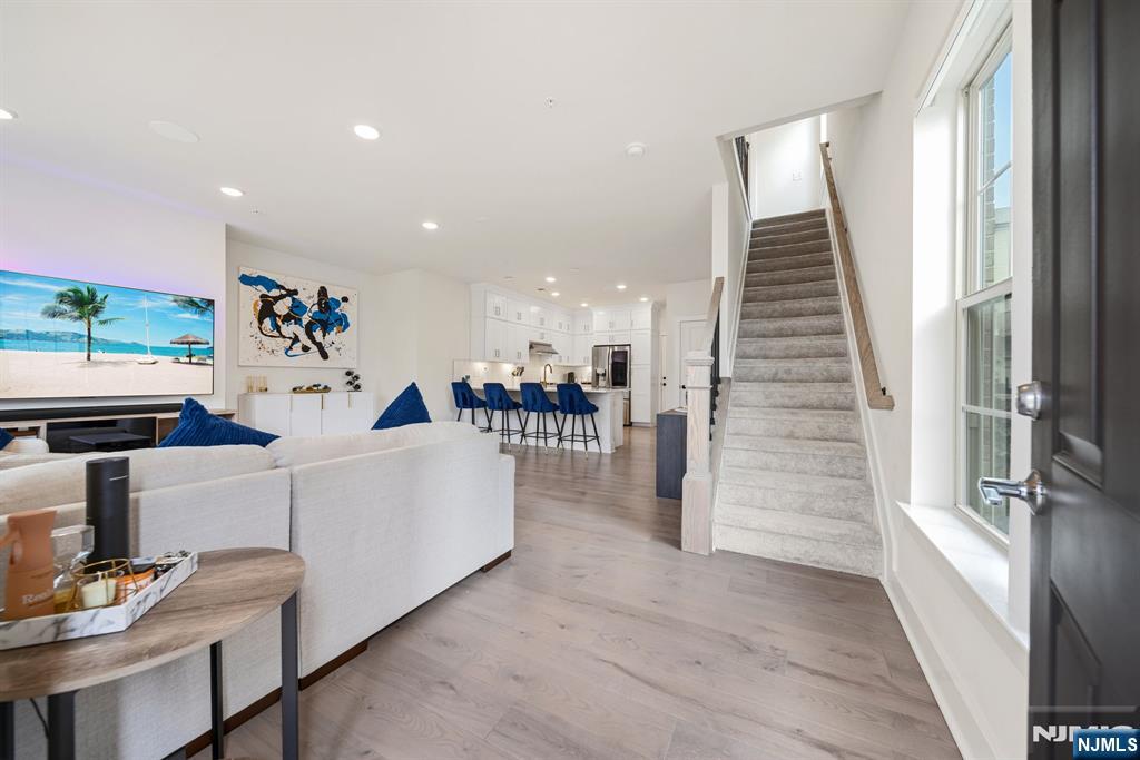 Call Mital Kataria @ 732.789.0670 to schedule a tour. Experience a convenient lifestyle at one of the most sought after communities in Bergen county. Step into your beautiful END UNIT townhome to experience a bright & spacious interior featuring open floor plan. The home built in 2022 offers tax savings with TAX ABATEMENT in place until 2027. The home is tastefully upgraded on all levels featuring 2 generous size bedrms, 3 full baths with 2 car parking. Main floor features open modern kitchen, dining / living area with MANY WINDOWS, full bath, a sun-filled living room. Kitchen offers KITCHEN AID Gourmet appliances, Quartz countertop, backsplash, Dishwasher, upgraded faucet, under cabinet lights and much more. Head upstairs to Master bedrm which offers a walk-in closets. Master bath offers dual vanity, standing shower, linen closet and more. Spacious guest bedroom w/ full bath, laundry, utility room completes this level. Conveniently Located From NJ Transit Train & Bus Stops. Bonus Features: Double stacked kitchen cabinets, Under cabinet Lights, Garbage Disposal, LG refrigerator w/ craft ice maker NEST thermostat & door bell, prewire for ceiling speakers in kitchen, living, Master bed and bathroom, Hunter Douglas automated blinds on Main level and Master Bed with remote control + app, Smart light switches in MB, recessed lights through out the home and much more.