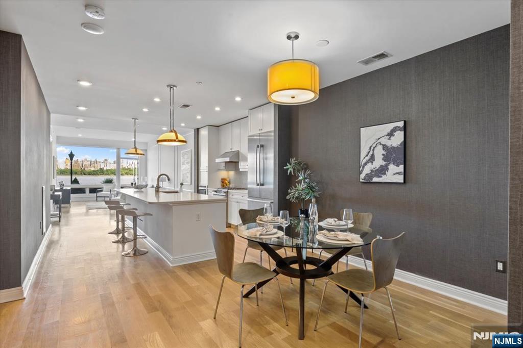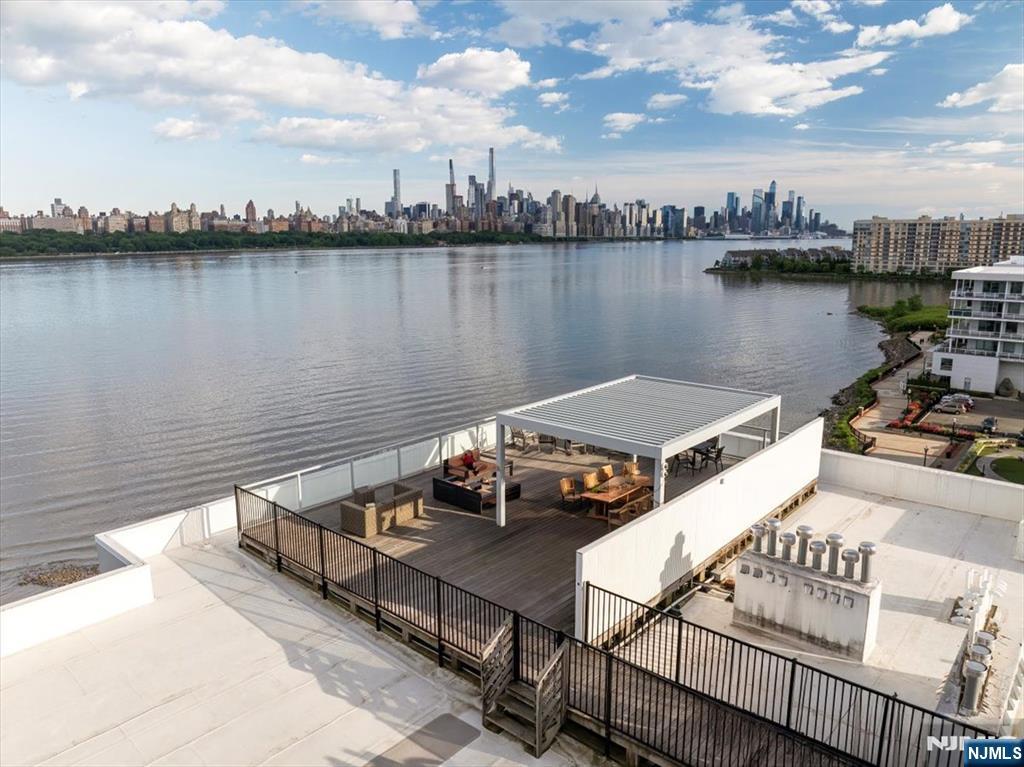 This is a RARE, UNIQUE find! Explore the VIRTUAL TOUR! Differentiators: ~1,467 sqft with UNOBSTRUCTED waterfront view, large terrace, 2 assigned parking spots, 3 bus routes ( (158, 159R, 156R) to Port Authority, 10 minutes building shuttle to light rail and ferry. Welcome to The Pearl, Edgewater's premier luxury building. Enjoy an expansive living space bathed in natural light from floor-to-ceiling windows, perfectly framing your private, unobstructed Manhattan skyline view. The huge private balcony extends your living area, ideal for dining or simply soaking in the vistas. The gourmet kitchen boasts high-end Bosch appliances, sleek Caesarstone countertops, and custom cabinetry. Residents of The Pearl enjoy unparalleled amenities: a fitness center, outdoor pool, resident lounge, skyline rooftop, and 24/7 concierge. Commuting is a breeze with The Pearl's shuttle to the NY Waterway Ferry (8 min to Midtown), plus easy access to three bus routes (158, 159R, 156R) to Port Authority and Hudson Bergen Light Rail. This highly sought-after unit includes two assigned parking spots. Edgewater thrives with everyday conveniences like Whole Foods, Trader Joe's, and Mitsuwa, plus diverse dining. Its proximity to Fort Lee expands shopping and culinary options even further. Don't miss this extraordinary chance for luxury, convenience, and an awe-inspiring view!