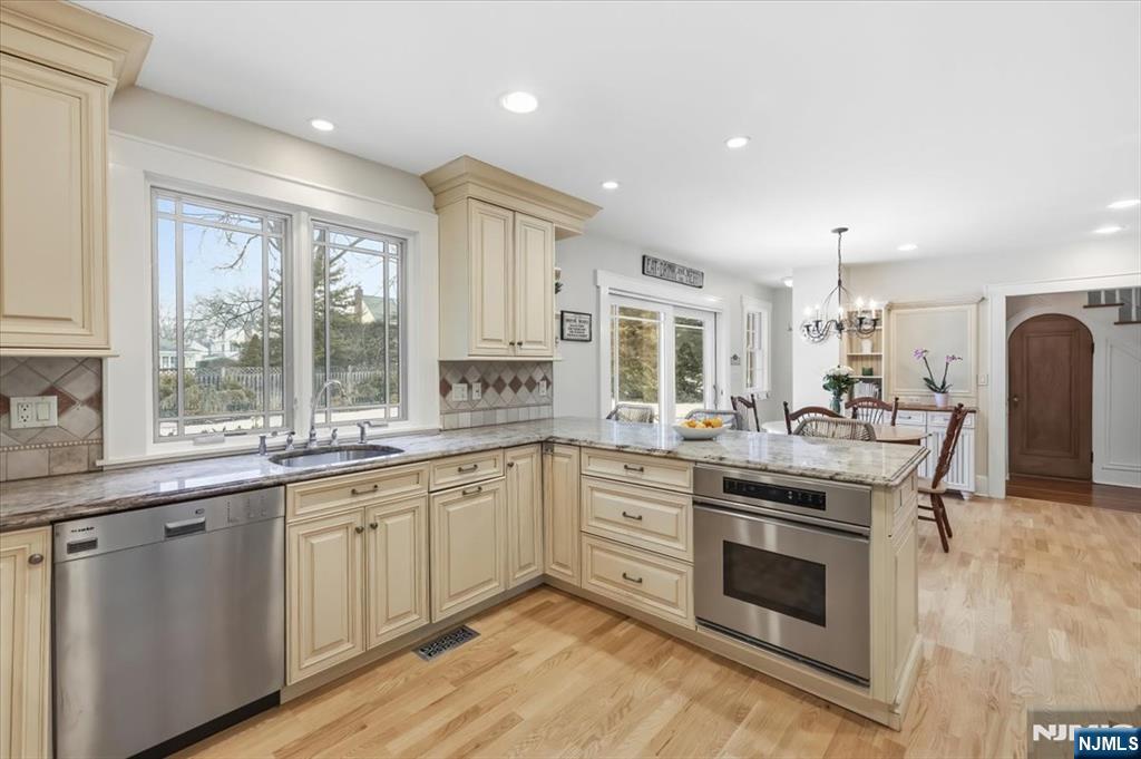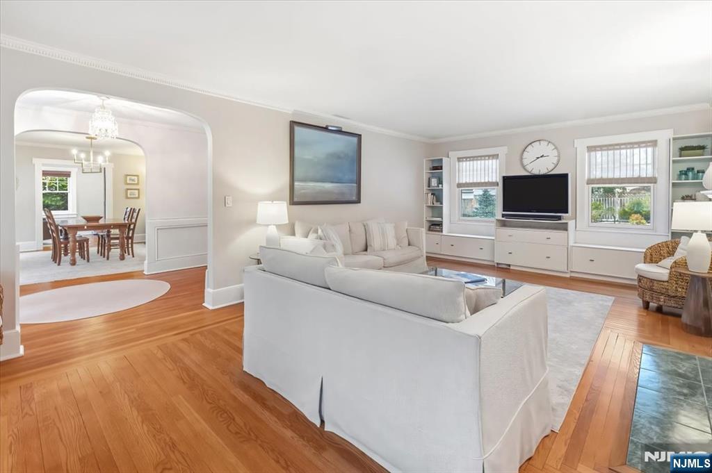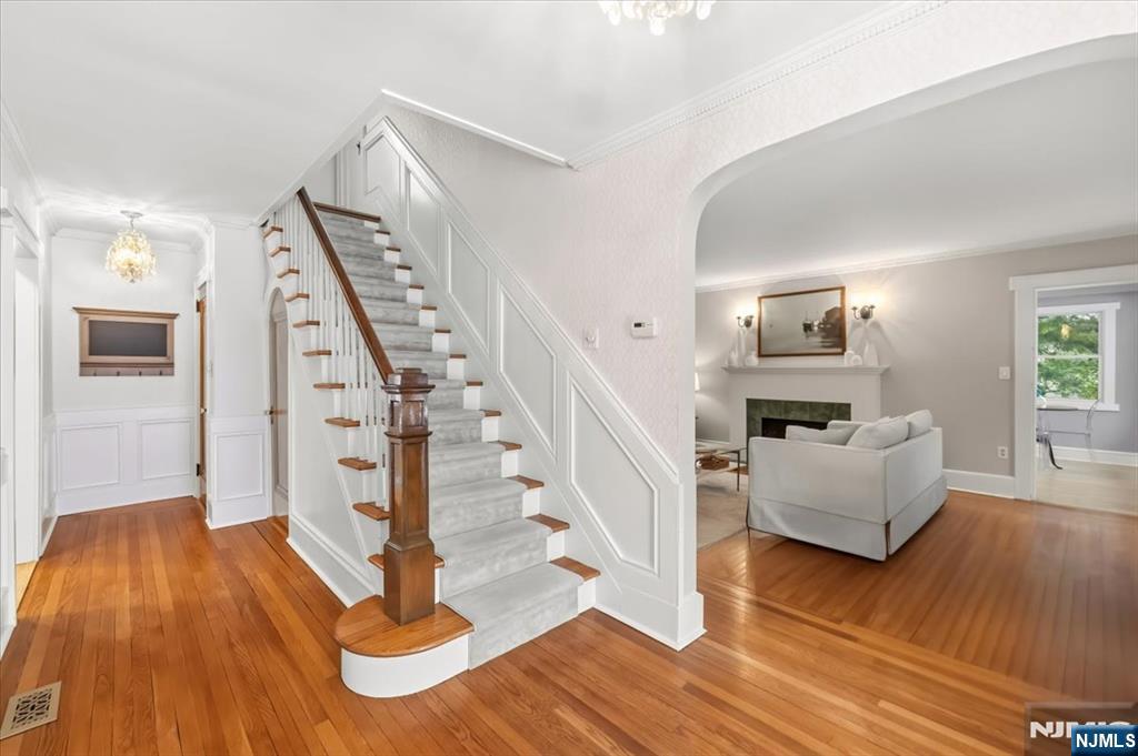 LOCATION! Don’t miss this beautifully updated Center Hall Colonial on one of Ridgewood’s most sought-after streets. Blending timeless charm with modern updates, this home features high ceilings, natural woodwork, and a classic center-hall layout with a welcoming entry highlighted by raised-panel detailing. The formal living room is a sun-filled space with abundant natural light, centered around a wood-burning fireplace, offering an elegant yet comfortable setting for everyday living and gatherings. The modern eat-in kitchen features a spacious layout with room for casual dining, refinished floors, built-ins, and a bright, inviting atmosphere. Ideally positioned off the formal dining room, it offers seamless flow for entertaining and daily living. A bright sunroom provides additional living space. The fully finished basement adds versatility and includes a newly added bathroom. Interior updates include a freshly painted first floor, wallpapered entryway, new window treatments, updated electrical panel, and new water heater. The exterior features a classic masonry stucco façade, new front and garage doors, Pella windows, paver front path, and rear walkway. Ideally located near NYC transportation, top-rated schools, parks, and downtown Ridgewood, this home offers the perfect blend of character, comfort, and convenience. Contact Jeff Feagles at (201) 803-9624.