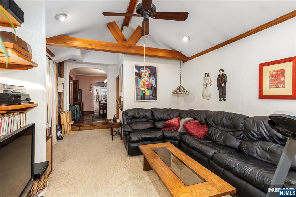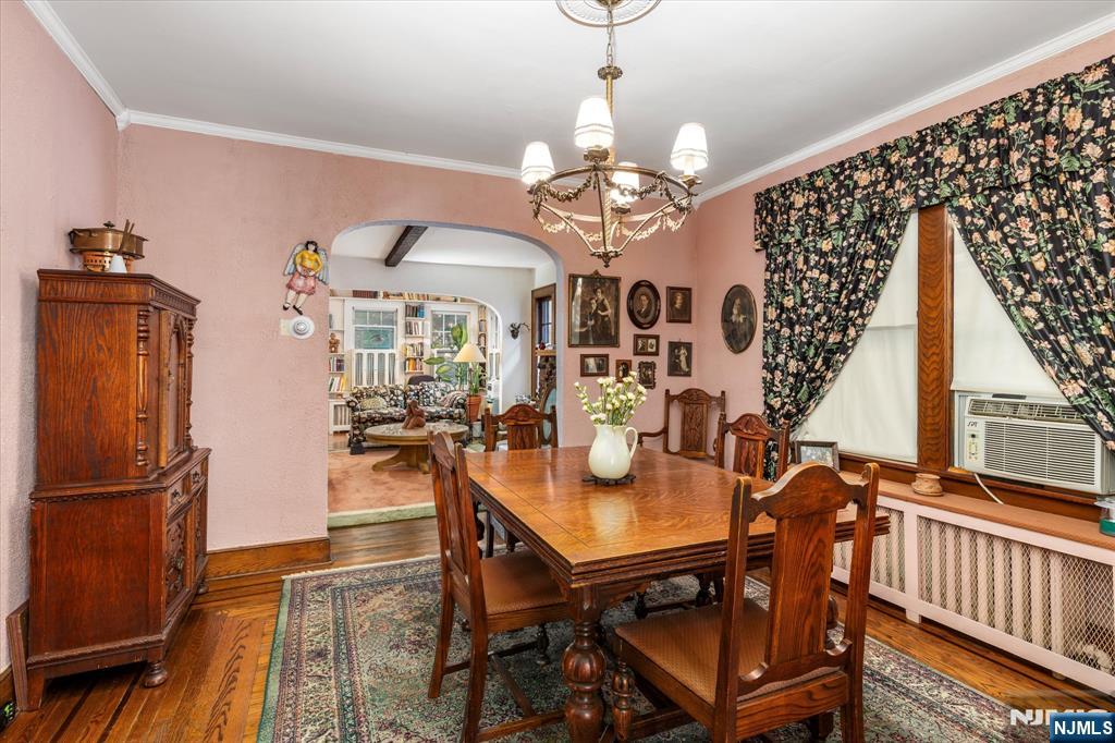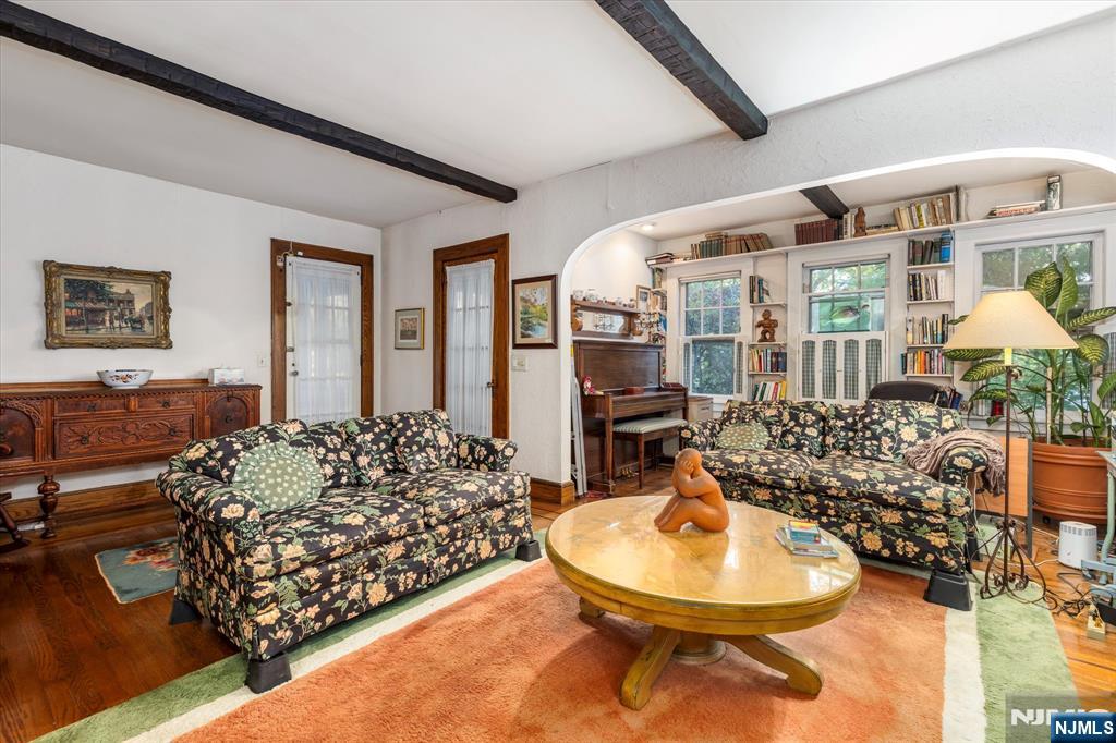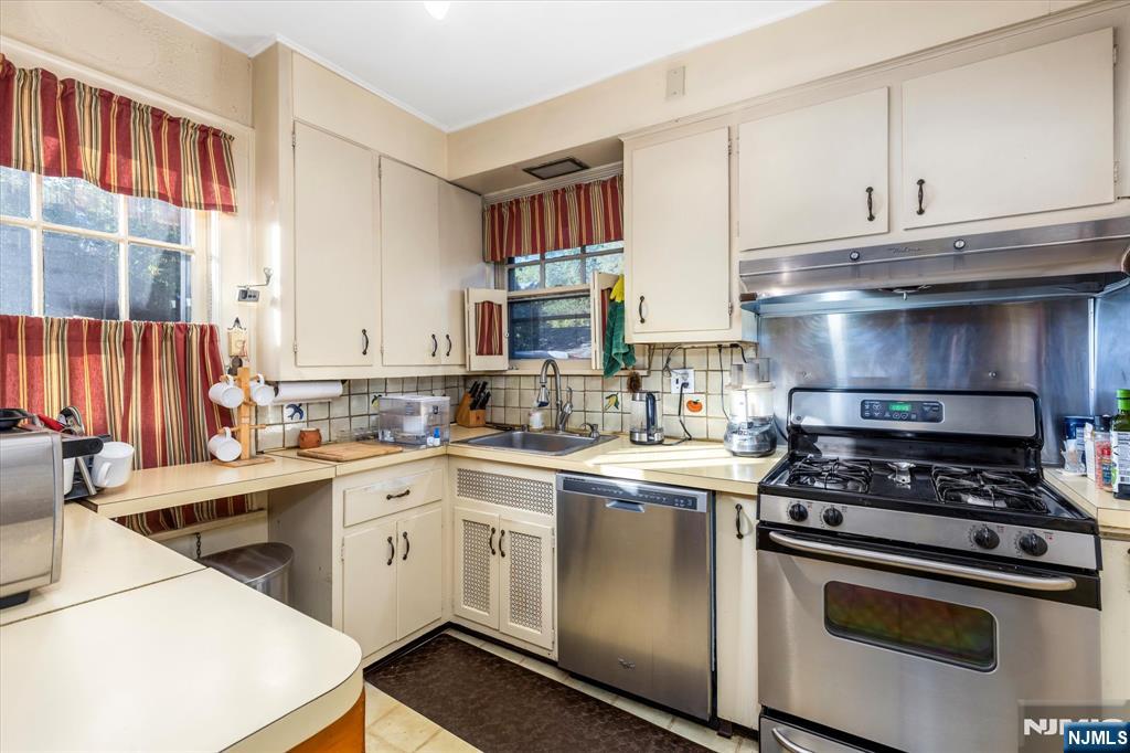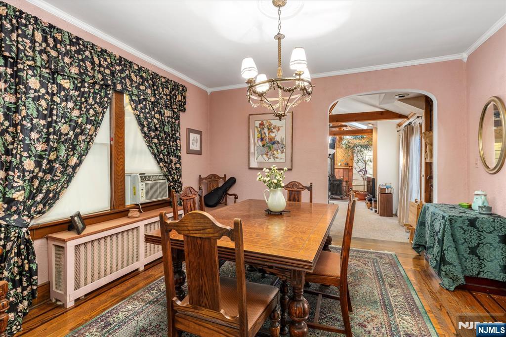 Charming half brick Tudor Colonial in choice location! Featuring a large living room with Chestnut trim on the windows ,huge brick fireplace ,beamed ceiling,library alcove and possibility of a small office, large formal dining room, dramatic family room,w/Franklin woodburning stove ,vaulted ceiling and sliding glass door to a small deck . There is a full bath with a stall shower adjacent to the family room. There are arched doorways throughout. The kitchen has a cozy breakfast nook, stainless steel appliances and a Spanish tile backsplash. There is a screened -in porch off the living room. The second floor has three large bedrooms and a hall bath. There is a very large room on the third floor that is a potential bedroom with access through a second floor hall staircase. The basement is large with several rooms. There is a two car garage ,a large backyard all a short distance to NYC bus transportaion,schools,stores,parks and houses of worship. The house has gas,hot water heat, newer roof(2020),new chimney liner,new driveway and exterior was painted in 2023.