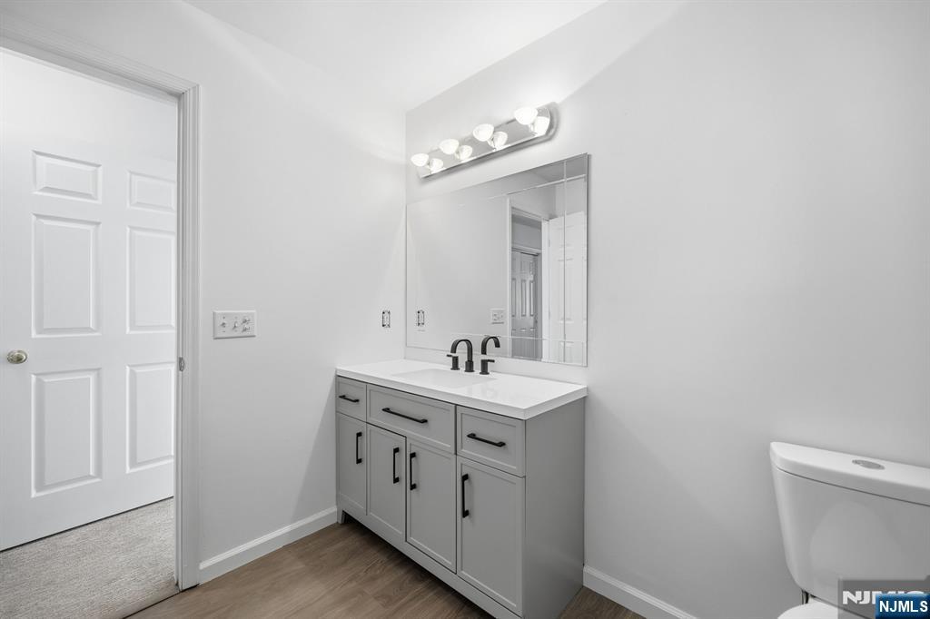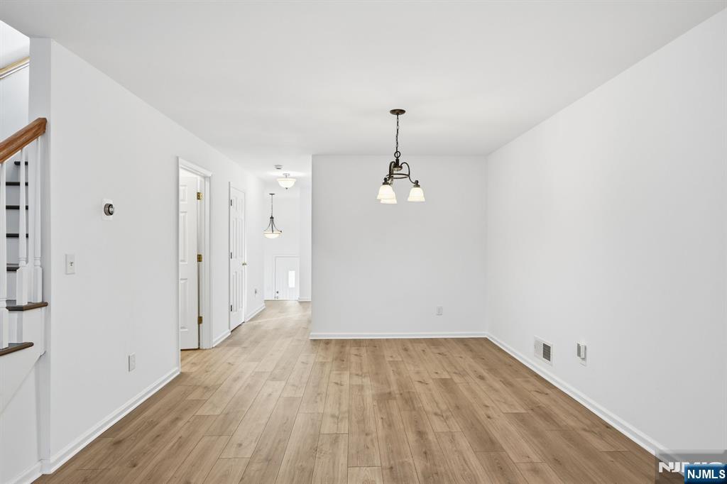 Beautifully refreshed, light and bright interior unit at desirable Mountain Ridge Townhomes in Bloomingdale, NJ! Fully repainted in White Dove and ready for your design inspo! First floor with new white oak wide plank Aquaguard Performance floors. Kitchen with new stainless appliances, granite counters, and separate dining area. Dining room to sunken living room with fireplace and slider to deck overlooking multi-tiered gardens. Updated half bath rounds out the first floor. Second floor with brand new lush berber carpet. Hallway laundry closet. Spacious primary bedroom with multiple closets and fully renovated primary bath with subway tiled stall shower. Bedroom 2 with oversized double closet with built-in organizers. Main hall bath with new vanity, and tub shower. Unfinished full basement with utilities - ready for your ideas - and access to oversized attached garage with ample storage and plenty of room for a car + motorcycle!
