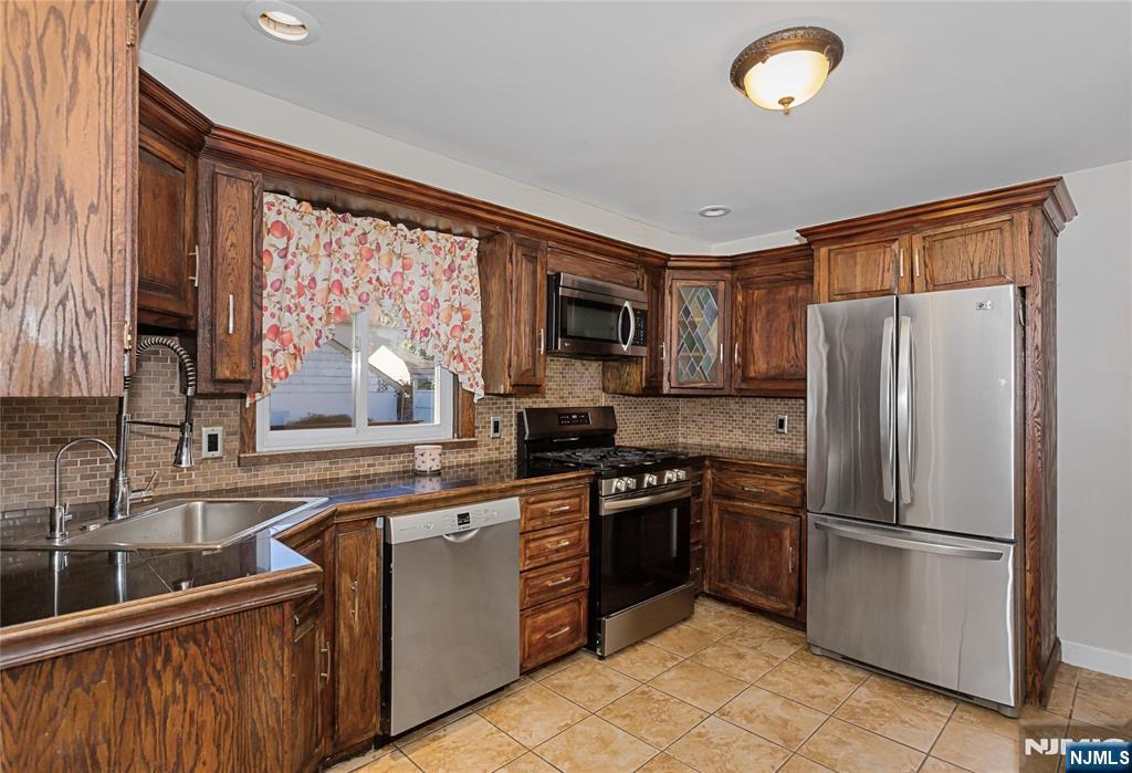 Discover this beautifully maintained home in a quiet yet convenient Paterson neighborhood, close to schools, shopping, and major highways (Rt 20, 46, 80, GSP)., and enjoy its spacious living room with a cozy fireplace, formal dining room, and an updated eat-in kitchen with newer stainless-steel appliances. The inviting family room opens to a large wooden deck perfect for entertaining or relaxing, and can easily serve as a first-floor bedroom with a full modern tiled bath nearby. Upstairs offers three generously sized bedrooms and another stylish full tiled bath. Additional benefits include central air, and hot-water baseboard gas heating, whole house water treatment/filtration system, a full finished basement, and attached garage with lots of storage, newer roof and much more!. A must-see home offering comfort, flexibility, and convenience!
