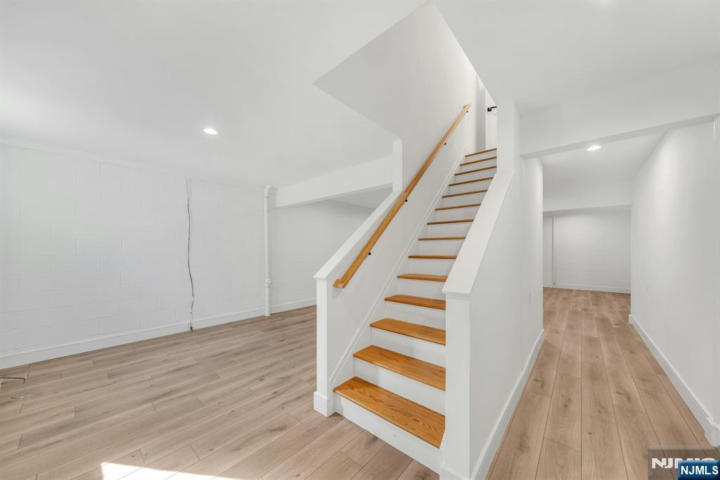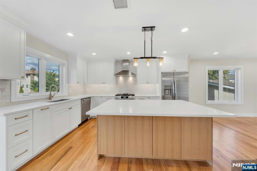Brand new East-facing 4-bedroom, 3 full bath townhouse/duplex style condo with NO Maintenance fees! This quality-built home measures approx 2,400 sq ft (plus an additional 1,000 sq ft on ground level). Living room, dining room, den and separate family room combined with an open concept kitchen with custom cabinets, quartz tops with tiled backsplash, stainless steel appliances, which include stove, built-in microwave, dishwasher, and refrigerator with ice maker/water dispenser. The family room has an electric fireplace and sliders to 10' x 15' composite deck overlooking a deep yard. 2nd floor features 4 bedrooms, laundry closet with washer & dryer & 2 full baths. Master bedroom with 2 walk-in closets and private bath with double sink, shower stall & soaking tub! 2 gas forced air heating & air conditioning systems, gas tankless water heater, security camera system, hardwood floors on 1st & 2nd floor, 2nd floor pre-wired for house router. Ground level has access to the garage and walkout. 150 amp electric panel. Built with a 1-car garage with a door opener, the driveway can accommodate a few cars. Lovely landscaped property. Located in a flood zone, all finished areas are above the flood elevation line, and flood insurance is quoted at $1255 per year! 2 blocks to NJ Transit bus stop #160 to NYC Bus Terminal in less than 30 minutes on average! Includes a 10-year new home warranty!