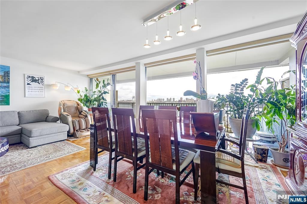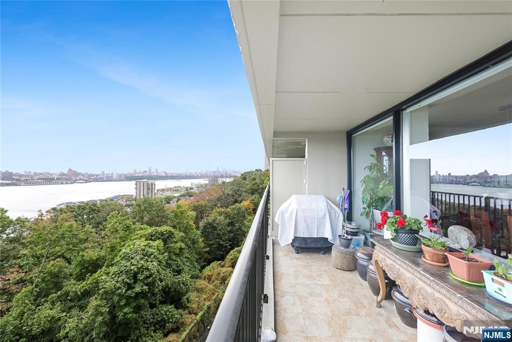 Welcome to this extra-spacious, townhouse-style 3-bedroom, 2-bath down-split duplex offering breathtaking Hudson River views  from the George Washington Bridge to the Manhattan skyline. Enjoy relaxed lifestyle with stunning views constantly changing characters. Livingroom, kitchen and dining area overlooking the wide range of Hudson River. King suite bedroom with renovated full bath and huge walk-in closet, two good sized bedrooms and well renovated bathroom.