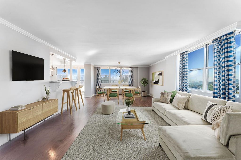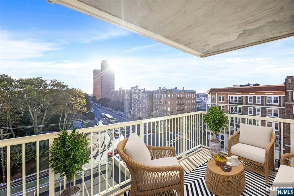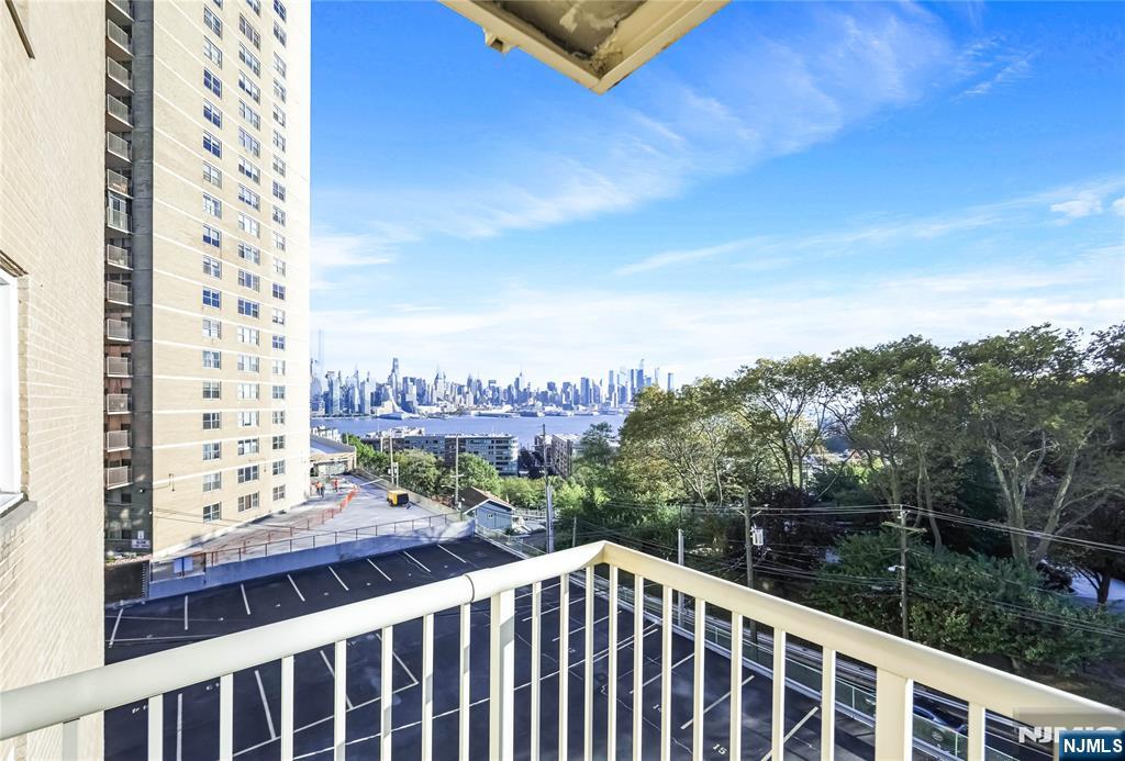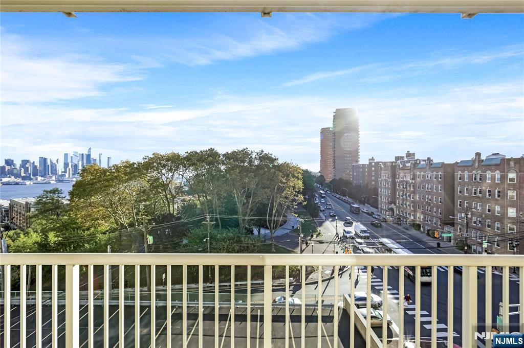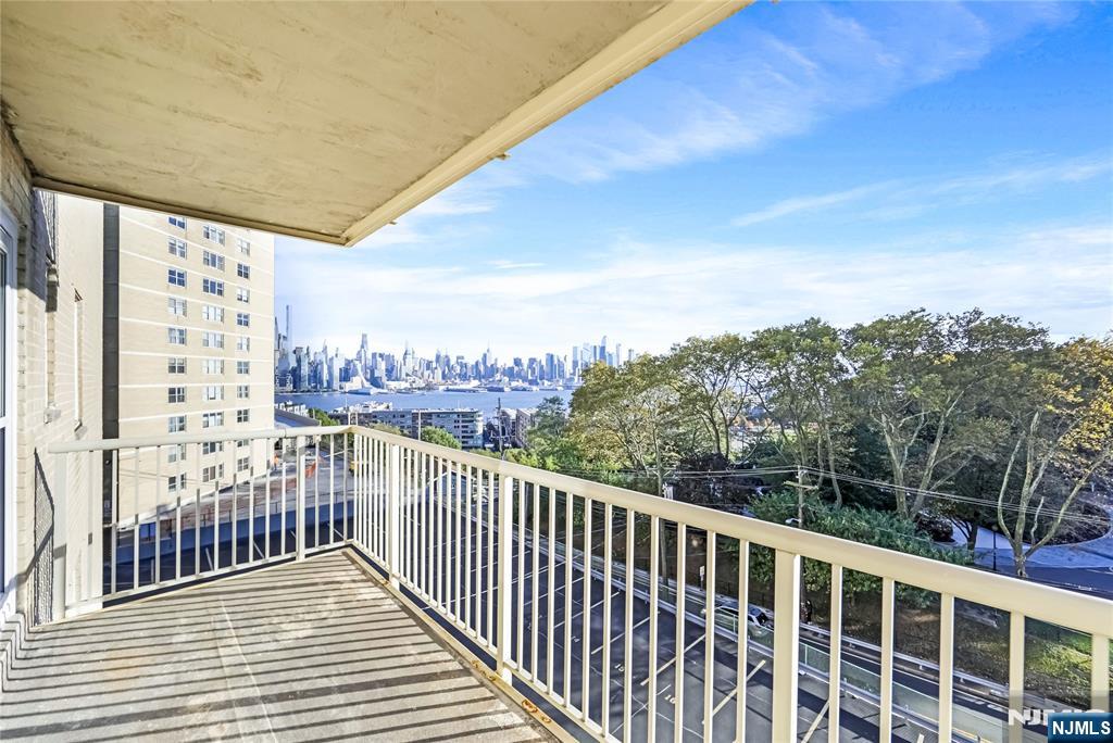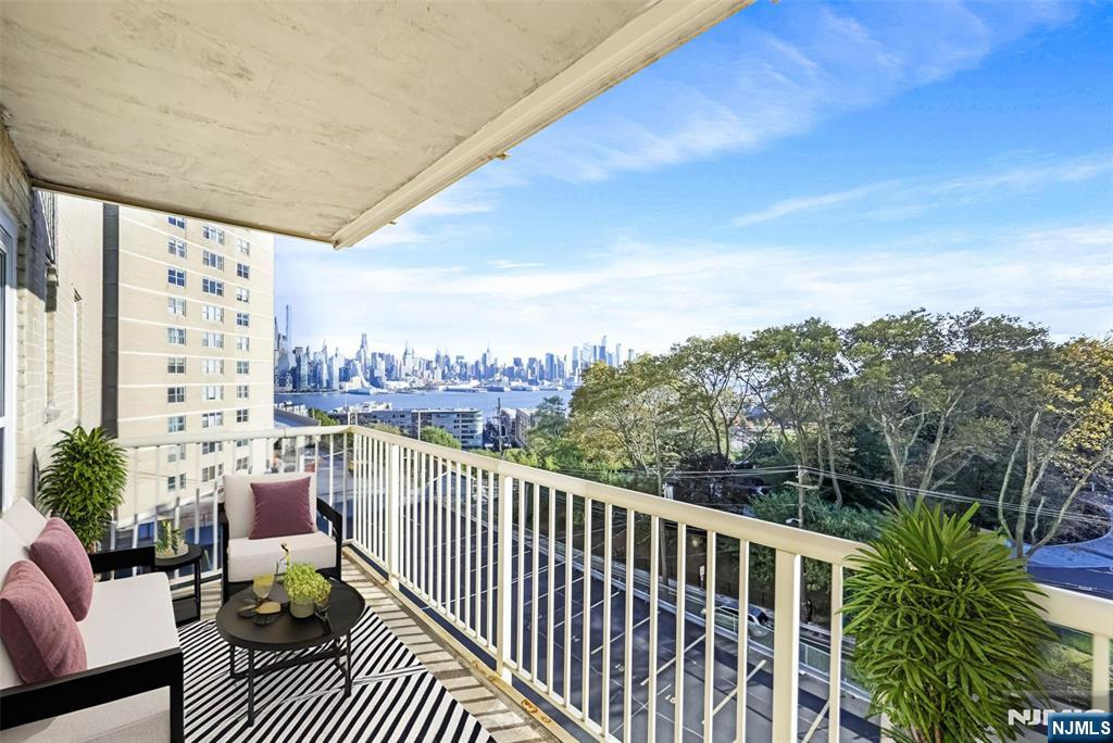 Experience modern living in this beautifully renovated 400 sq ft studio (484 sq ft including private balcony), thoughtfully designed to maximize every inch. Fully updated from walls & studs to new kitchen and bathroom, updated electrical and plumbing, new appliances, lighting, moldings, and refinished floors throughout. Step outside to your private balcony and enjoy breathtaking views of New York City, the Hudson River, and the peaceful park below. Located in one of the most sought-after areas for commuters, with direct bus service to Manhattan at your doorstep and just moments from major transit, a variety of restaurants, cafés, and shops. This is city living at its bestâ€â€stylish, efficient, and perfectly connected.