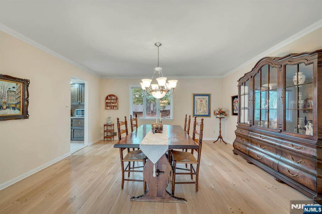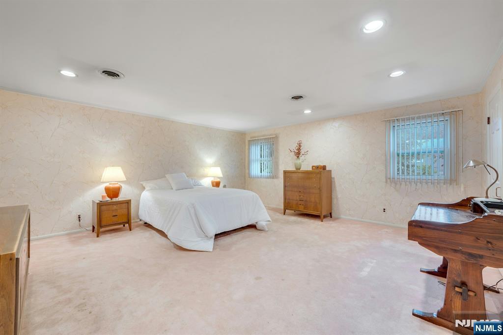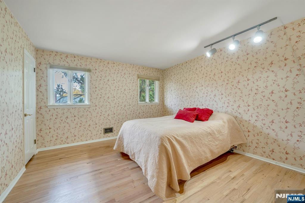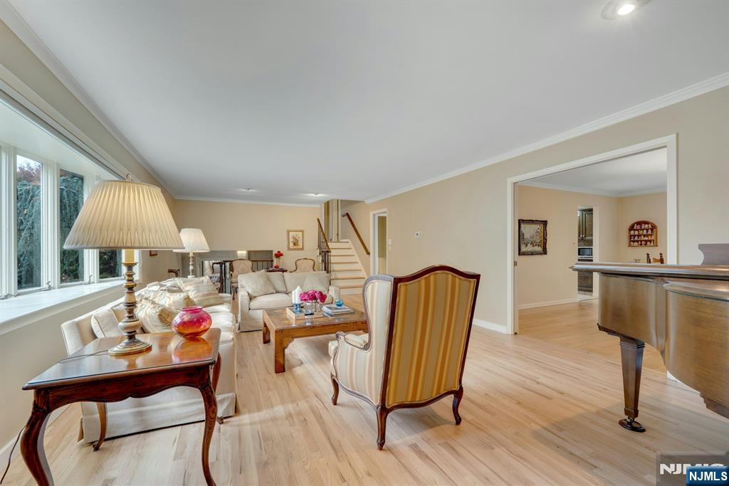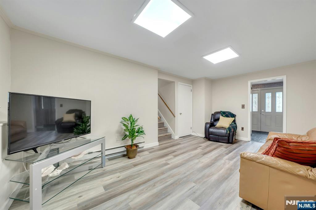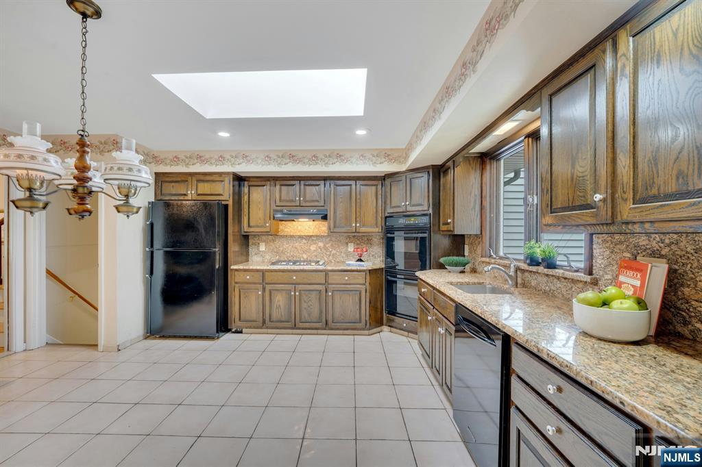 Don't miss this hidden gem nestled on a serene cul-de-sac near NYC bus and Paramus H.S and under 2 miles to Bergen County's beloved Van Saun Park. This thoughtfully expanded split level home offers spacious rooms throughout, beautifully refinished hardwood floors and 4 generous bedrooms on one level, including a large primary suite with 2 walk-in closets and private ensuite bathroom. Gracious entry foyer leads directly to attached garage, a comfortable den with new vinyl plank flooring, and a convenient powder room. The Main floor includes a bright expansive living room (29x15'5") that flows seamlessly into the elegant banquet size dining room featuring gorgeous wide plank pegged wood flooring. Culinary endeavors await in the granite eat-in kitchen equipped with double-oven, abundant cabinetry, built-in workstation and skylight! Entertain or relax in the private yard that includes a large covered patio accessible from the den, with nearby powder room for guests. The large basement offers great potential to customize for additional living space. Enjoy low taxes and a top-rated school system in this sought-after community with great access to world class shopping, dining, parks and other recreational activities.