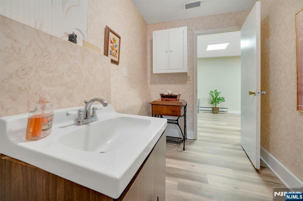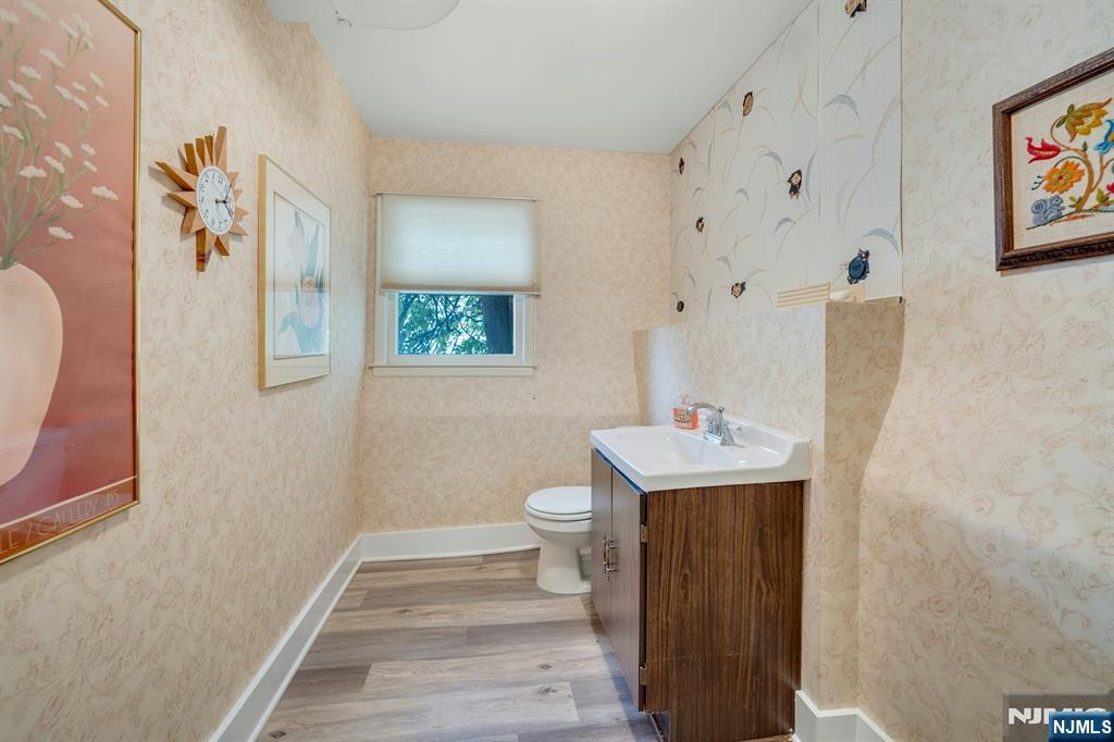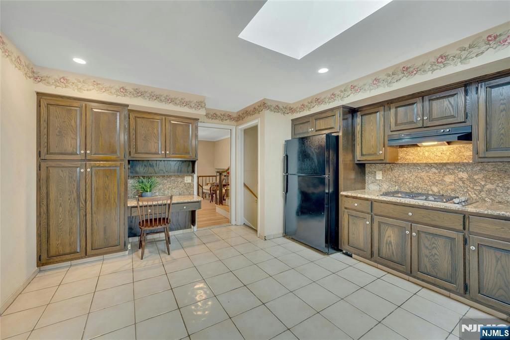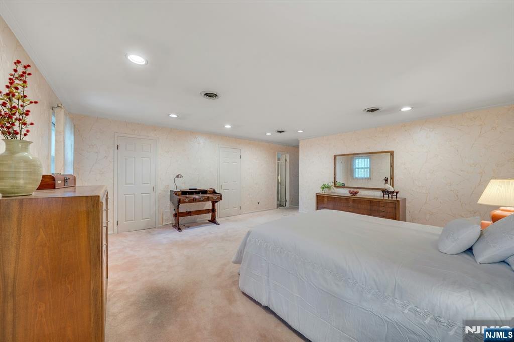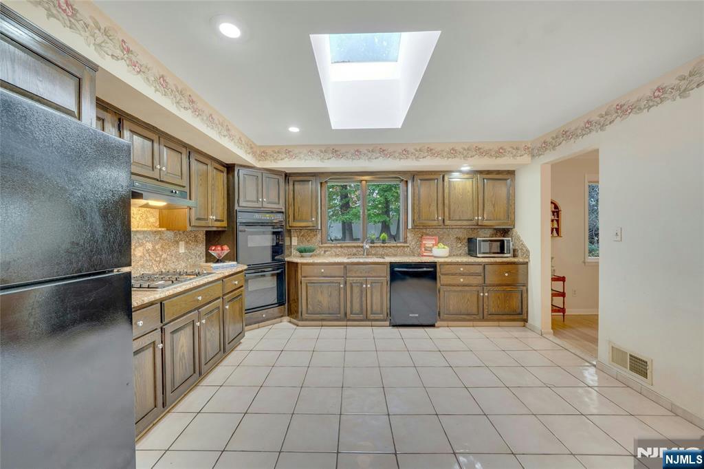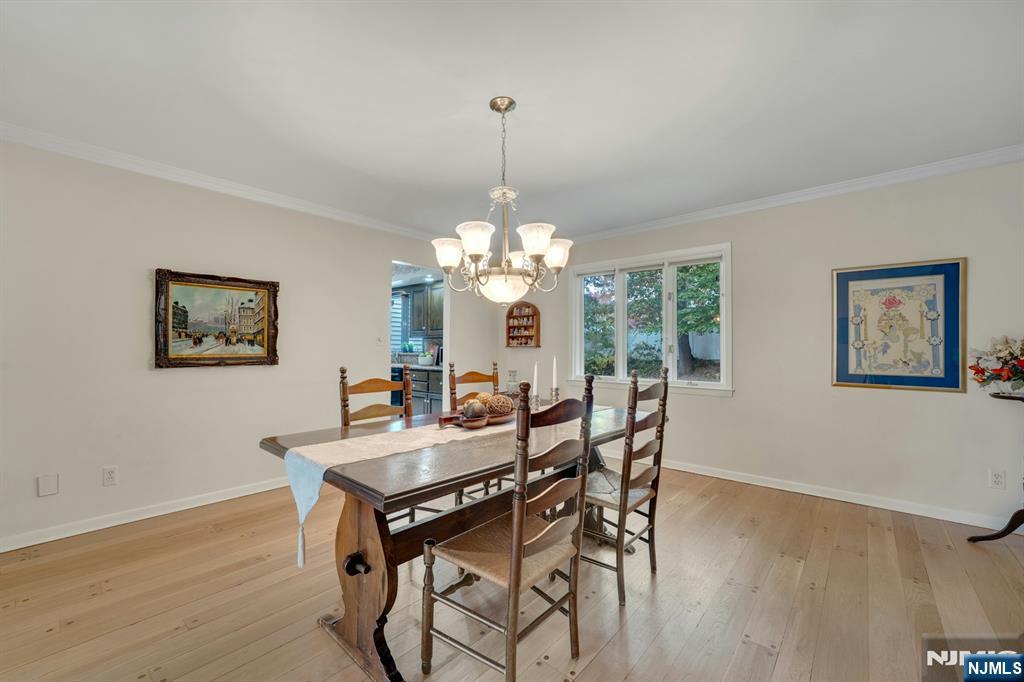 Don't miss this hidden gem nestled on a serene cul-de-sac near NYC bus and Paramus H.S and under 2 miles to Bergen County's beloved Van Saun Park. This thoughtfully expanded split level home offers spacious rooms throughout, beautifully refinished hardwood floors and 4 generous bedrooms on one level, including a large primary suite with 2 walk-in closets and private ensuite bathroom. Gracious entry foyer leads directly to attached garage, a comfortable den with new vinyl plank flooring, and a convenient powder room. The Main floor includes a bright expansive living room (29x15'5") that flows seamlessly into the elegant banquet size dining room featuring gorgeous wide plank pegged wood flooring. Culinary endeavors await in the granite eat-in kitchen equipped with double-oven, abundant cabinetry, built-in workstation and skylight! Entertain or relax in the private yard that includes a large covered patio accessible from the den, with nearby powder room for guests. The large basement offers great potential to customize for additional living space. Enjoy low taxes and a top-rated school system in this sought-after community with great access to world class shopping, dining, parks and other recreational activities.