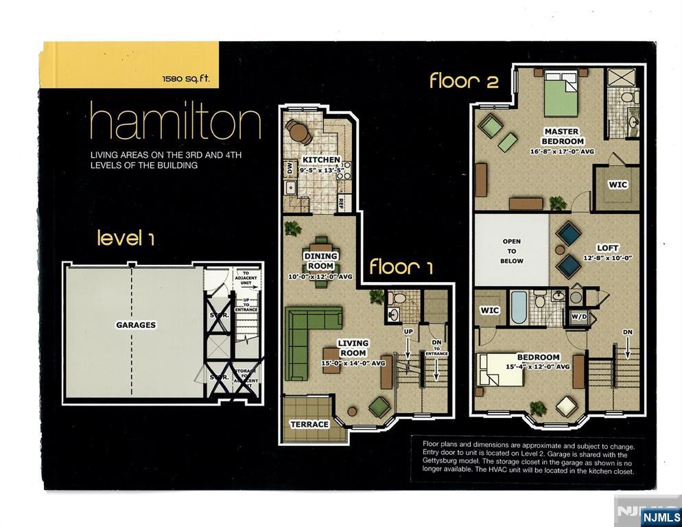 Young spacious Hamilton condo on top floors with 1580 SF. 2 large bedroom suites with ensuite baths. Loft between the 2 bedrooms can be used as a den. Dishwasher, Washer, Dryer, Over-the=range Microwave & brand new Refrigerator supplied, Available to occupy on 12/01/25. LR: 15X14, DR: 10X12, EIK: 9'5X13'5, BRS: 15'4X12 & 16'8X17', Loft/Study: 12'8X10. Central Air & forced hot air heat. Hardwood floors in living & dining room. 2-story high ceiling in Dining Rm. 1-car garage plus 1 covered parking space outside the garage. Tenant pays all utilities including water & sewer. Good credit required. Flood insurance covered by HOA fees. Security Deposit:1.5 months. $250 move-in fee, $200 moving deposit & renter's insurance required by condo association. Balconies in entire community cannot be opened or used. Access to gym/clubhouse/pool & shuttle to path require annual membership enrollments every November with fees. Walk to Path Station in 12 minutes. Close to Newark Light Rail, NJIT, Rutgers, NJPAC, Prudential Center & Red Bull Stadium. Convenient to Turnpike, Parkway, Rt. 280 & Rt. 21. No pets, no smoking in or near the building & no loud music. Application, tenant background check, good credit, and proof of ability to pay rent required.