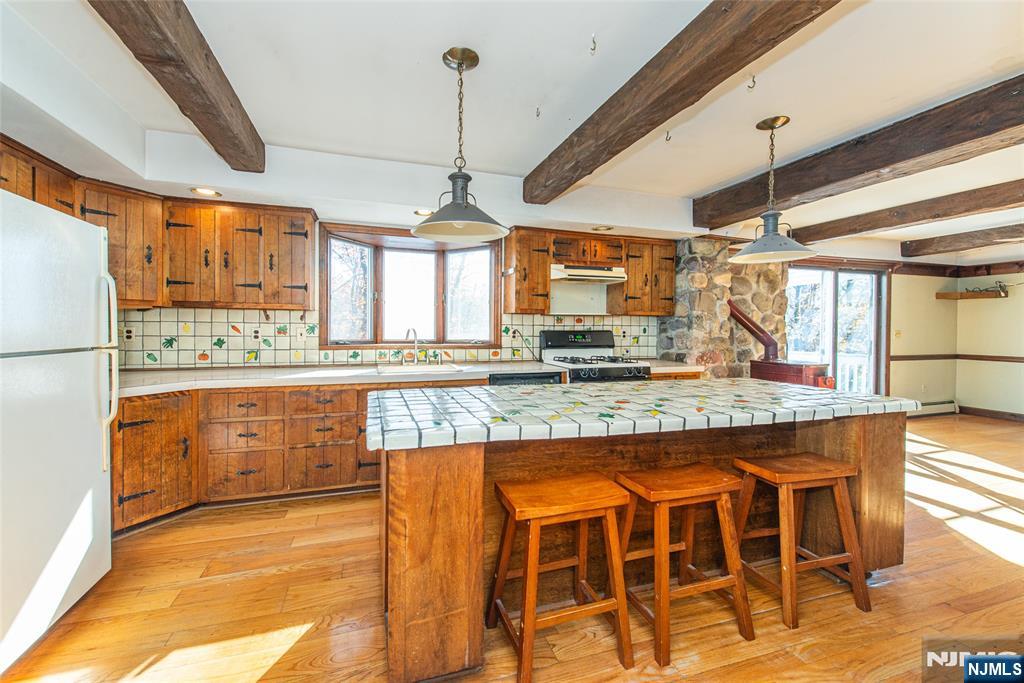 Welcome to this spacious and inviting Custom Colonial Cape located in desirable lower West Milford! This impressive 11-room home sits on 1.27 acres of private, wooded property offering both serenity and space. Featuring 3 full bathrooms and 1/2 bath, this home provides comfort and convenience for everyone. Enjoy a bright, oversize kitchen with a generous dining area, perfect for gatherings and everyday living. The expansive great room is filled with natural light, creating a warm and welcoming atmosphere. The first-floor primary suite includes a private bath for added ease. The ground-level basement with outside access is perfect for a guest suite, with its own kitchenette area, bonus room that can be used as a bedroom, living area, and full bath. Large deck provide the perfect setting for outdoor entertaining or quiet relaxation. In addition it offers, laundry room, utility room, natural gas, new Anderson front windows, wood-burning fireplace, hardwood floors, all you could want in this custom home. Complete with a two-car garage and located just minutes from the town center and Route 23, this home truly has it all space, privacy, and convenience! Co