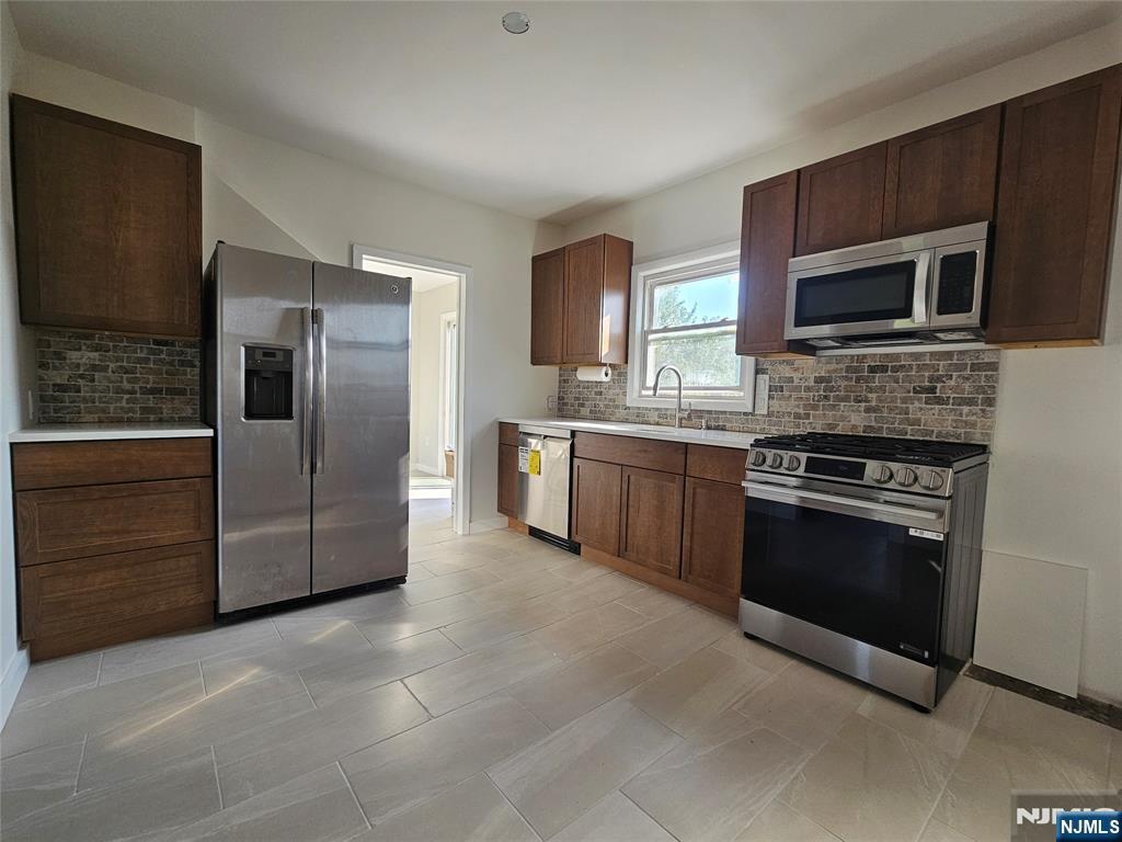 Brand new renovated & remodeled 2 bedroom apartment located in one of Lyndhurst's most desirable sections. This bright, airy and spacious 3rd floor unit features new hardwood and large tile flooring throughout, brand new kitchen with quartz counter tops, walnut colored Shaker cabinets, matching stainless steel appliances and dishwasher, king sized living room/dining room, ultra modern bathroom, spacious bedroom with direct access to your very own washer/dryer area and an additional spacious bedroom with sliders leading out to your very own deck with an amazing elevated view. Heat, Hot water, 2 driveway parking spaces and shared yard access included by landlord. Conveniently located near NYC bus stop, rail station, restaturants, shopping, parks, schools and ideally situated less than 5 minutes to both RT 3 and RT 17 for easy highway access.