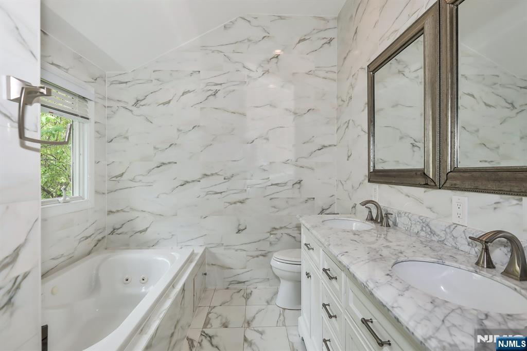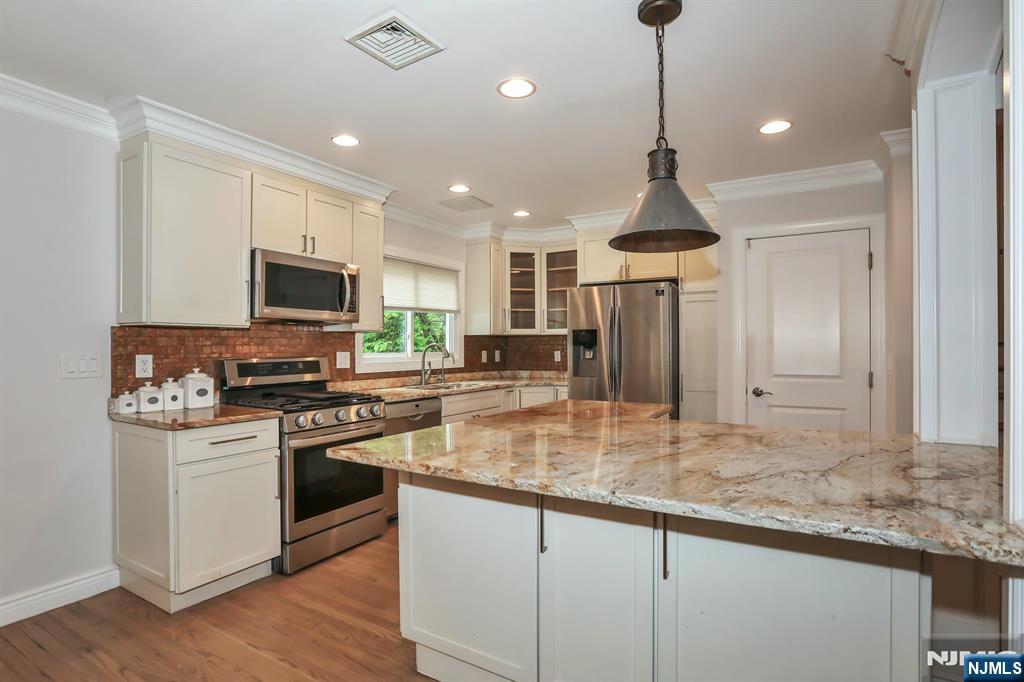 Gorgeous renovated four bedroom, 3.5 bath home on Tenafly's East Hill, minutes to school, houses of worship and NYC transportation. All bedrooms are generous and bright. The modern kitchen features a large granite island and a breakfast nook open to the family room with fireplace. Beautiful fenced in property with a patio and large backyard.