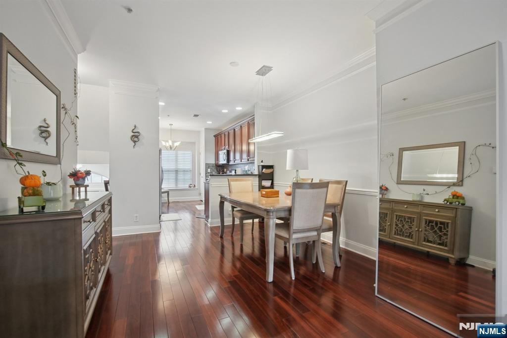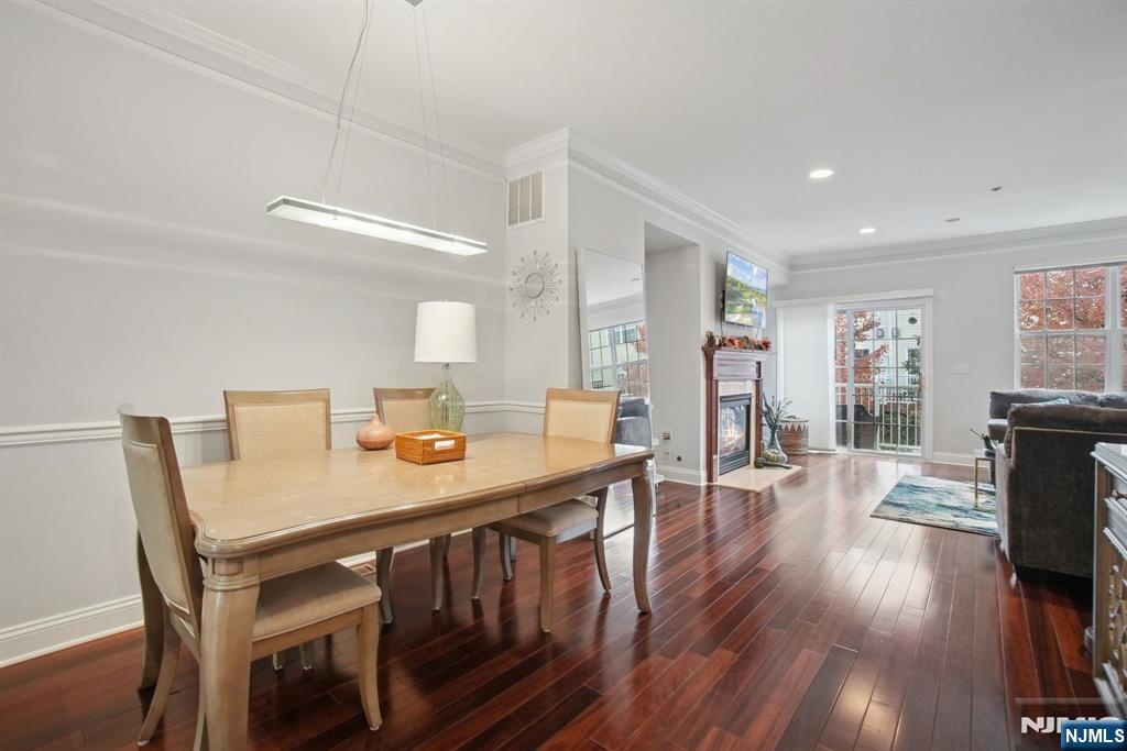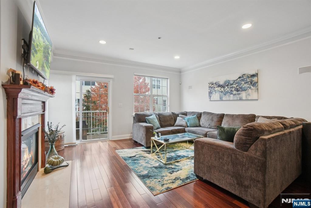 Pride of Ownership! Mint-condition 2BR/2.5BA Chelsea model triplex w/ den in desirable Riverside Court. Main level features an open floor plan, a gourmet kitchen w/ cherry cabinets, granite counters, SS appliances (new microwave & dishwasher), a powder room, a marble gas fireplace, modern lighting, & deck access from the LR. Upper level boasts 2 spacious BRs, each w/ full bath, incl. primary suite w/ dual vanity, soaking tub, & separate shower. Top floor laundry w/ washer/dryer. Moroccan cherry hardwood floors throughout the upper level. Ground floor family room/den w/ Berber carpet & sliding doors to backyard. Recent updates: new HVAC (Feb 2025), 2017 upgrades incl. HW floors, lighting, kitchen microwave and dishwasher, water heater, bath plumbing, marble vanity & full paint. The community offers a riverfront promenade, pool, landscaping, snow removal, & shuttle to Secaucus Junction. NJ transportation express bus to Port Authority.