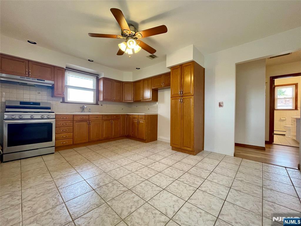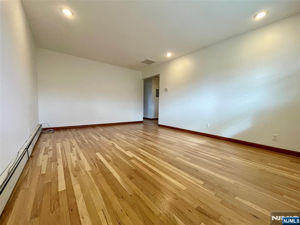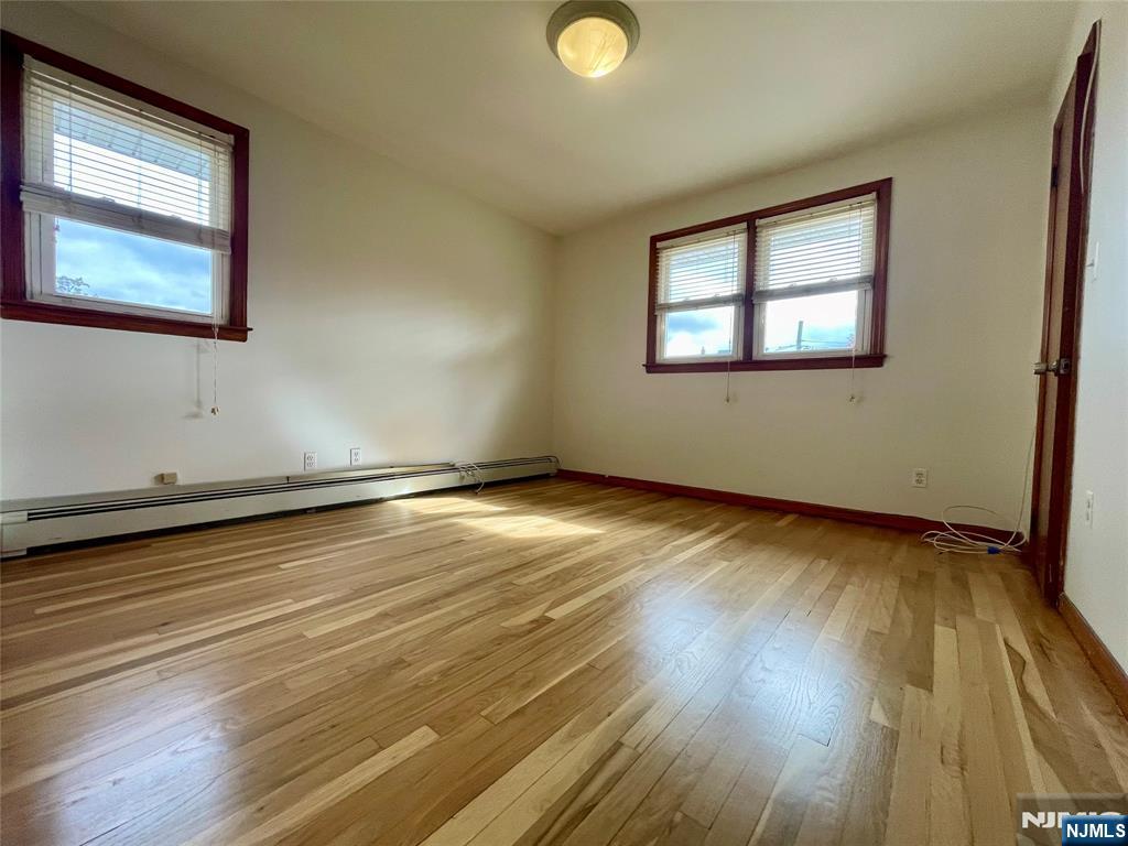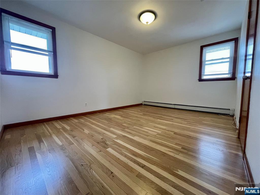 Beautiful and meticulous two bedroom, one full bath apartment with heat and hot water included! Second floor of a two family home features a spacious living room with recessed lighting, two good size bedrooms with closets and a large modern eat-in kitchen with a generous amount of cabinets, tile backsplash and ceiling fan. The full bathroom is light, bright and very clean! Highlights include: entire apt freshly painted, gorgeous and refinished hardwood floors that look brand new, central air and baseboard heat. No smoking of any kind, no pets of any breed. Tenant pays cooking gas and electric. One off street parking space in the driveway is optional for $100/month additional rent. Owner holds a NJ Real Estate License.